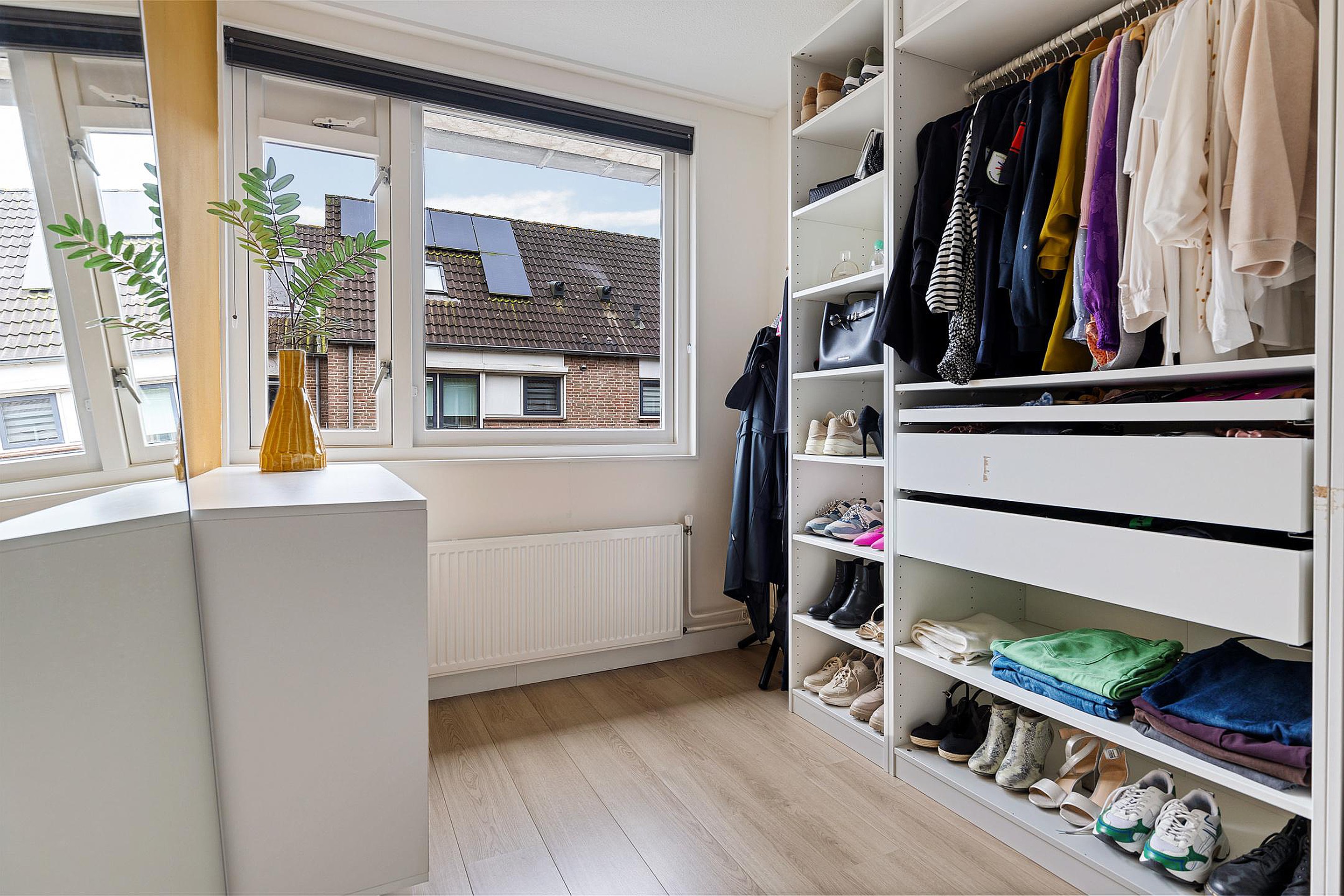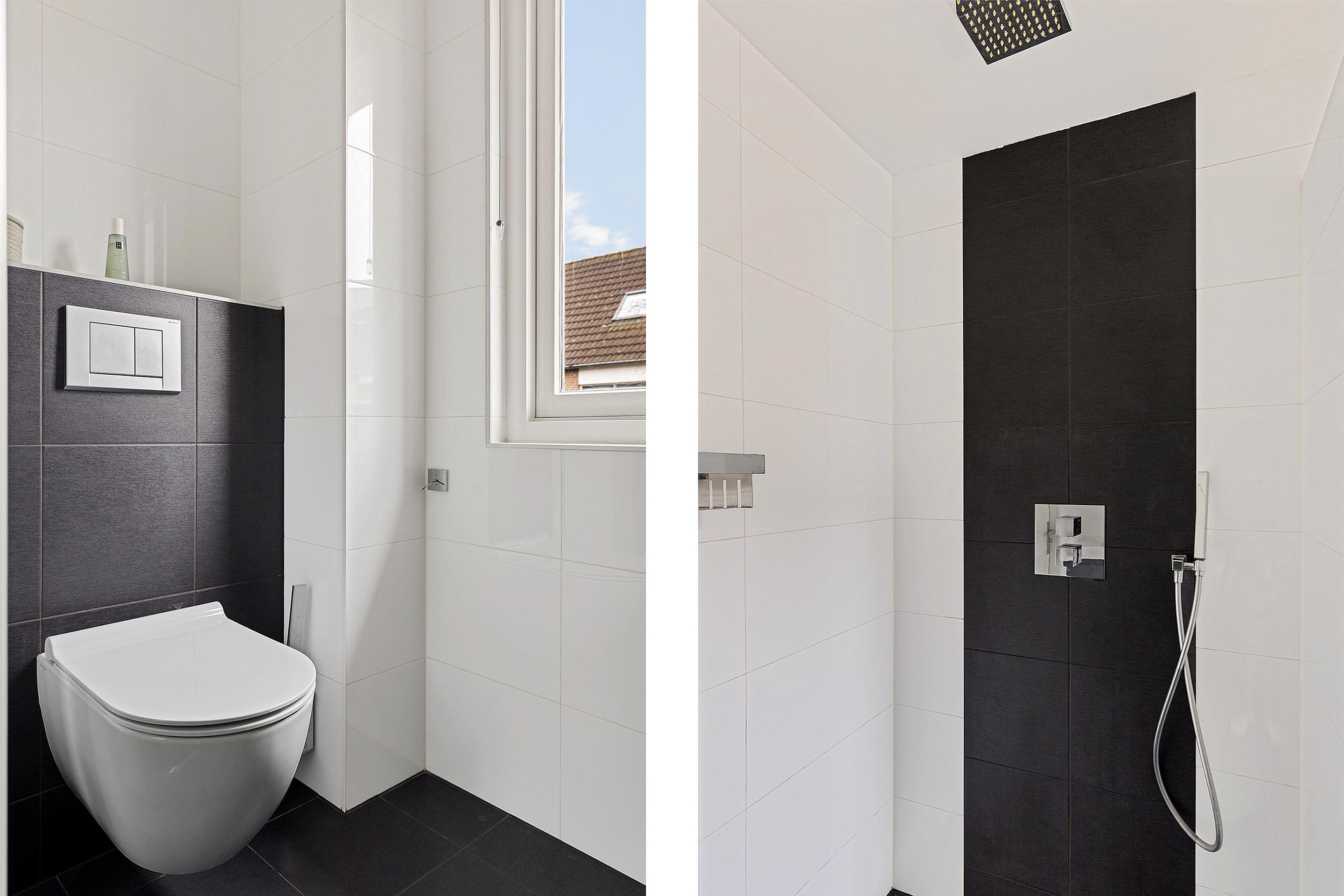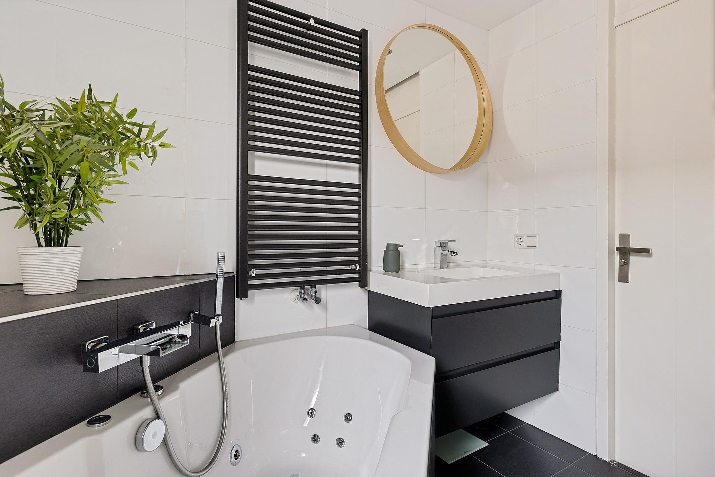 Op de eerste etage zijn drie slaapkamers te vinden. De grootste is aan de aan de achterzijde gelegen. De kleine kamer is momenteel in gebruik als inloopkast, maar kan ook prima als kinder- of studeerkamer dienst doen. De moderne badkamer ligt aan de voorzijde. Hier heb je je eigen spa, met een luxe jacuzzi, een ruime stortdouche voorzien van handdouche, een wastafel met meubel en een tweede toilet. Door het raam in de badkamer heb je niet alleen natuurlijk licht, maar ook goede ventilatie.