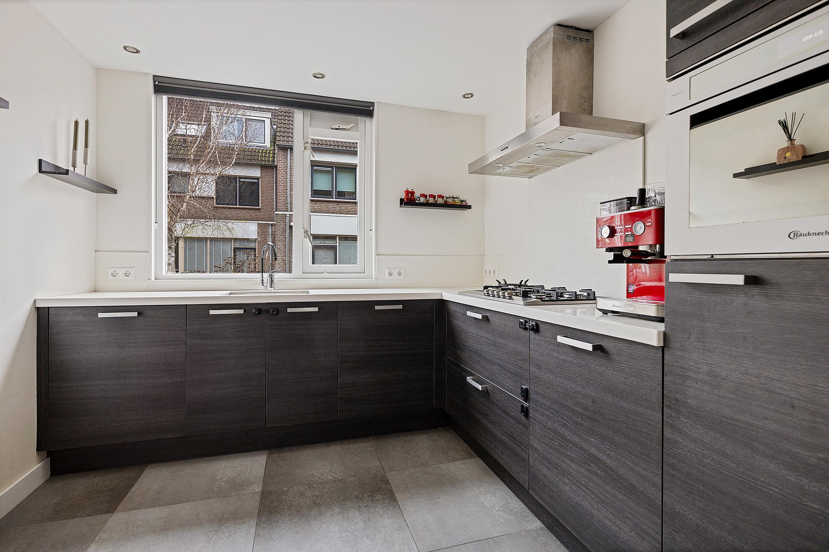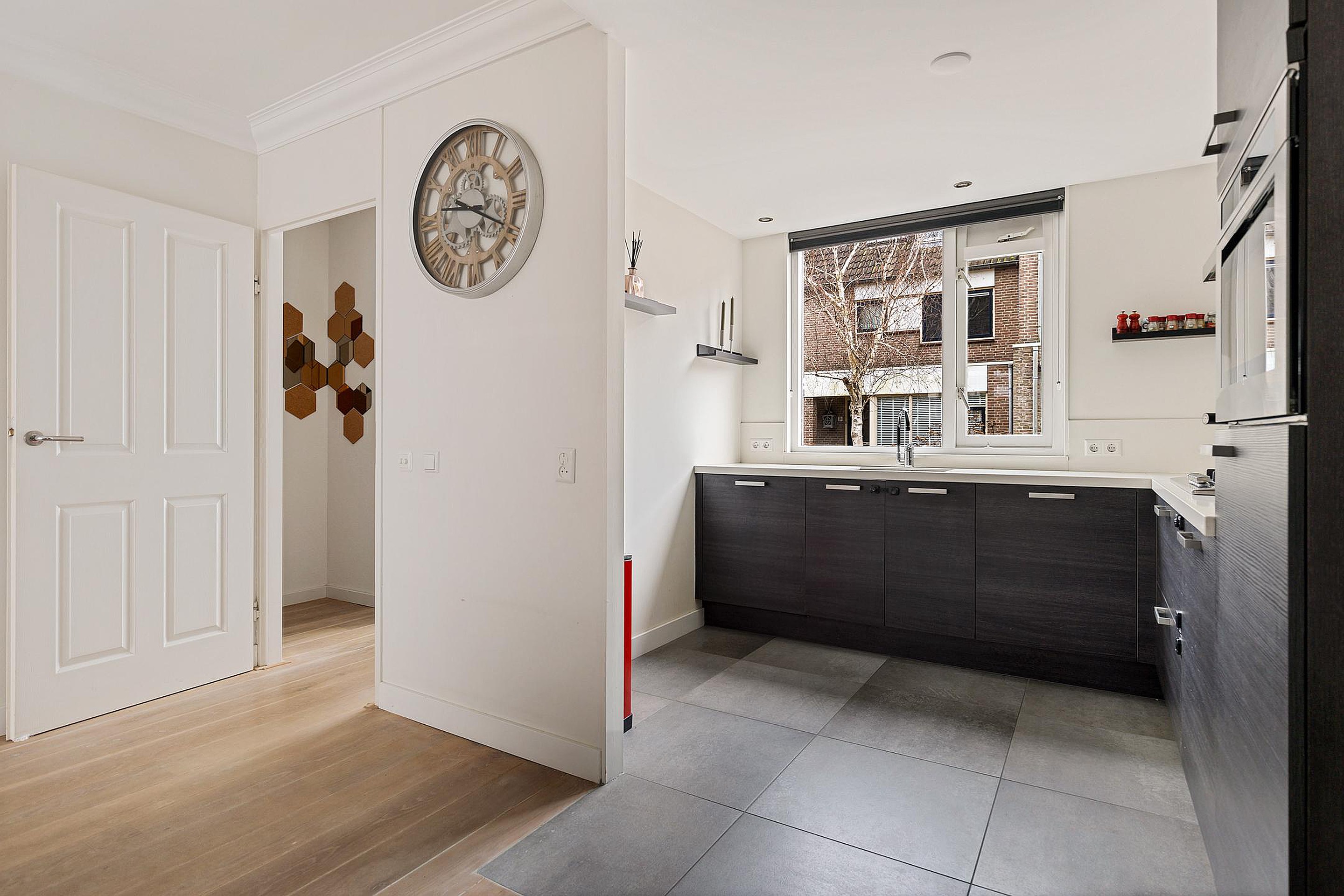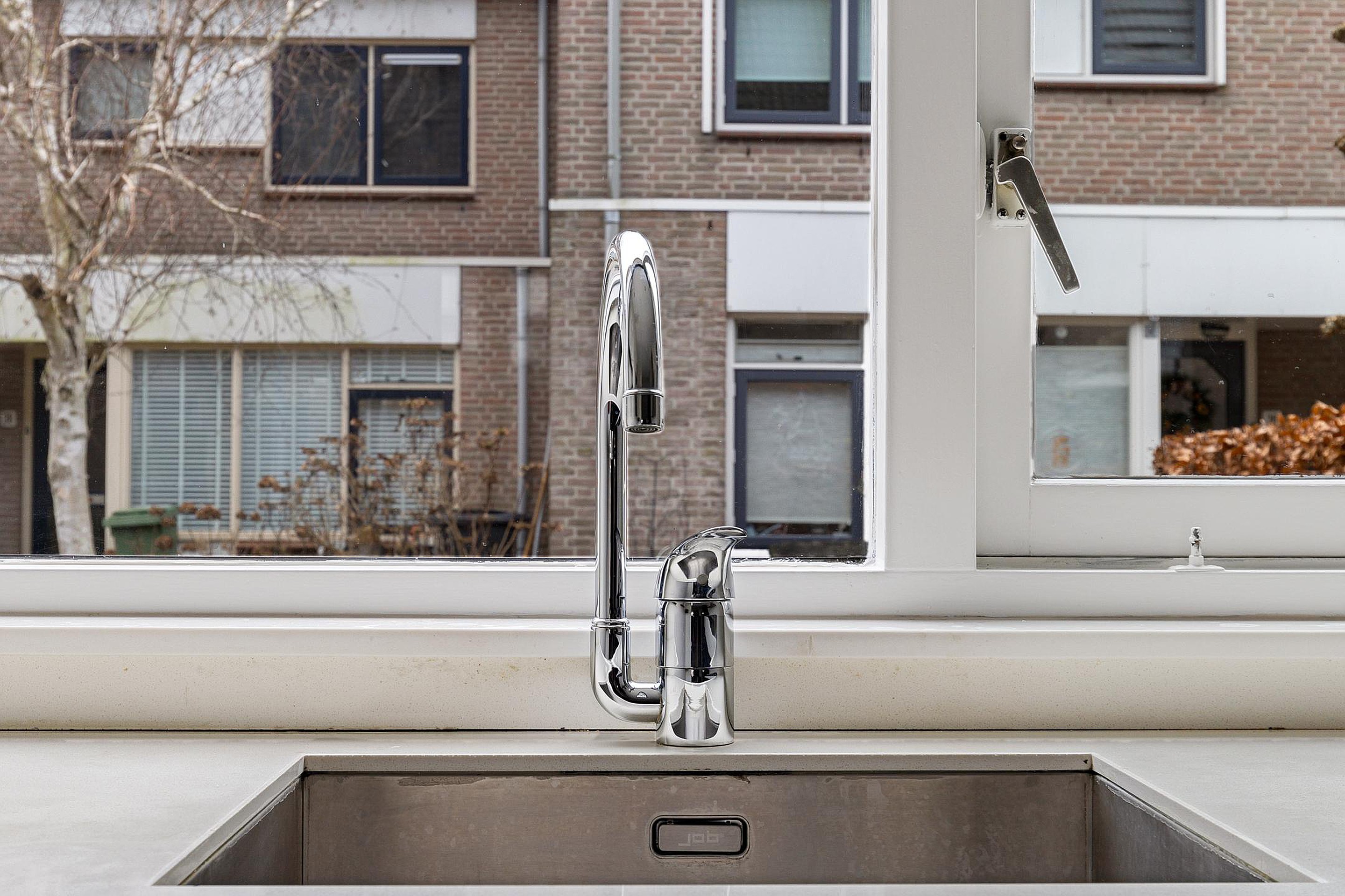 Aan de voorzijde ligt de moderne open keuken, met een plavuizen vloer voorzien van vloerverwarming. De keuken in L-opstelling heeft een composiet blad en is natuurlijk voorzien van moderne apparatuur, waaronder een 5-pits gasfornuis met wokbrander, vaatwasser, koelkast en combi-oven. Door het grote raam heb je altijd lekker daglicht op je werkblad en zicht op het wandelpad voor de deur.