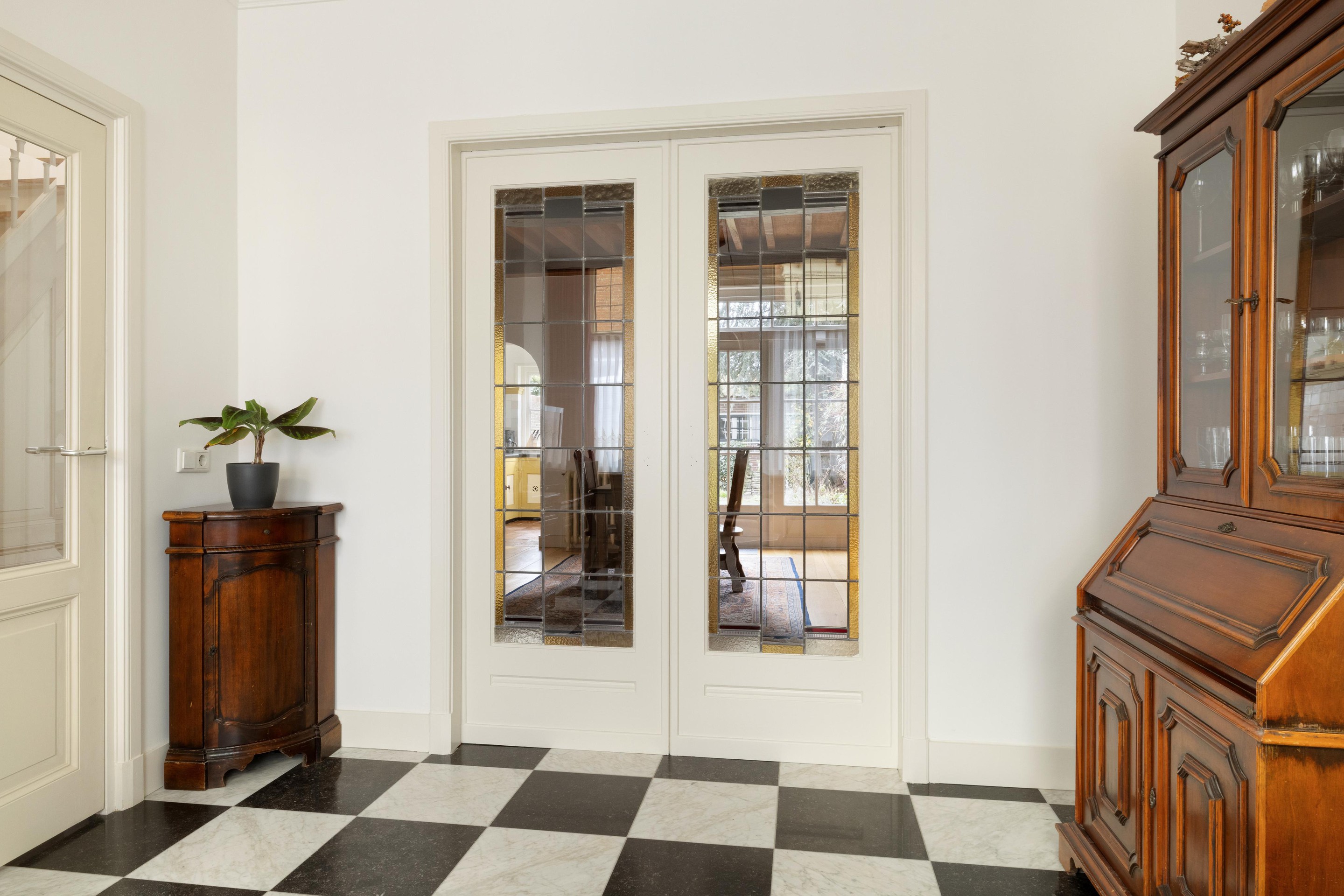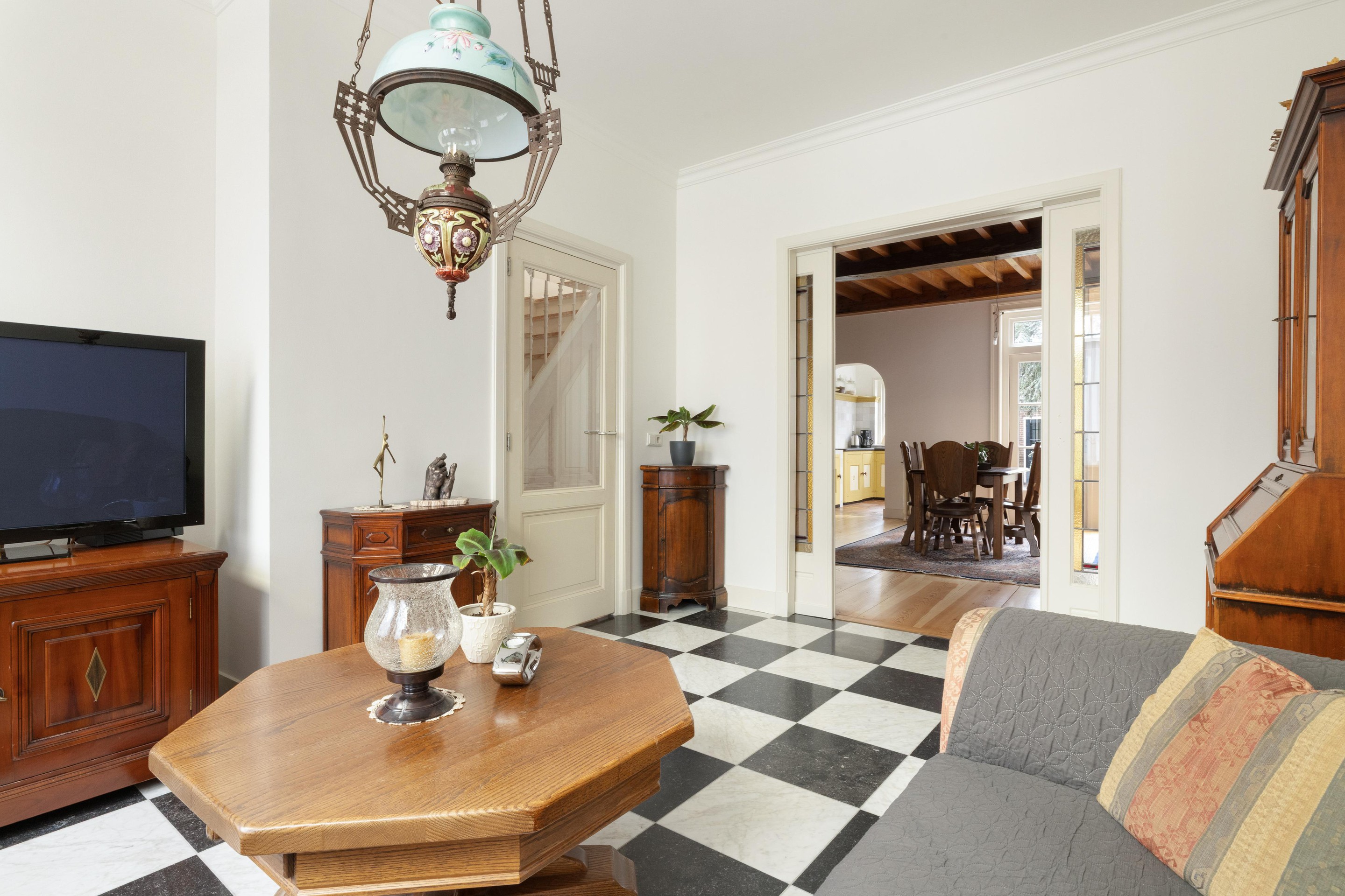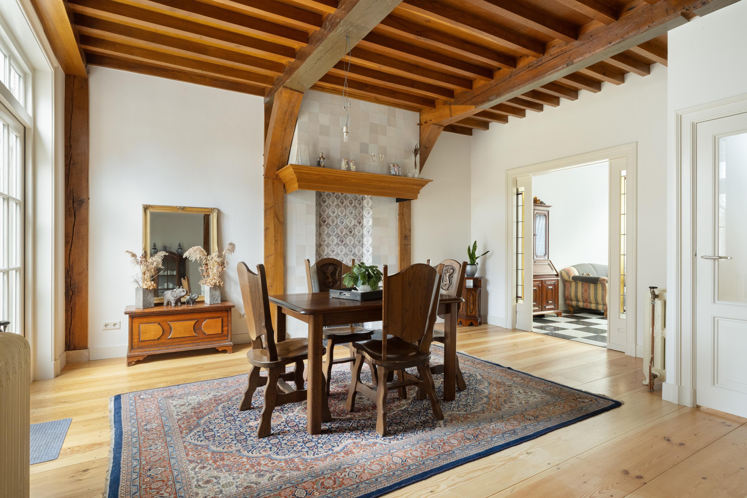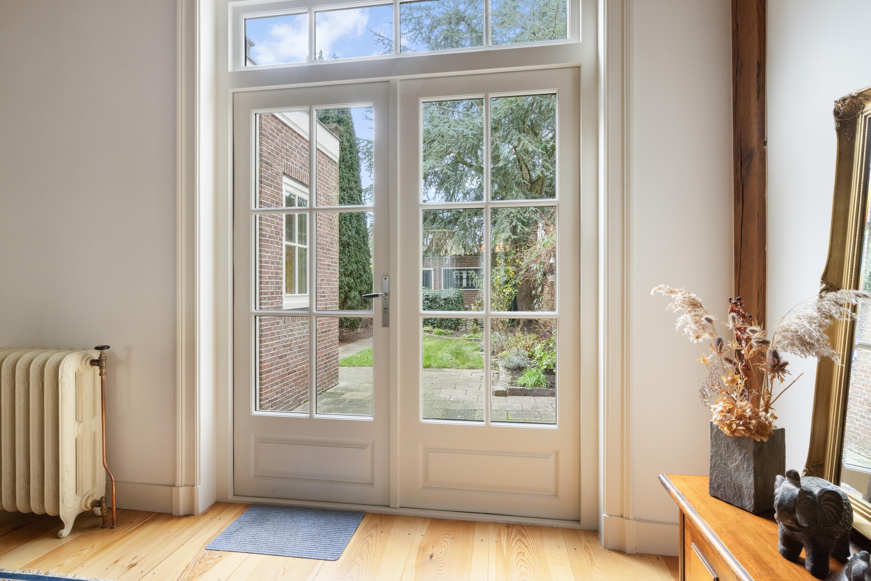 Via het entree/tochtportaal komt u in de hal met toegang tot het toilet en de verschillende leefruimtes. Aan de voorzijde bevindt zich de sfeervolle zitkamer, voorzien van vloerverwarming en fraaie en-suite deuren naar de woonkamer.