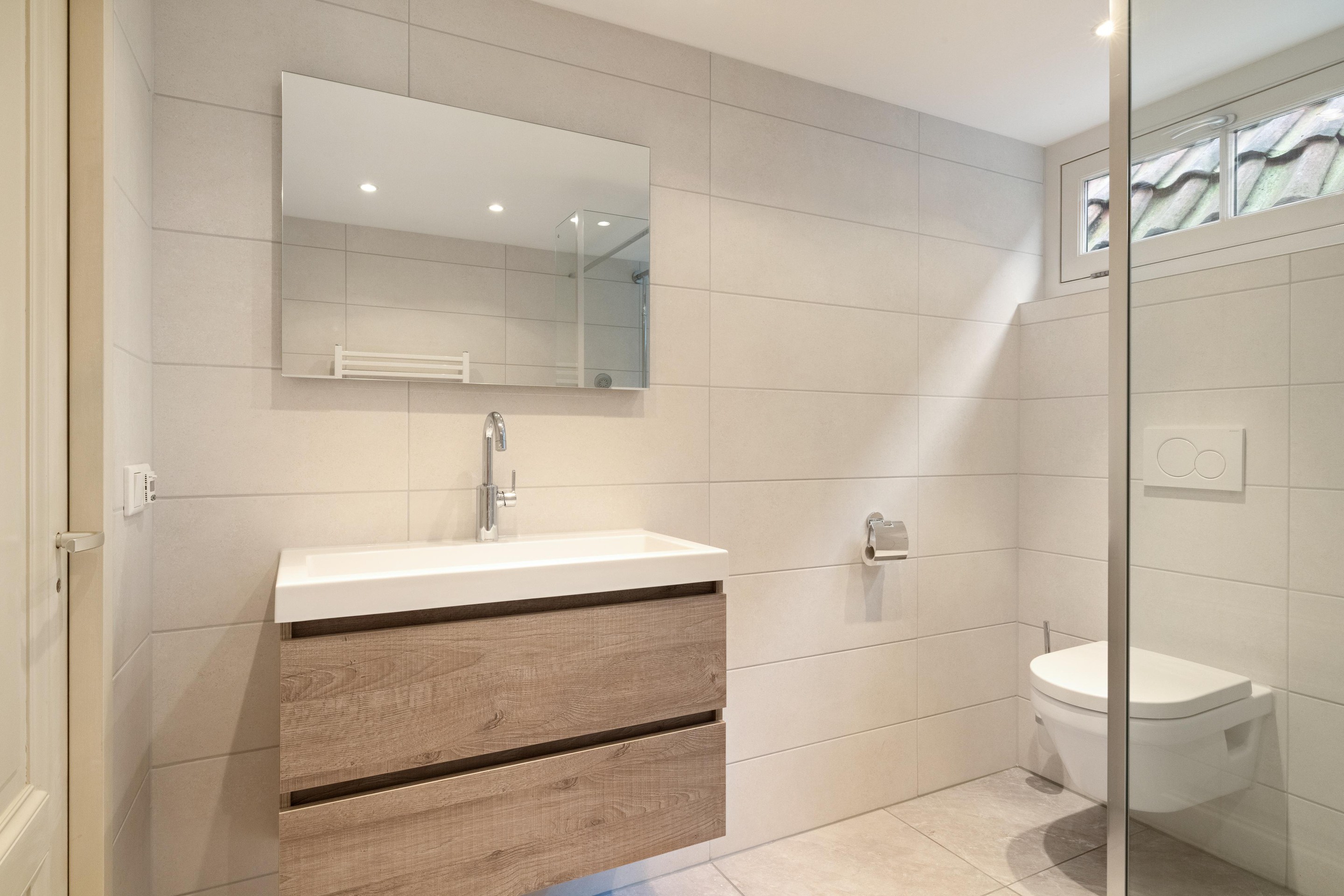 - Nieuwe, moderne badkamer;