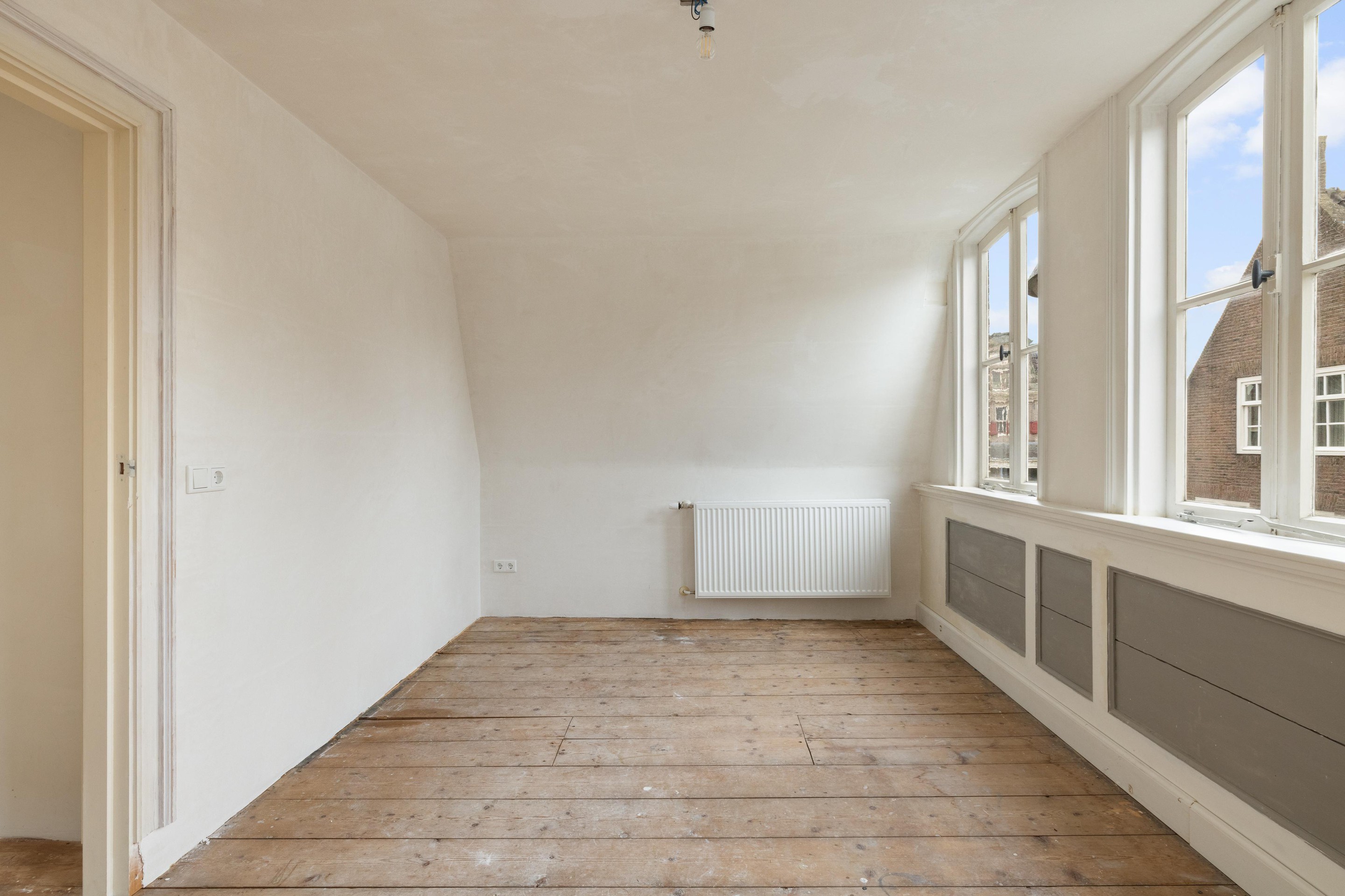 Aan de voorzijde ligt de tweede slaapkamer van ca. 15 m2. Indien gewenst is het mogelijk om één van de slaapkamers op te splitsen en zo een extra kamer te creëren.
