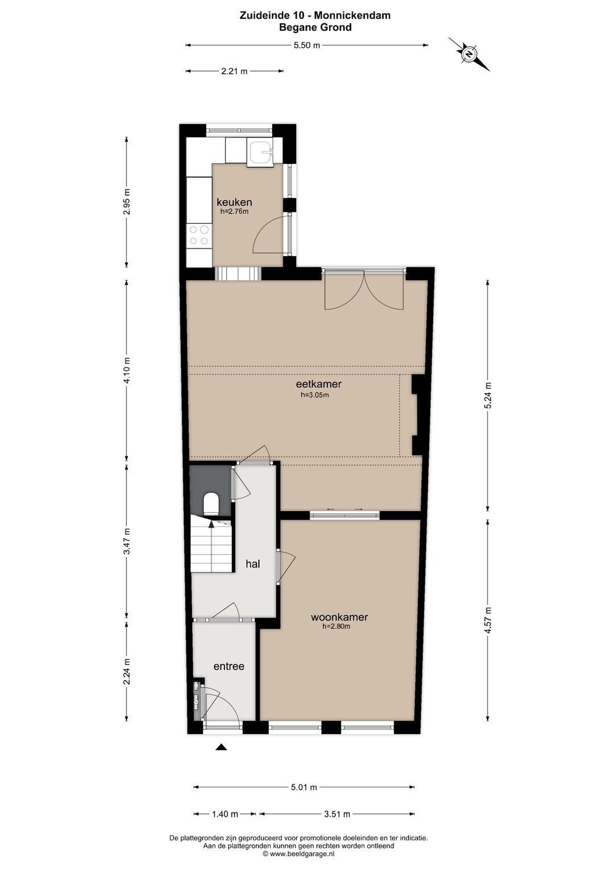 - Plafondhoogte woonkamer ca. 3,05 m;