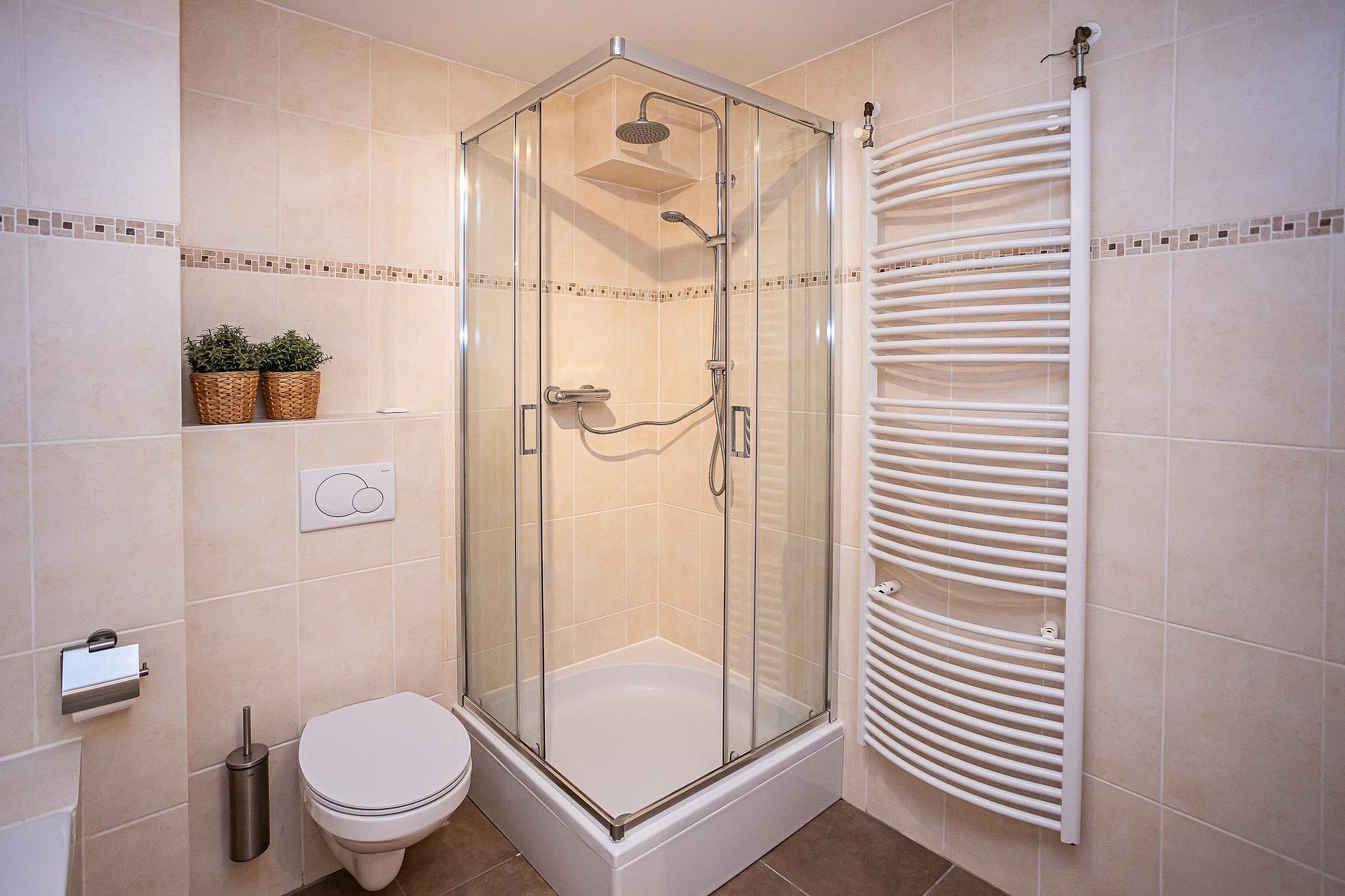 Overloop, 3 slaapkamer elk voorzien van een airco-unit, luxe badkamer met ligbad-/douchecombinatie, hoekdouchecabine, 2e toilet, vaste wastafel en designradiator.