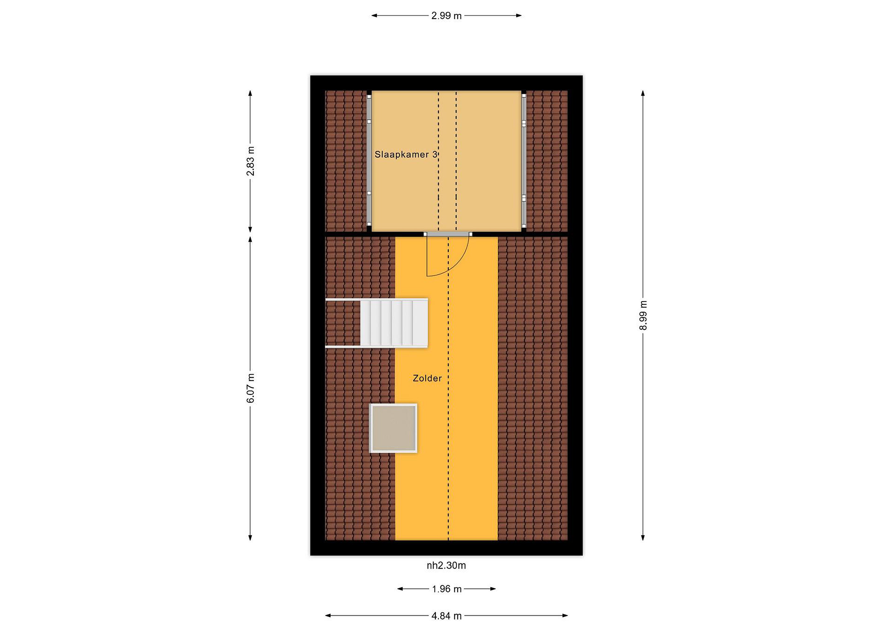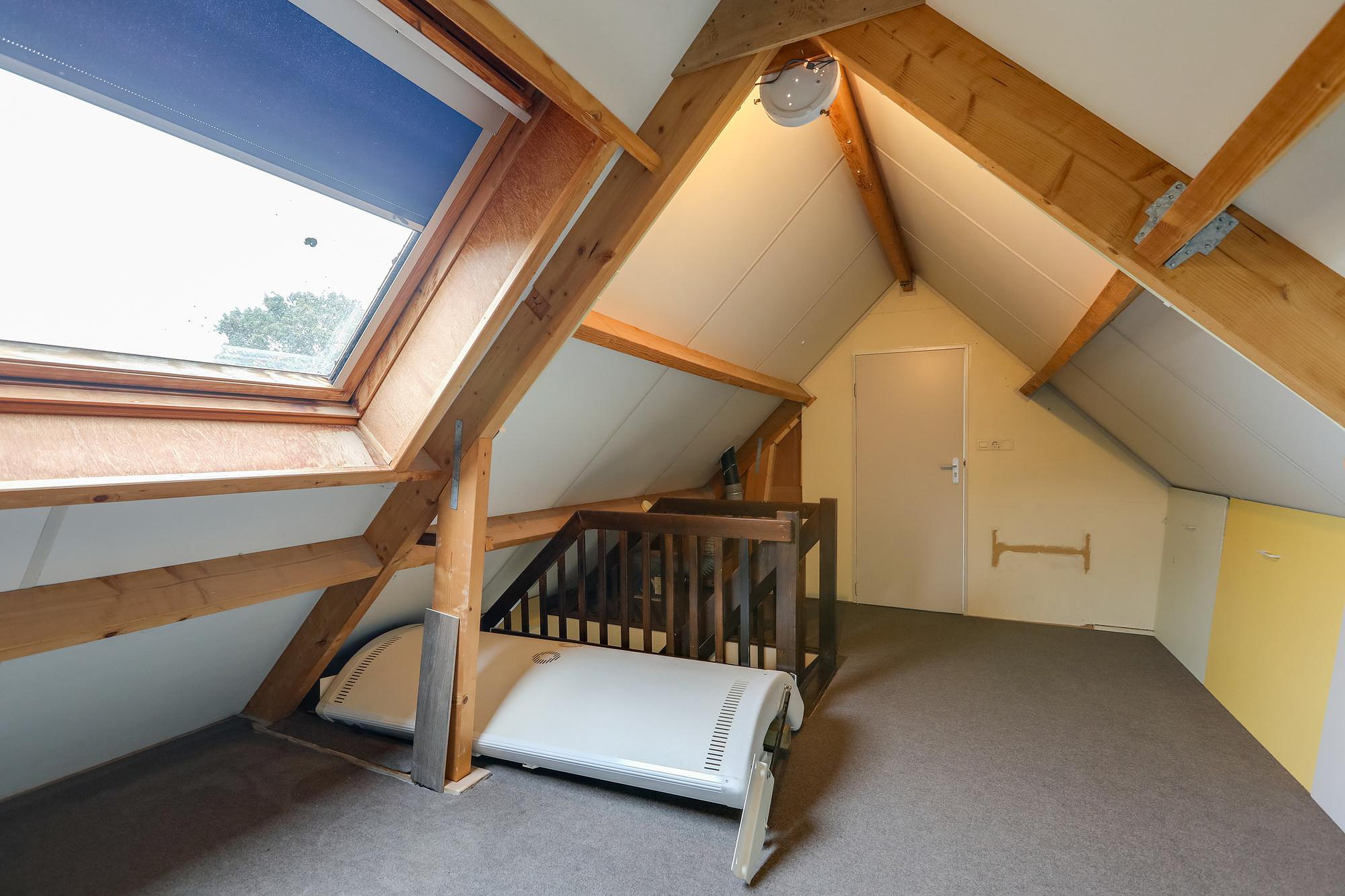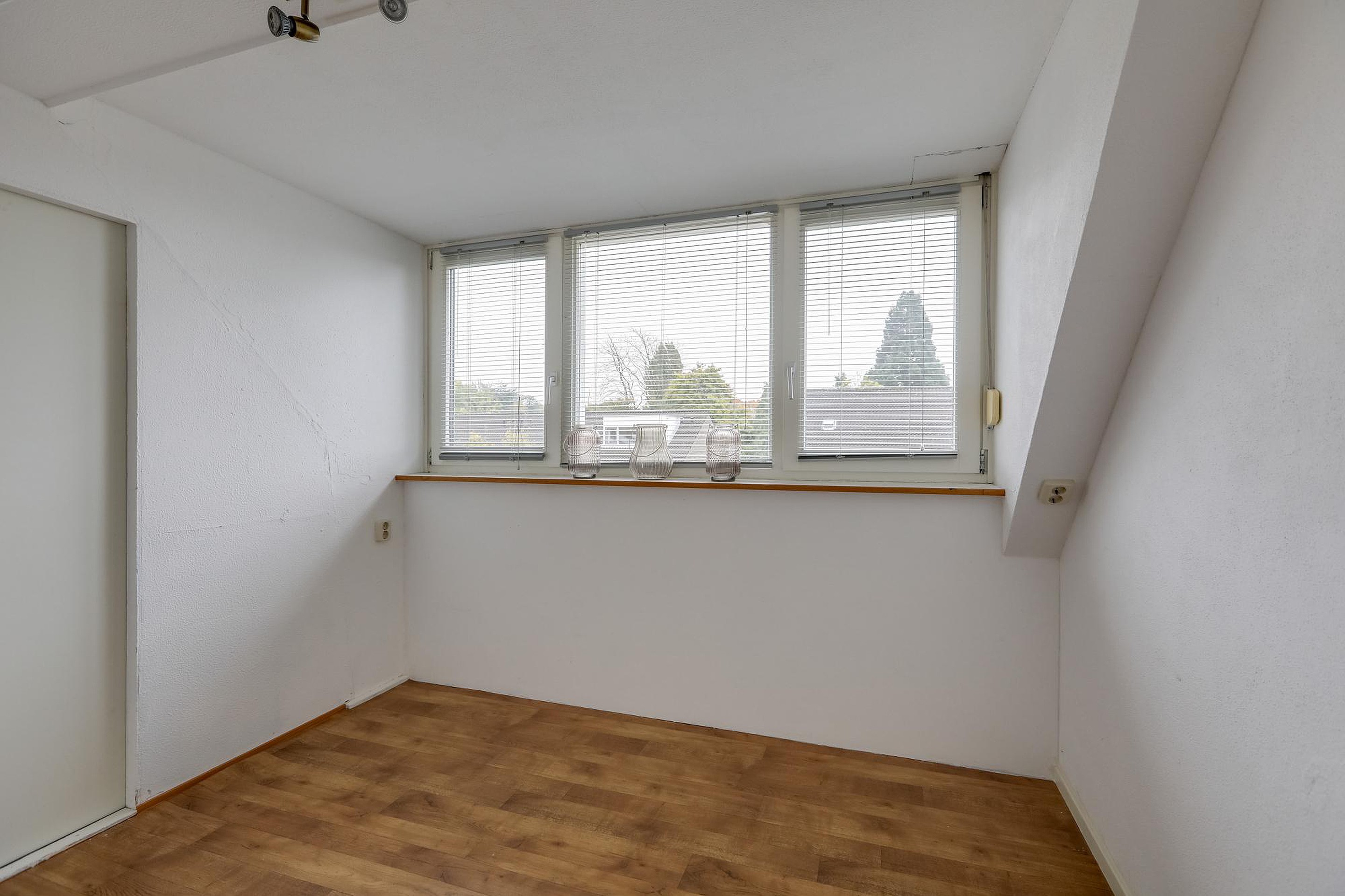 Via de vaste trap bereik je de zolderverdieping waar zich de derde slaapkamer bevindt met een praktische dakkapel. Deze kamer biedt voldoende ruimte en lichtinval, waardoor het prettige werkplek of slaapkamer is. De voorzolder die nu dient als handige bergruimte maar zou eventueel omgebouwd kunnen worden tot een vierde slaapkamer.
