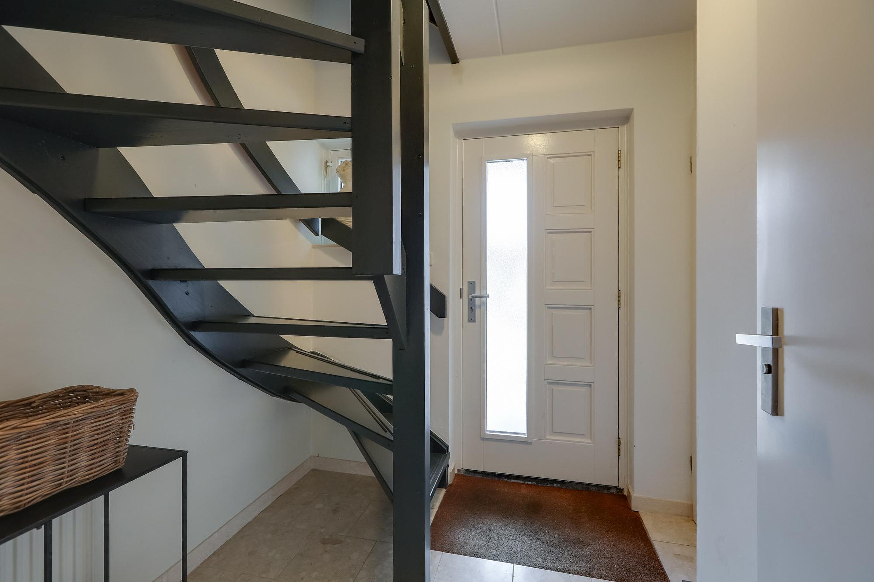 Bij binnenkomst is er een hal, toilet met fonteintje, garderobe, meterkast en een vaste trap naar de eerste verdieping. De woonkamer in L-vorm is ruim, licht en is voorzien van een mooie parketvloer en openslaande tuindeuren naar de achtertuin.