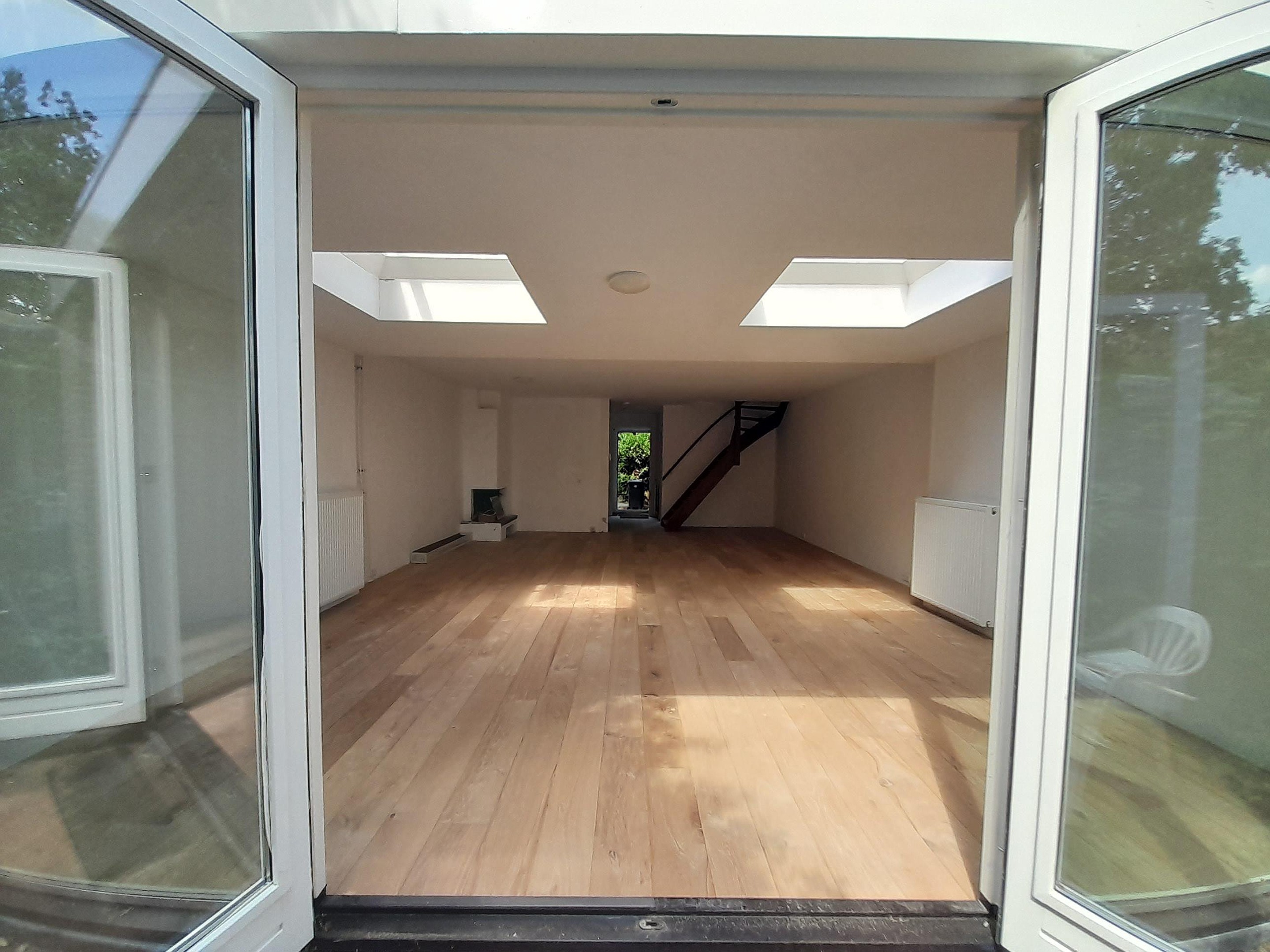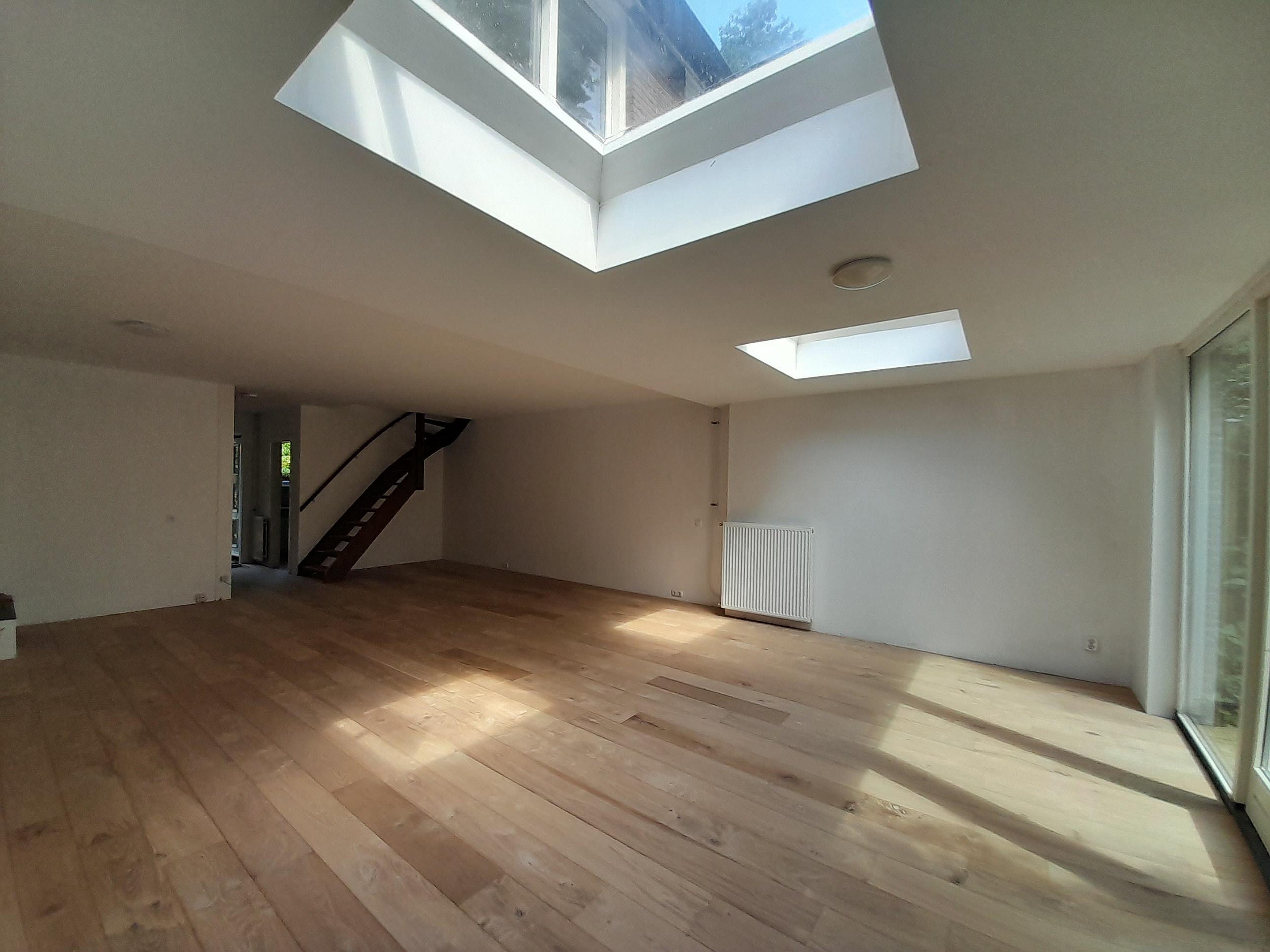 - De gehele woonkamer is voorzien van vloerverwarming en een houtenvloer
