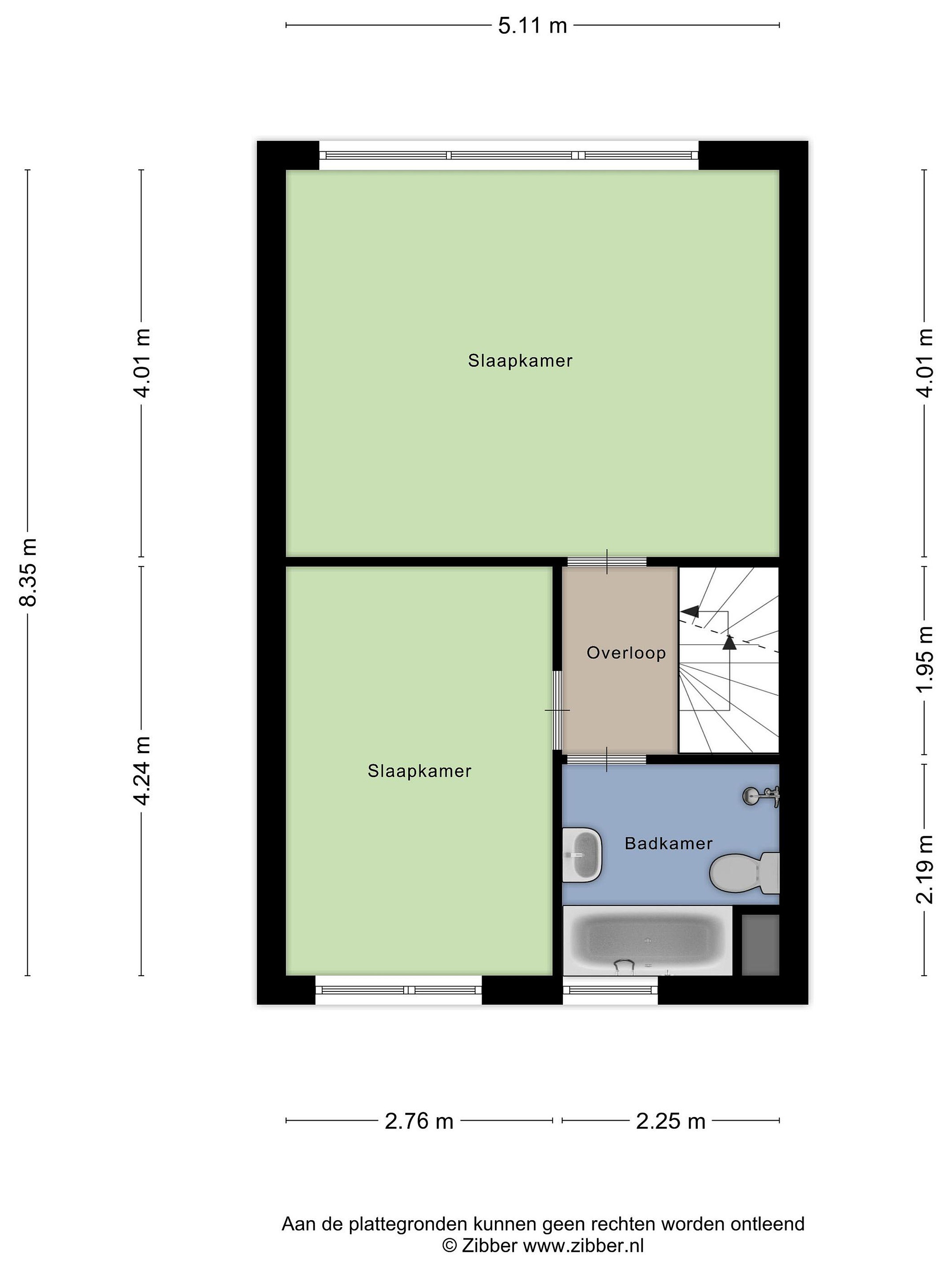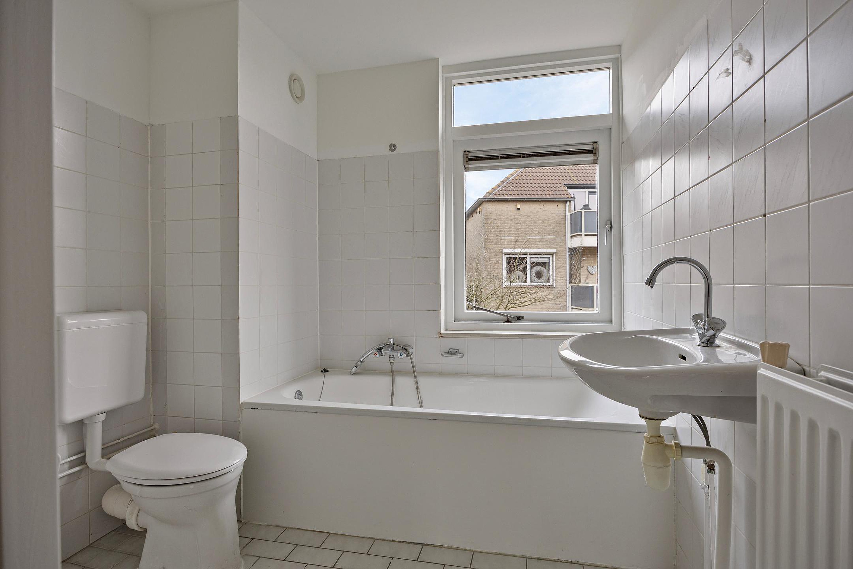 Eerste verdieping Op de eerste etage wachten twee ruime slaapkamers, allemaal met prima afmetingen en veel lichtinval. De slaapkamer aan de achterzijde beslaat zelfs de hele breedte van het huis ideaal als ouderlijke kamer, maar natuurlijk ook een geweldige plek voor een tiener die eigen ruimte belangrijk vindt. De badkamer op deze verdieping is ruim opgezet, biedt een ligbad, een aparte douche, wastafelmeubel én een toilet, dus nooit meer ochtendstress!