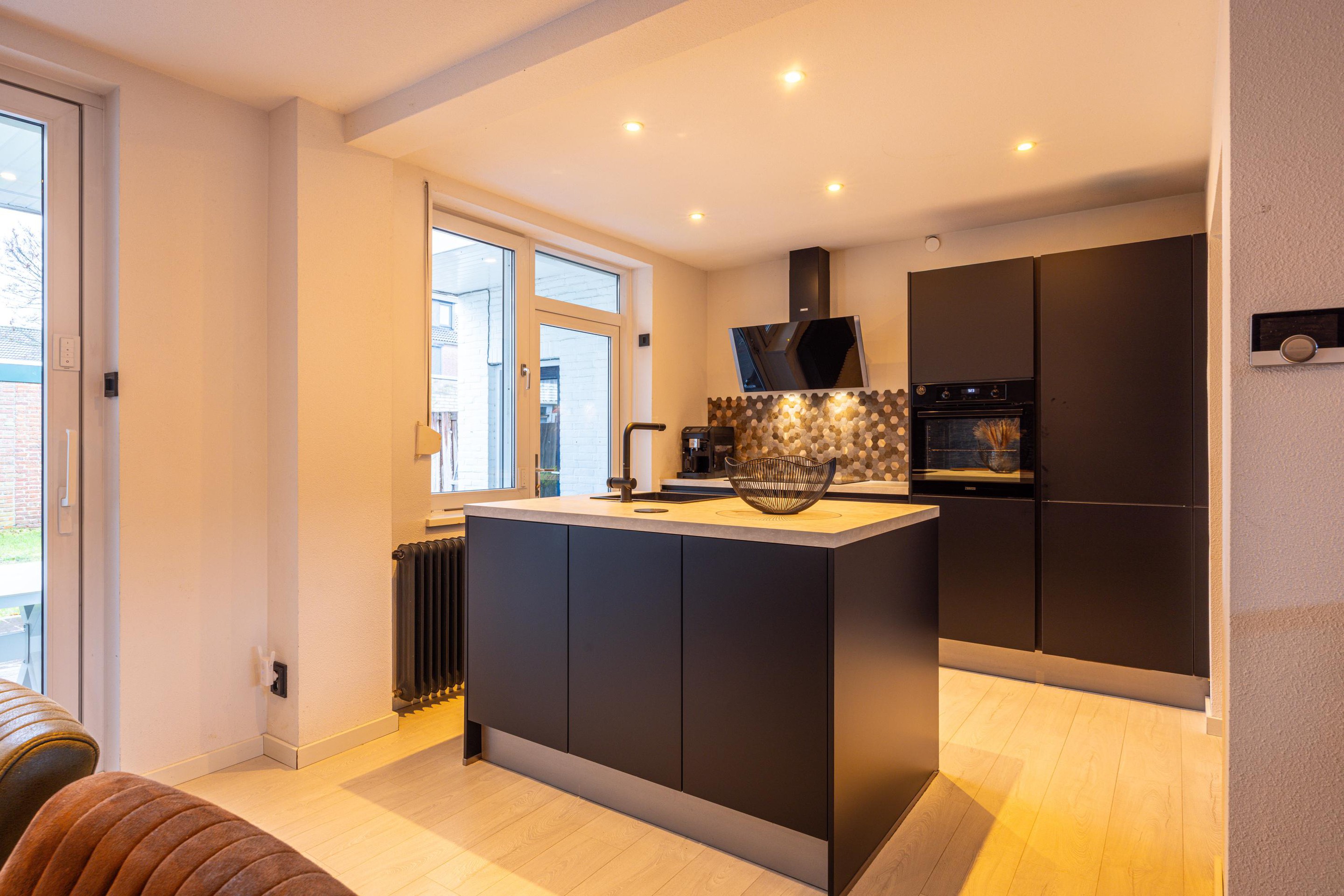 De open keuken, vernieuwd in 2020, vormt het hart van de begane grond. De combinatie van donkere fronten en een strak werkblad geeft de ruimte een moderne en eigentijdse uitstraling. Dankzij de laminaatvloer en de kunststof kozijnen met HR++ beglazing is de keuken niet alleen stijlvol, maar ook onderhoudsvriendelijk en goed geïsoleerd. De keuken is compleet uitgerust met een 4-pits inductiekookplaat, afzuigkap, oven, koelkast met vriesvak en een vaatwasser. Er is voldoende werk- en bergruimte aanwezig, waardoor koken hier comfortabel en praktisch is.