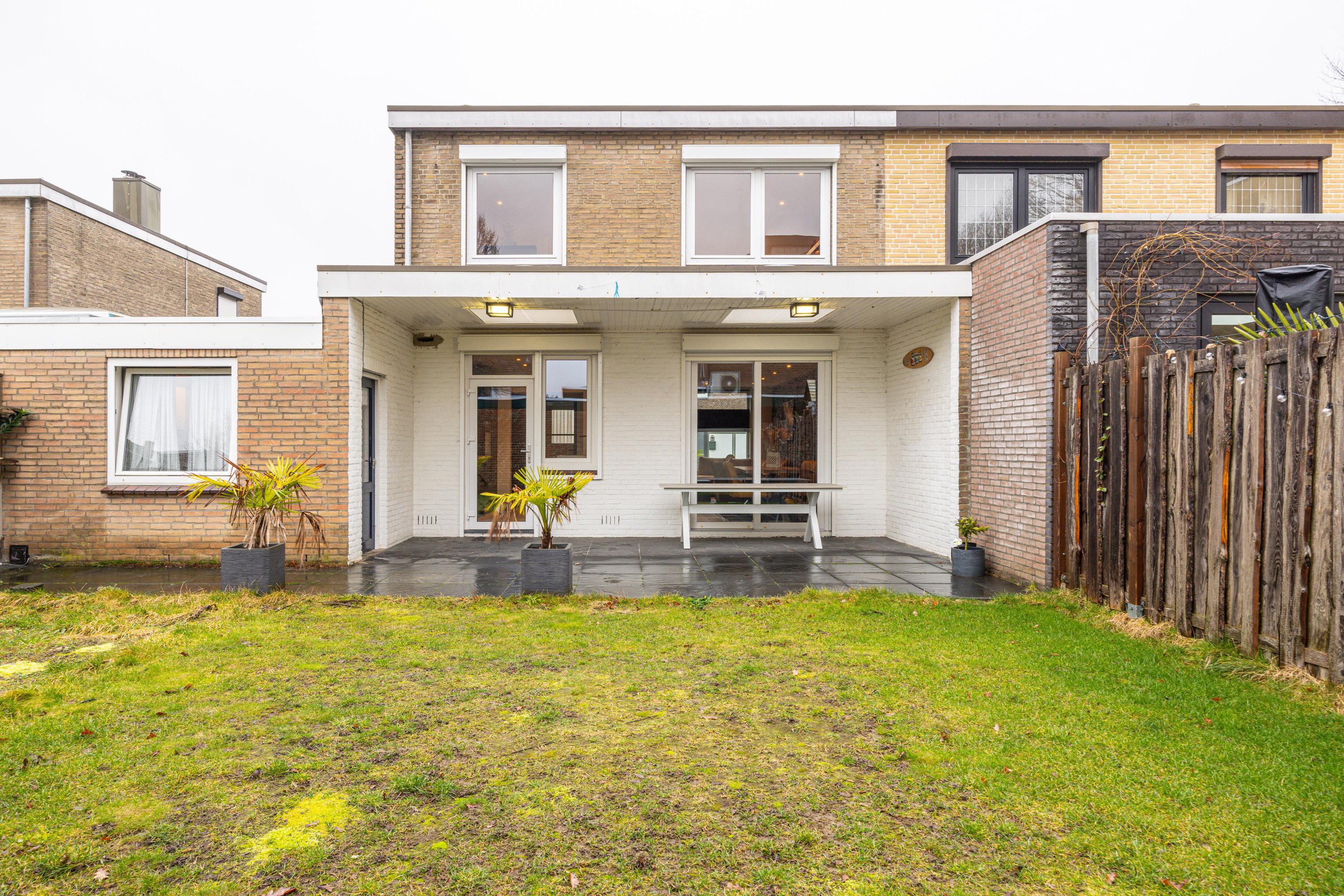 Tuin De achtertuin vormt een fijne verlenging van de woonruimte en is praktisch ingericht met een goede balans tussen bestrating en groen. Direct aan de woning bevindt zich een overkapping, waardoor je hier al vroeg in het voorjaar en tot laat in het najaar comfortabel buiten kunt zitten. Een prettige plek voor een loungehoek of eettafel, beschut tegen zon en regen.