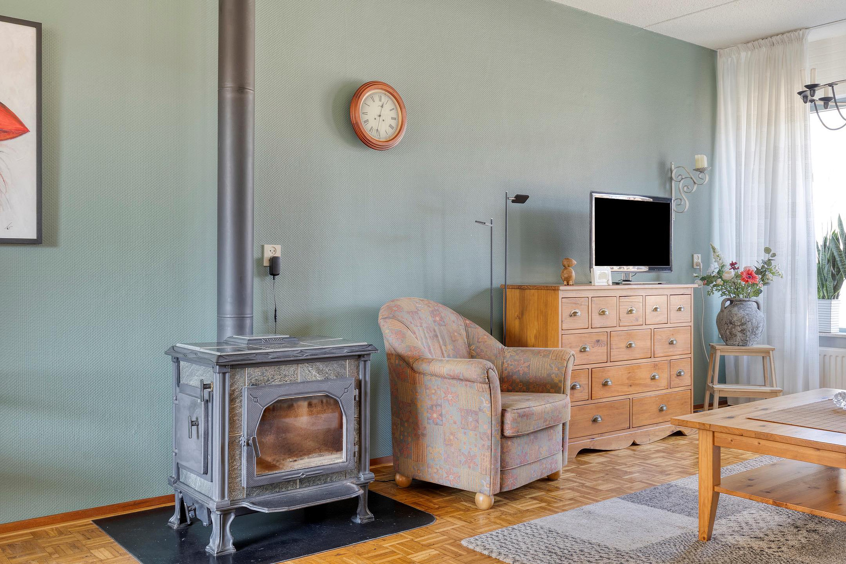 Je merkt meteen: de huidige bewoners zijn zuinig op het huis geweest. Het schilderwerk ziet er piekfijn uit, deels zijn de kozijnen vervangen door onderhoudsvriendelijk kunststof, en de keuken en het sanitair zijn helemaal van deze tijd. In de woonkamer staat een gezellige houtkachel—perfect voor de koude winteravonden, wanneer je samen lekker op de bank ploft na een lange dag.