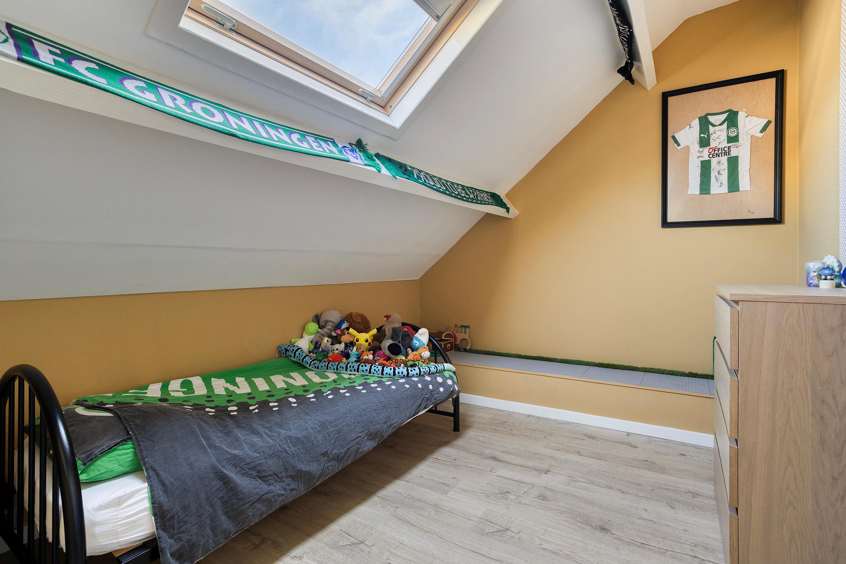 Een echte bonus van dit huis is het feit dat je twee slaapkamers plus een badkamer gewoon beneden vindt. Of je nu als gezin ruimte zoekt, je ouders graag wil laten logeren of zelf levensloopbestendig wilt wonen: dat kan hier allemaal! Geen gedoe meer met traplopen dus, wat het huis ook uitermate geschikt maakt voor oudere stellen of doorstromers.