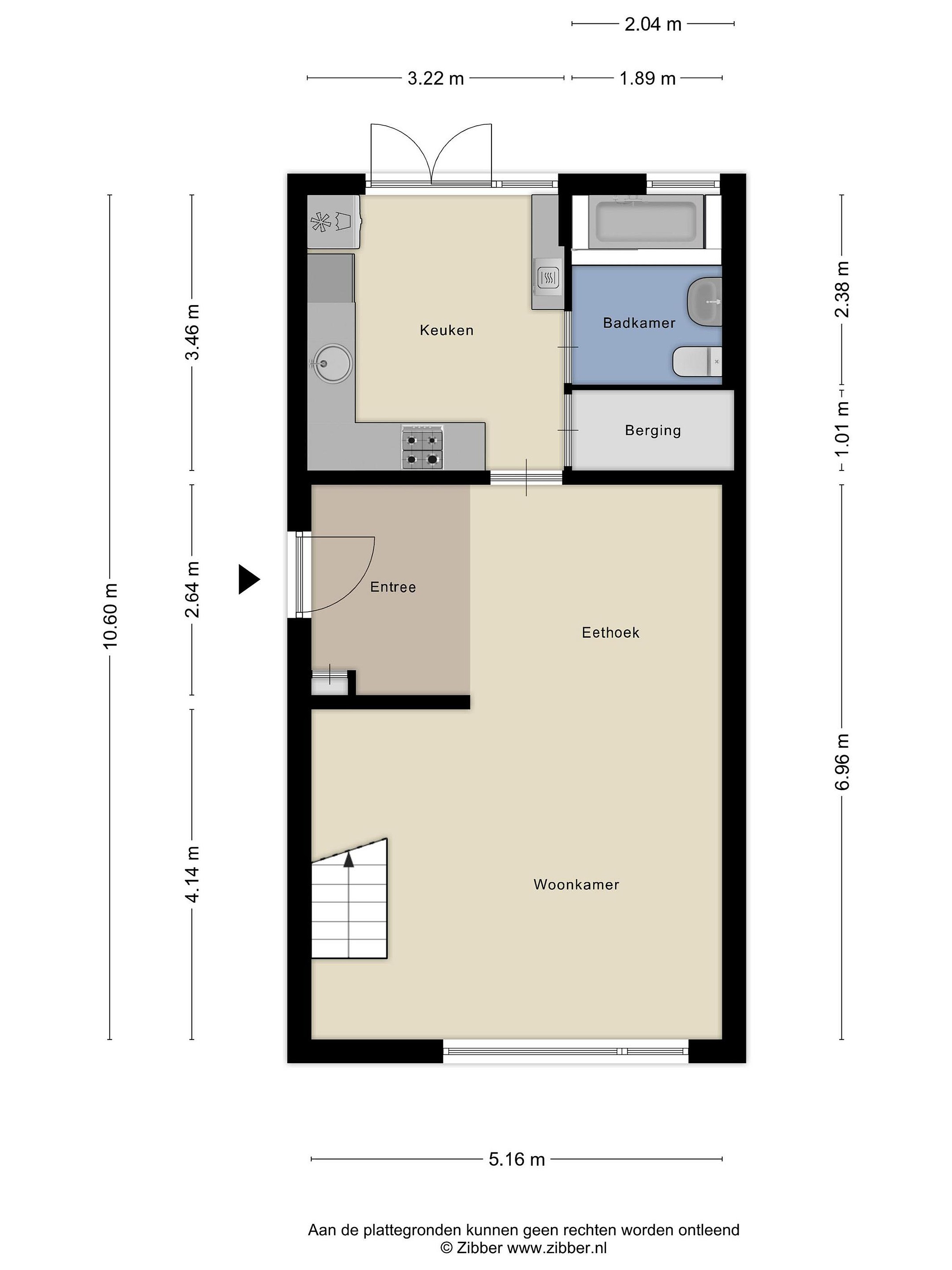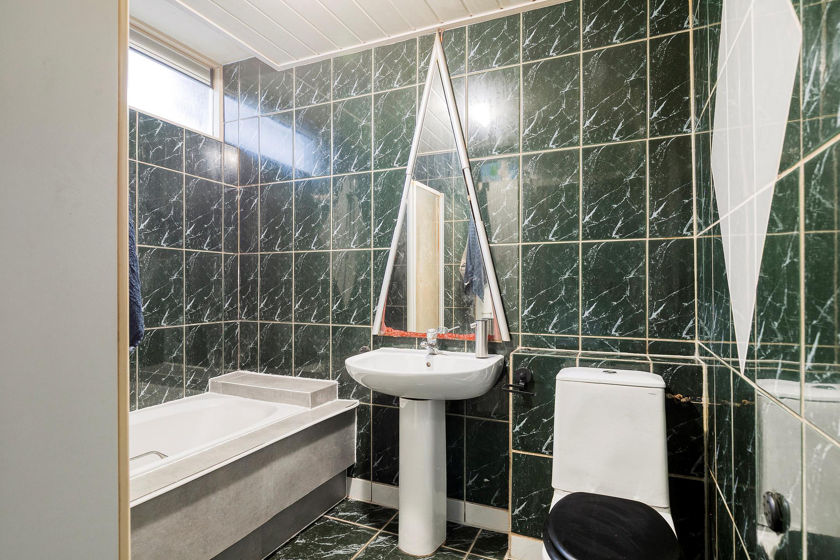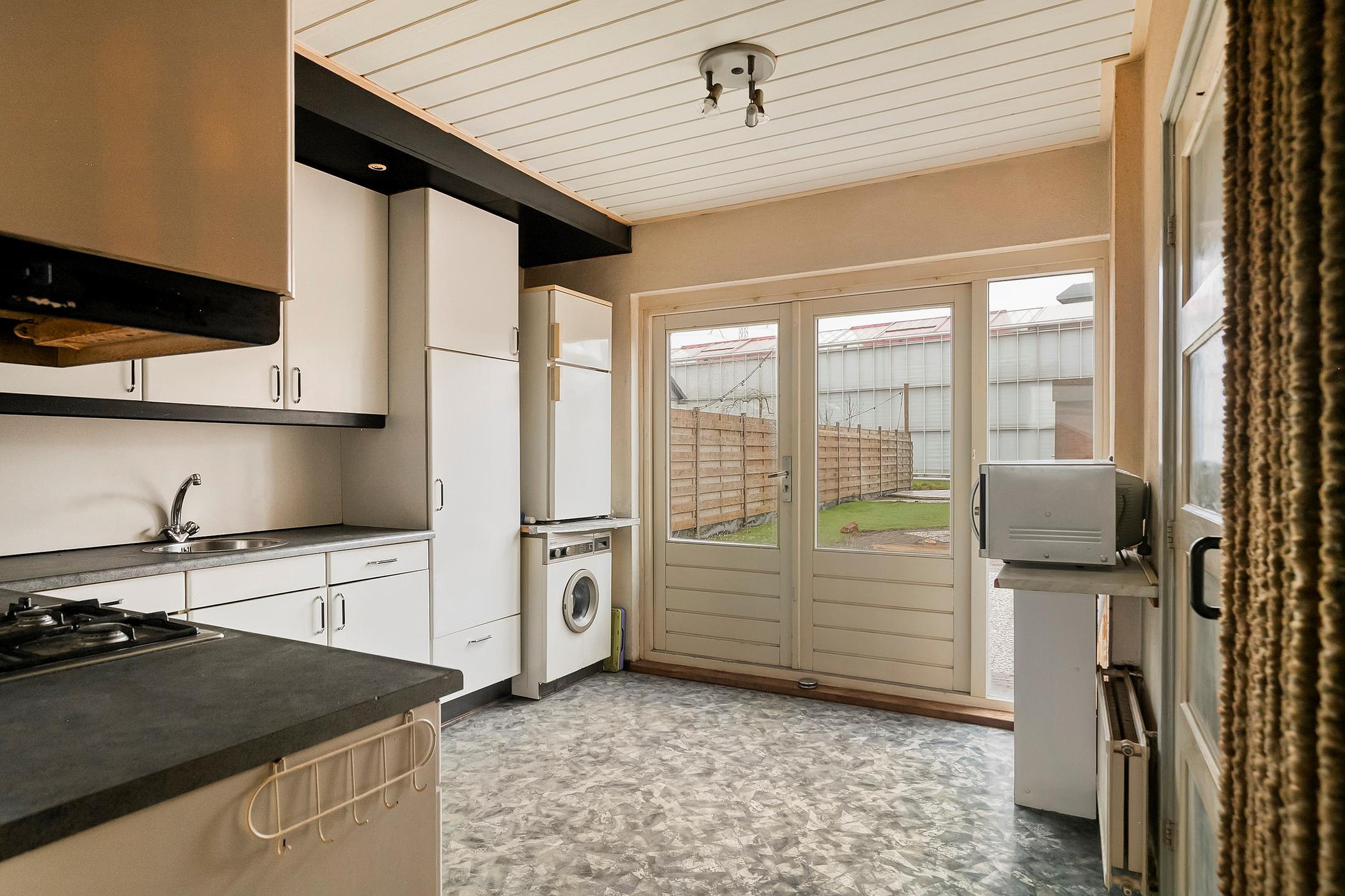 Begane grond De entree van de woning is bereikbaar via de zijkant van de woning. Hal met meterkast (5 groepen en a.l.s.), woonkamer met trapopgang naar de 1e etage. De eenvoudige keuken is voorzien van een gaskookplaat, afzuigkap, gootsteen en opstelplaats voor de wasmachine. De openslaande deuren in de keuken geven toegang tot de zonnige achtertuin met stenen berging. In de keuken zit een ruime berging/voorraadkast met opstelplaats voor de CV ketel (Vaillant 2001). Via de keuken heeft u toegang tot de badkamer. De volledig betegelde badkamer is voorzien van een ligbad, toilet en wastafel.