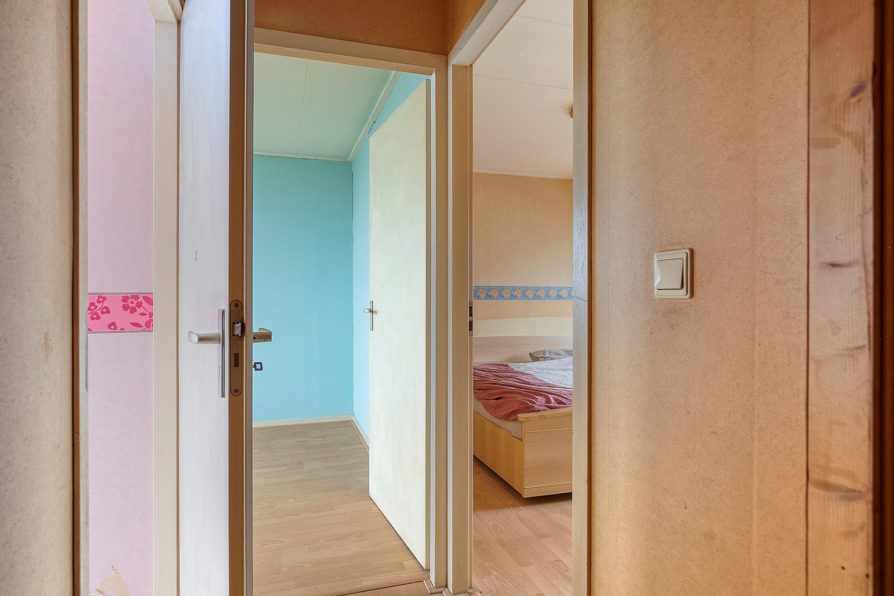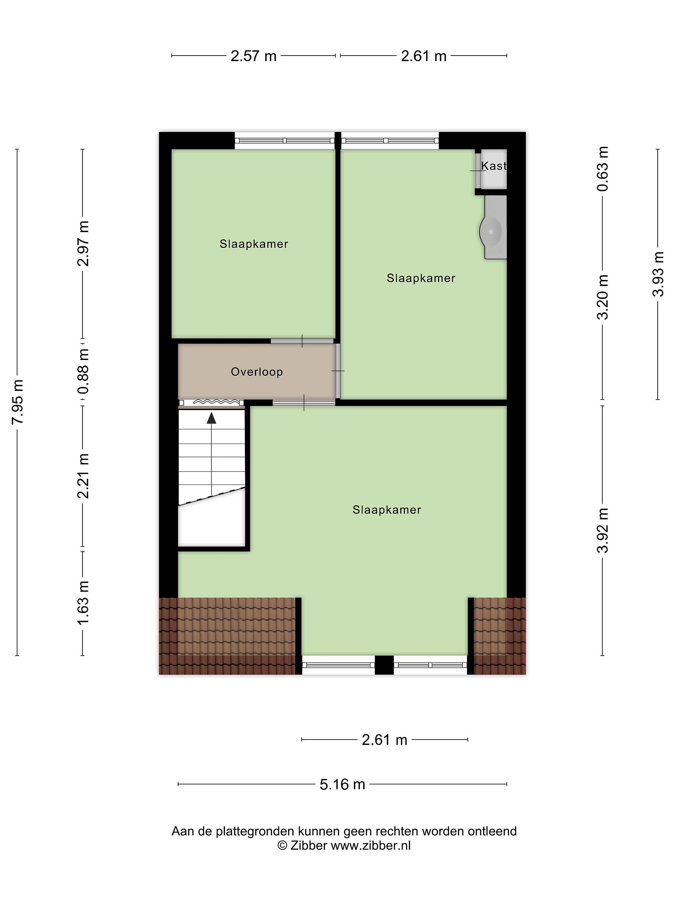 Eerste verdieping De overloop geeft toegang tot 3 slaapkamers. De grootste slaapkamer ligt aan de voorzijde van de woning en is voorzien van een dakkapel. De andere 2 slaapkamers liggen aan de achterzijde. 1 van de slaapkamers is voorzien van een vaste kast en een wastafelmeubel.