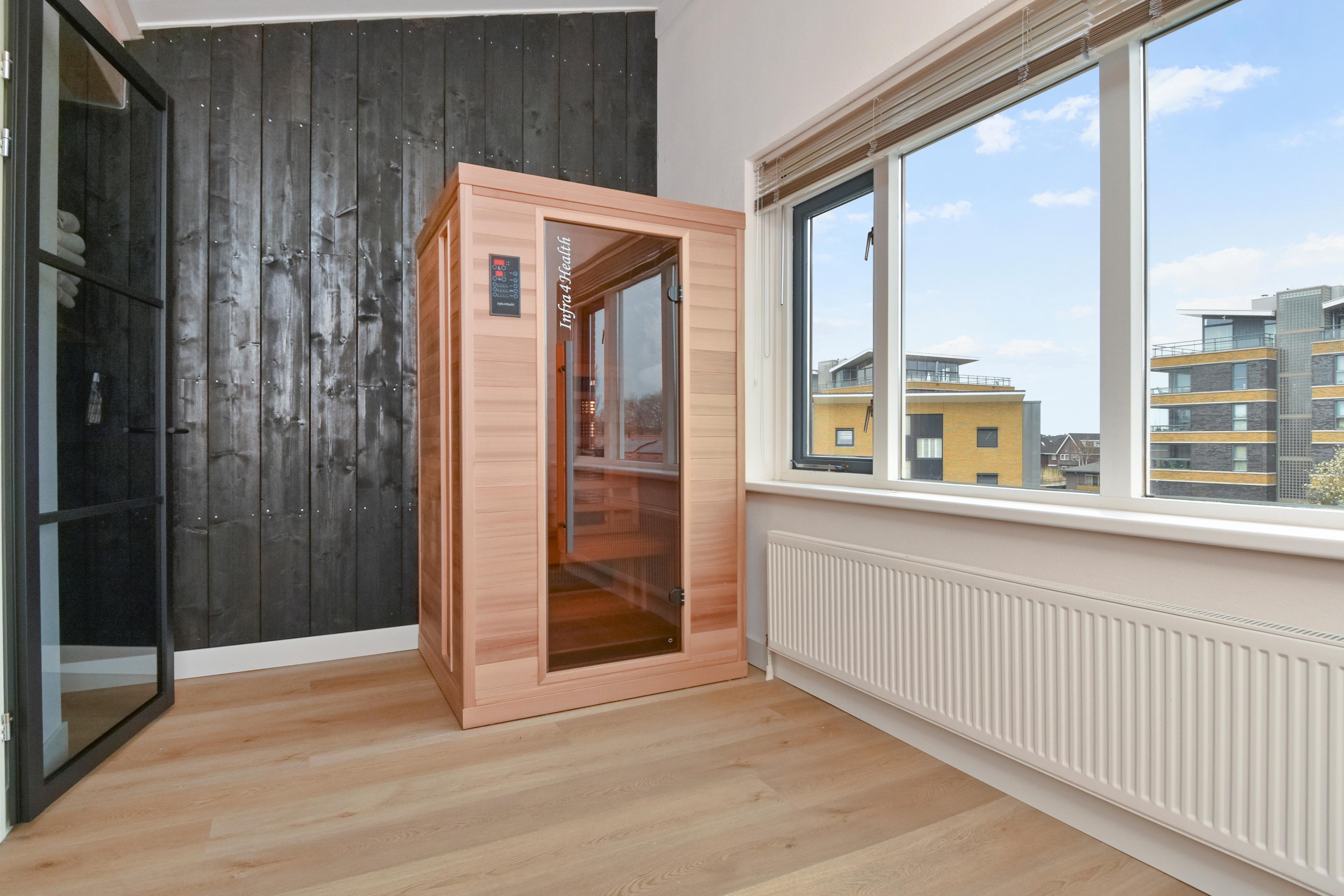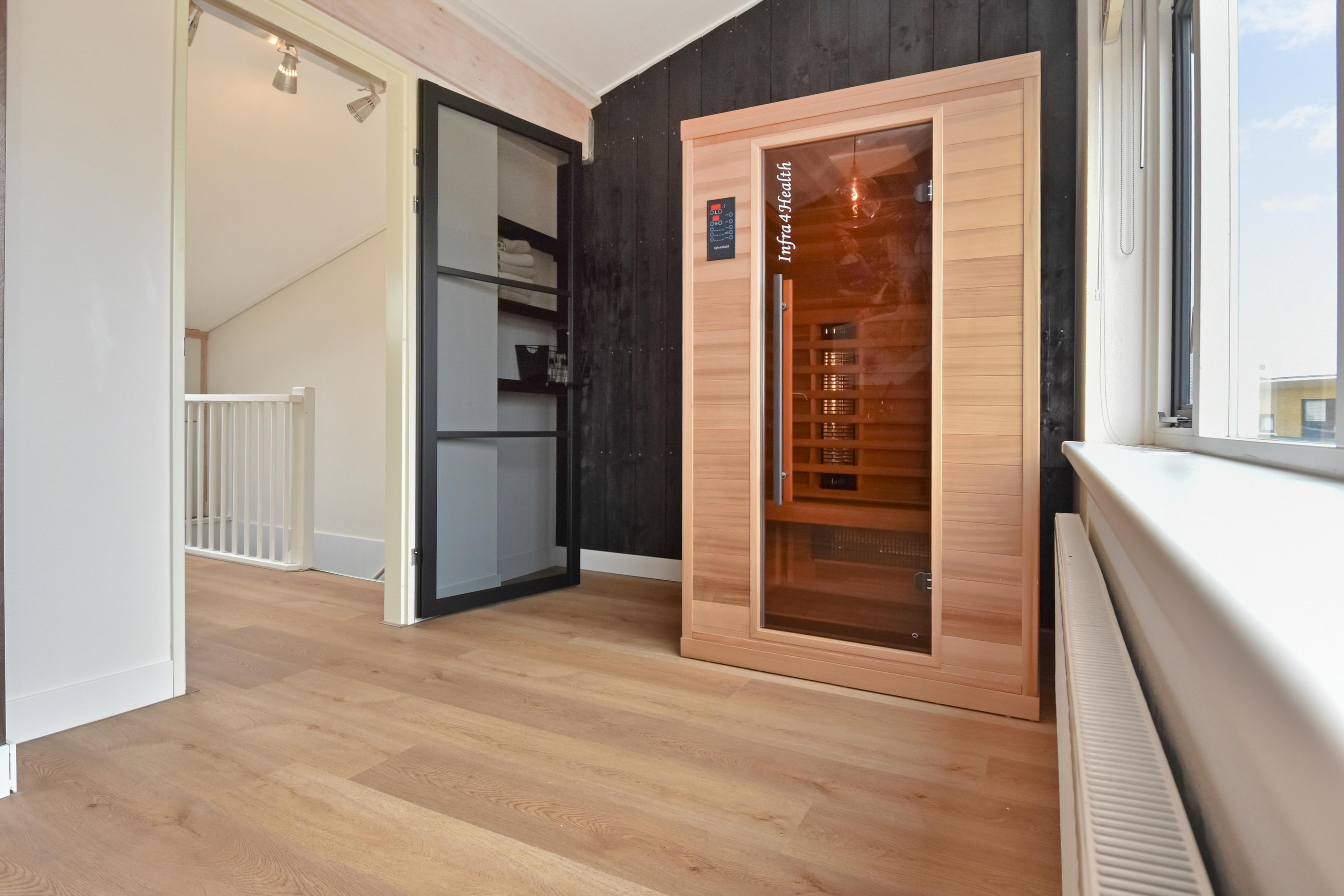 De vierde slaapkamer (ca. 12 m2) bevindt zich aan de achterzijde en strekt zich uit over de volle breedte van de woning. Deze ruimte is momenteel ingericht als wellnessruimte met vrijstaand bad en jacuzzi, maar kan eenvoudig weer als slaapkamer worden ingericht.