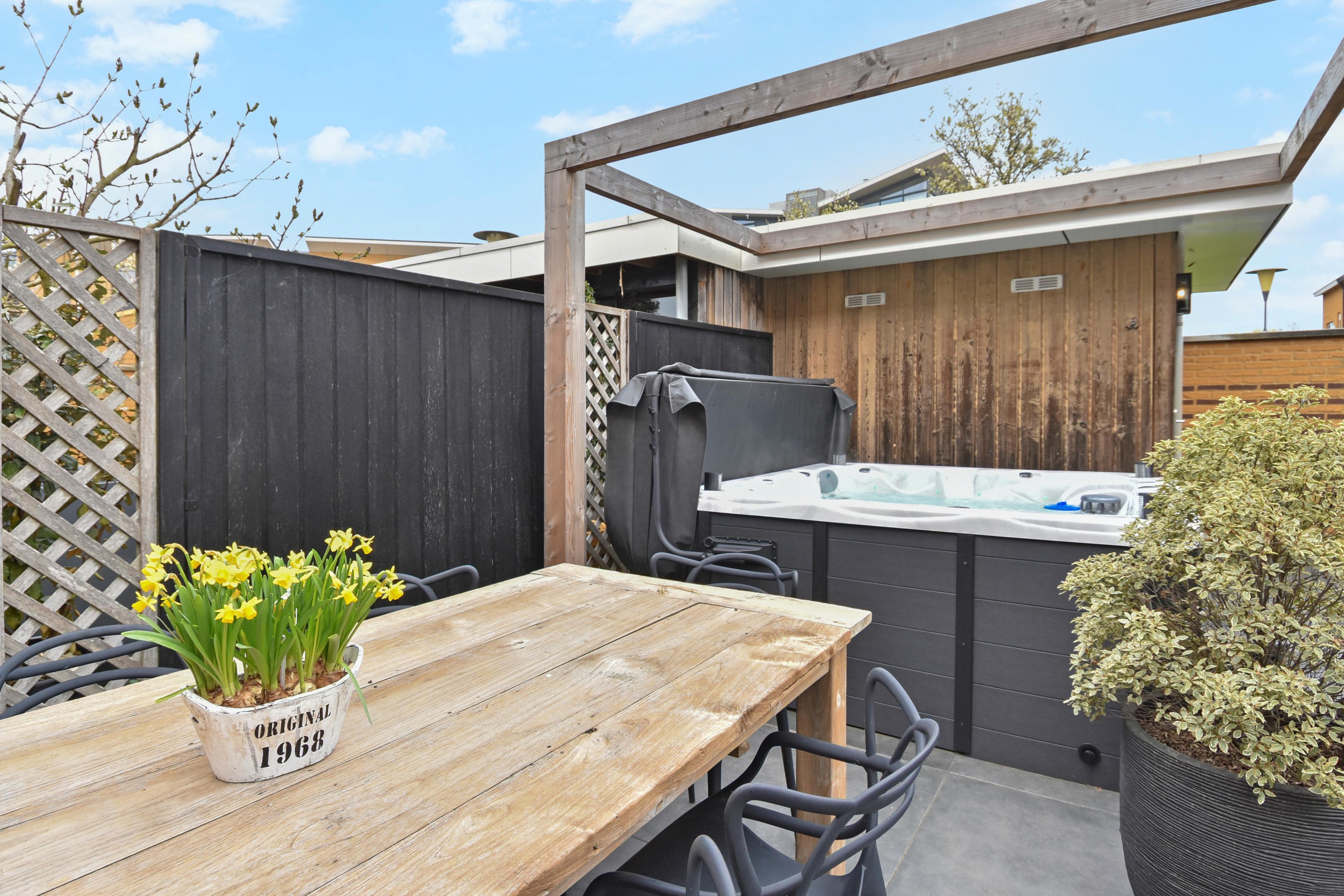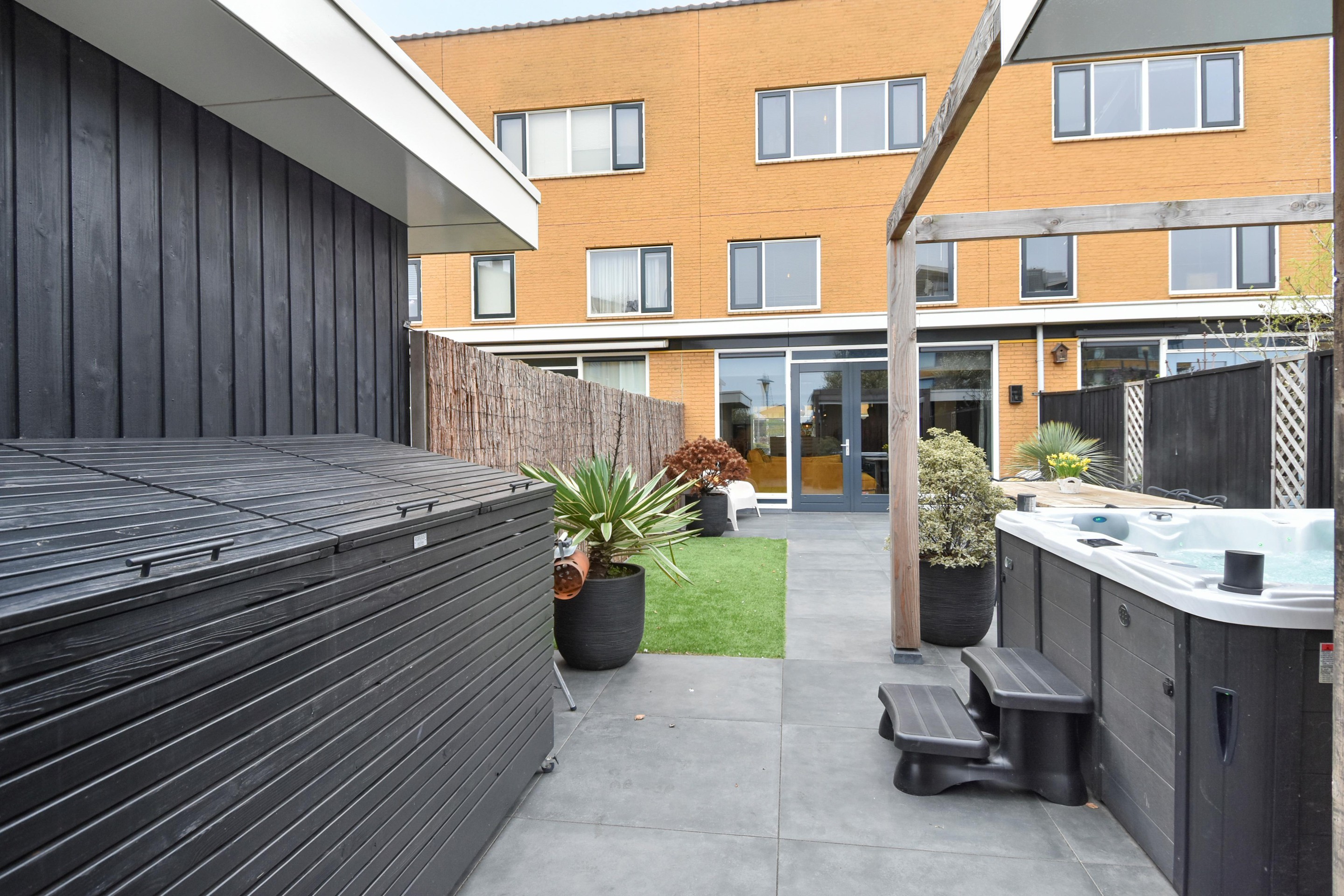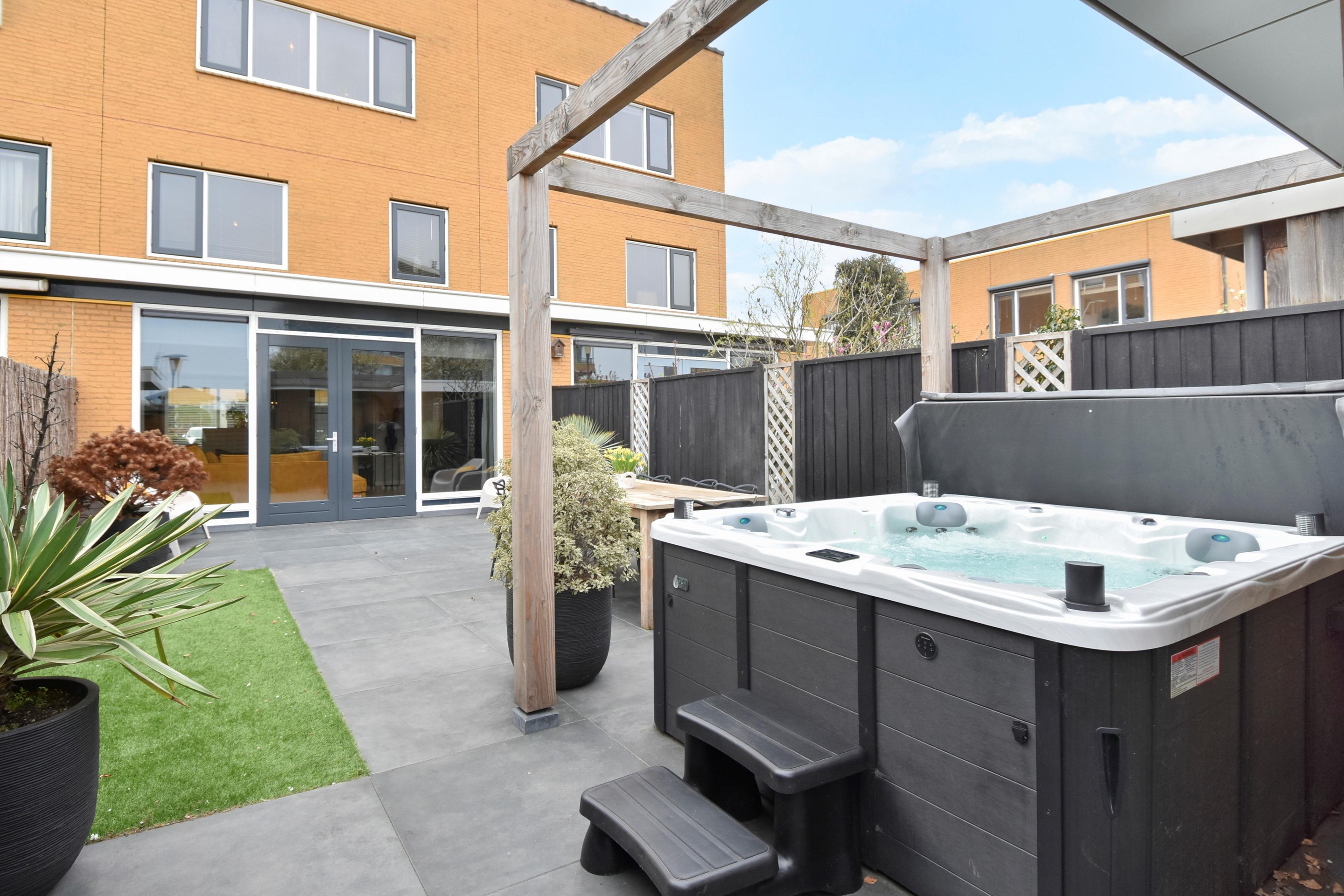 De achtertuin is met ca. 66 m2 opvallend diep en verzorgd aangelegd met grote terrastegels, nette erfafscheidingen en een heerlijke jacuzzi. Dankzij de noordoostelijke ligging en de diepte is er altijd wel een zonnig plekje te vinden. De tuin beschikt verder over een buitenkraan, achterom en een extra brede poort – ideaal voor bijvoorbeeld een motor of scooter. De berging (ca. 6 m2), deels steen en deels hout, is voorzien van elektra.