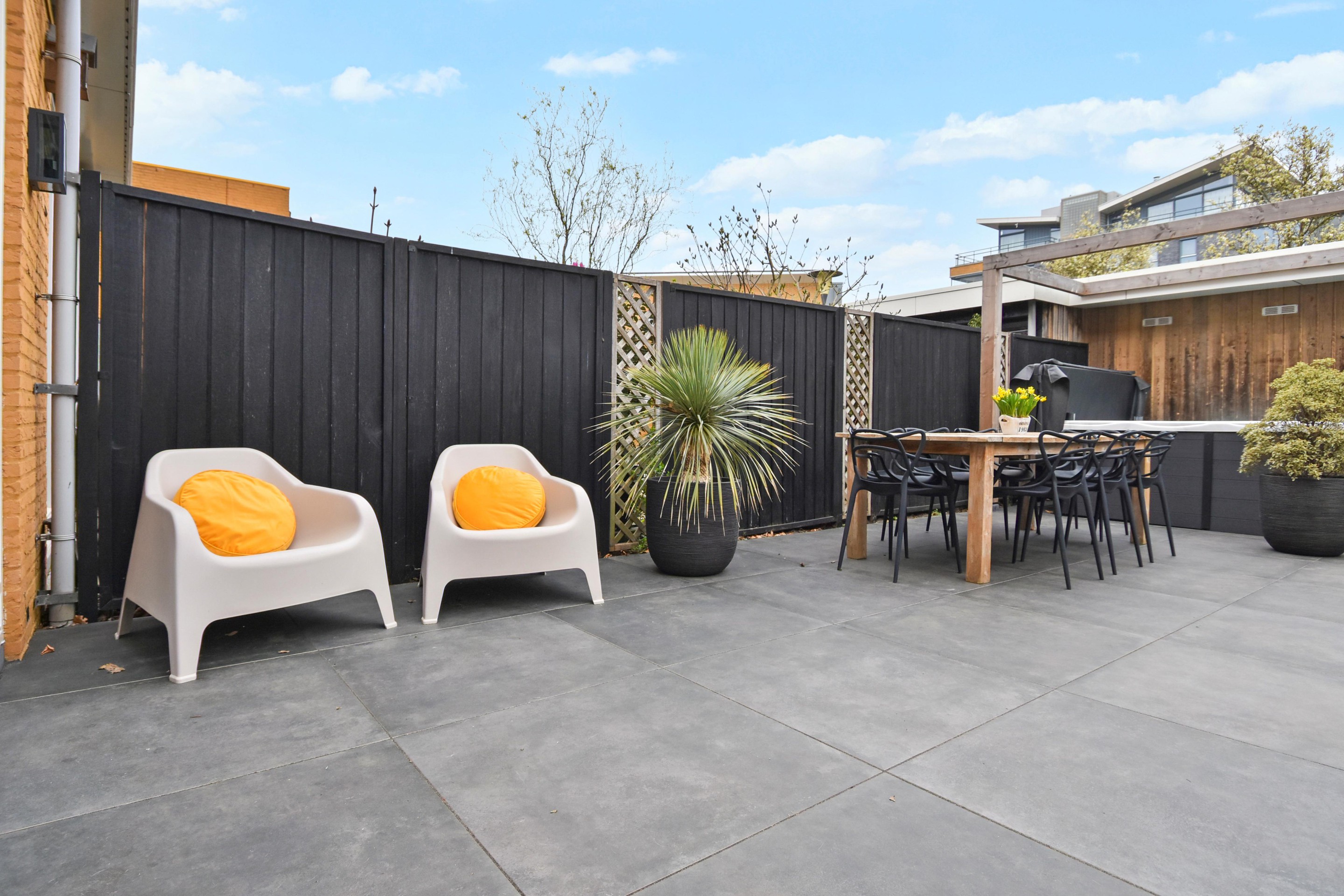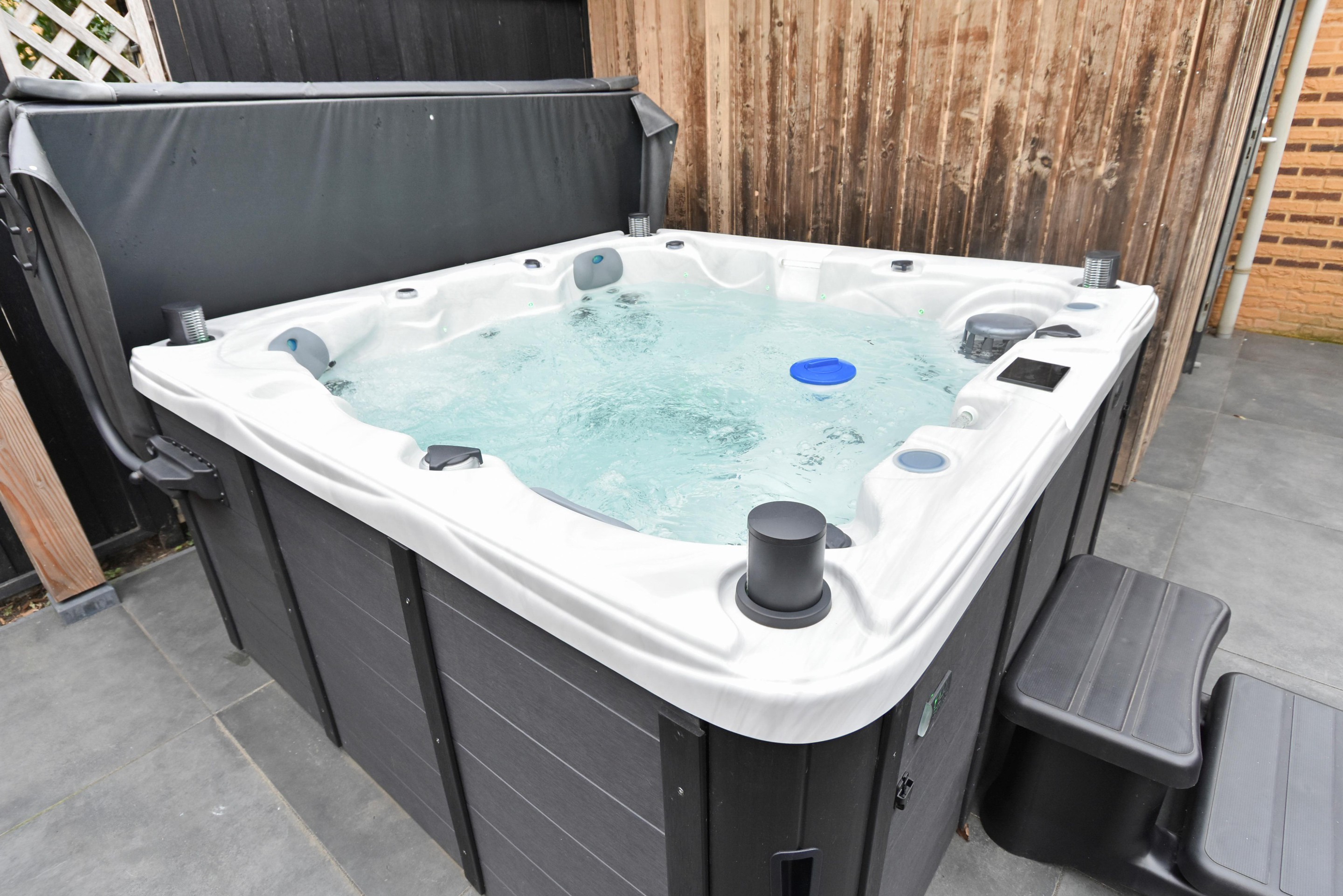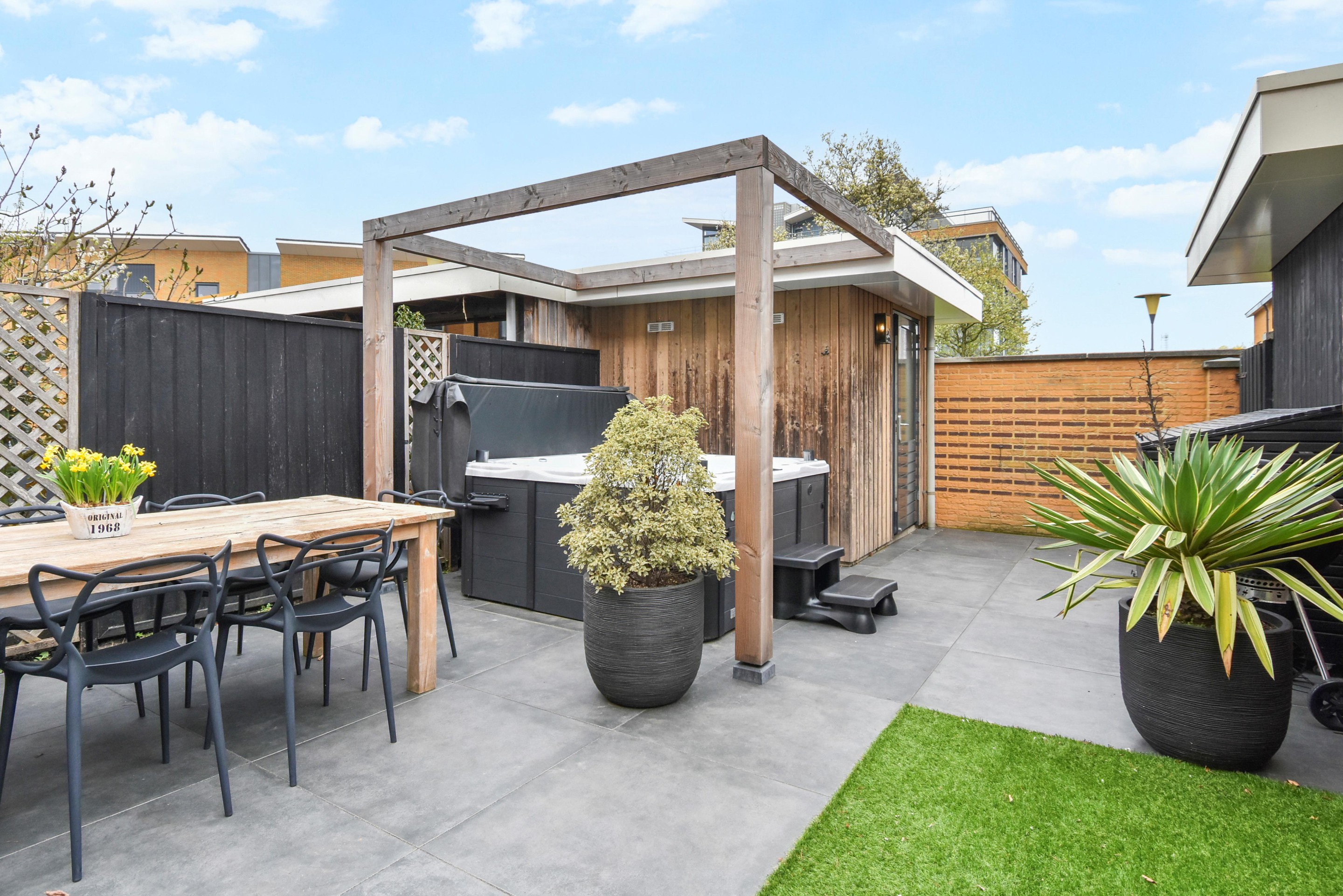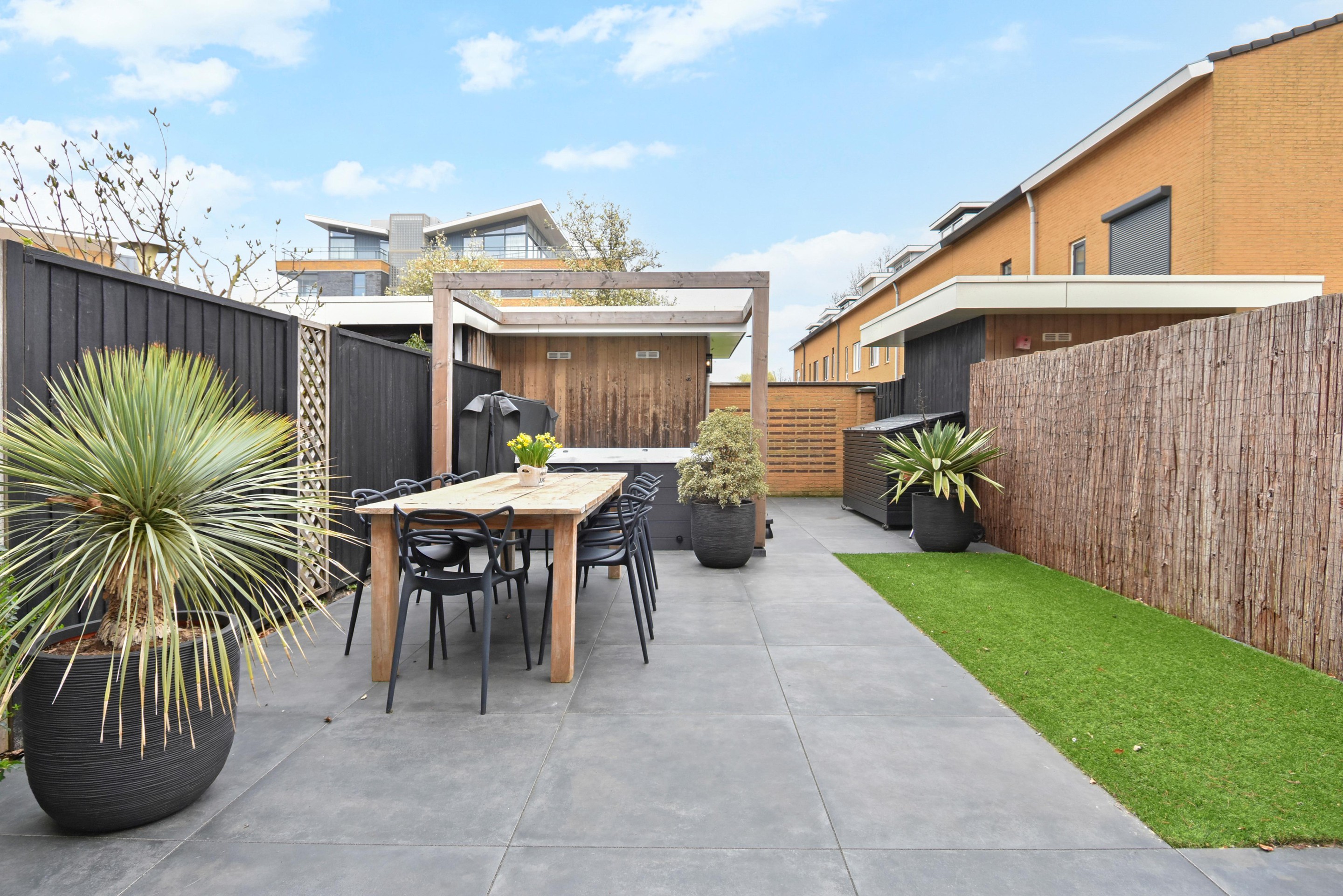 De achtertuin is met ca. 66 m2 opvallend diep en verzorgd aangelegd met grote terrastegels, nette erfafscheidingen en een heerlijke jacuzzi. Dankzij de noordoostelijke ligging en de diepte is er altijd wel een zonnig plekje te vinden. De tuin beschikt verder over een buitenkraan, achterom en een extra brede poort – ideaal voor bijvoorbeeld een motor of scooter. De berging (ca. 6 m2), deels steen en deels hout, is voorzien van elektra.