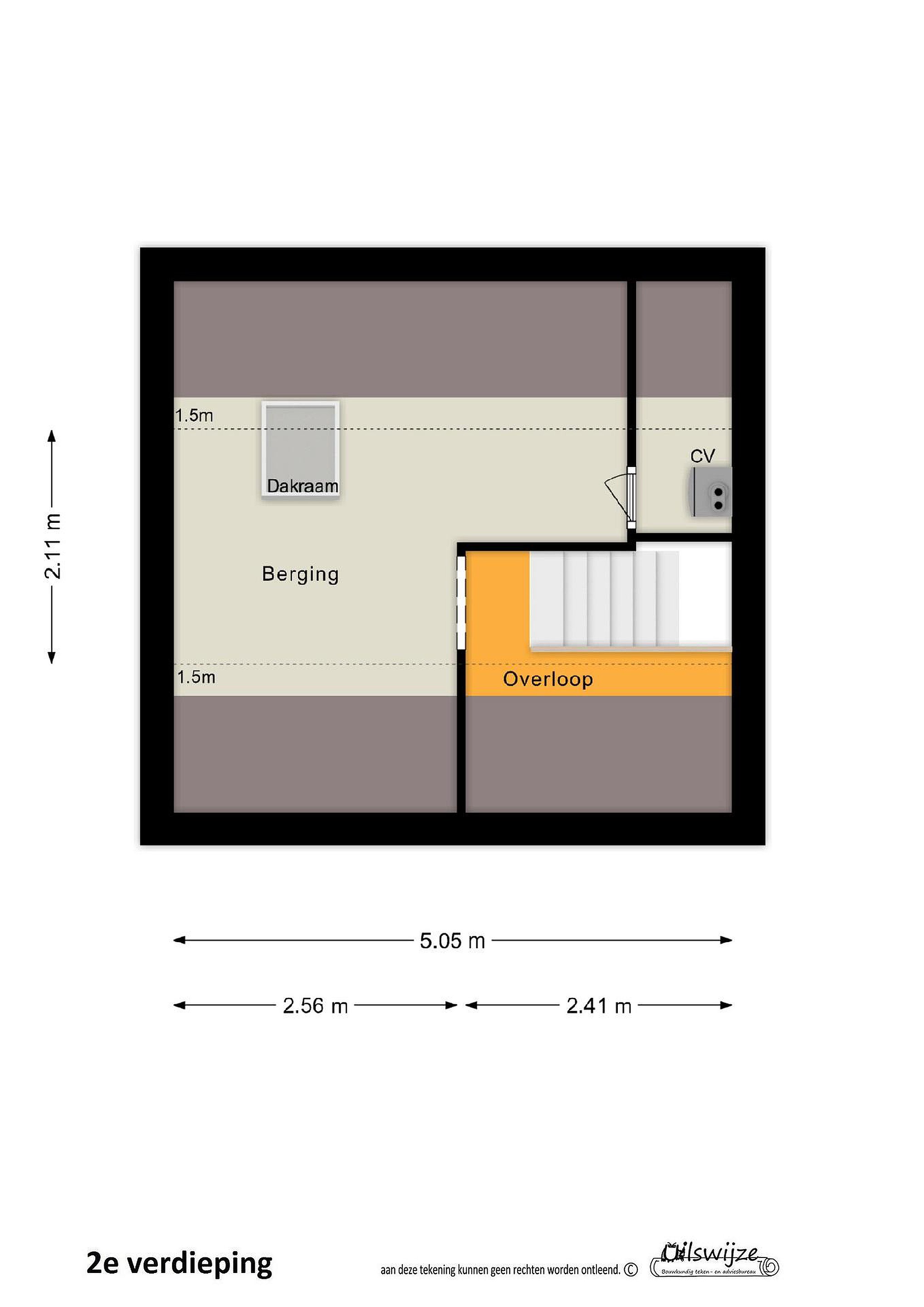 Tweede verdieping Overloop, bergruimte, CV-ketel, 4e slaapkamer v.v. dakraam
