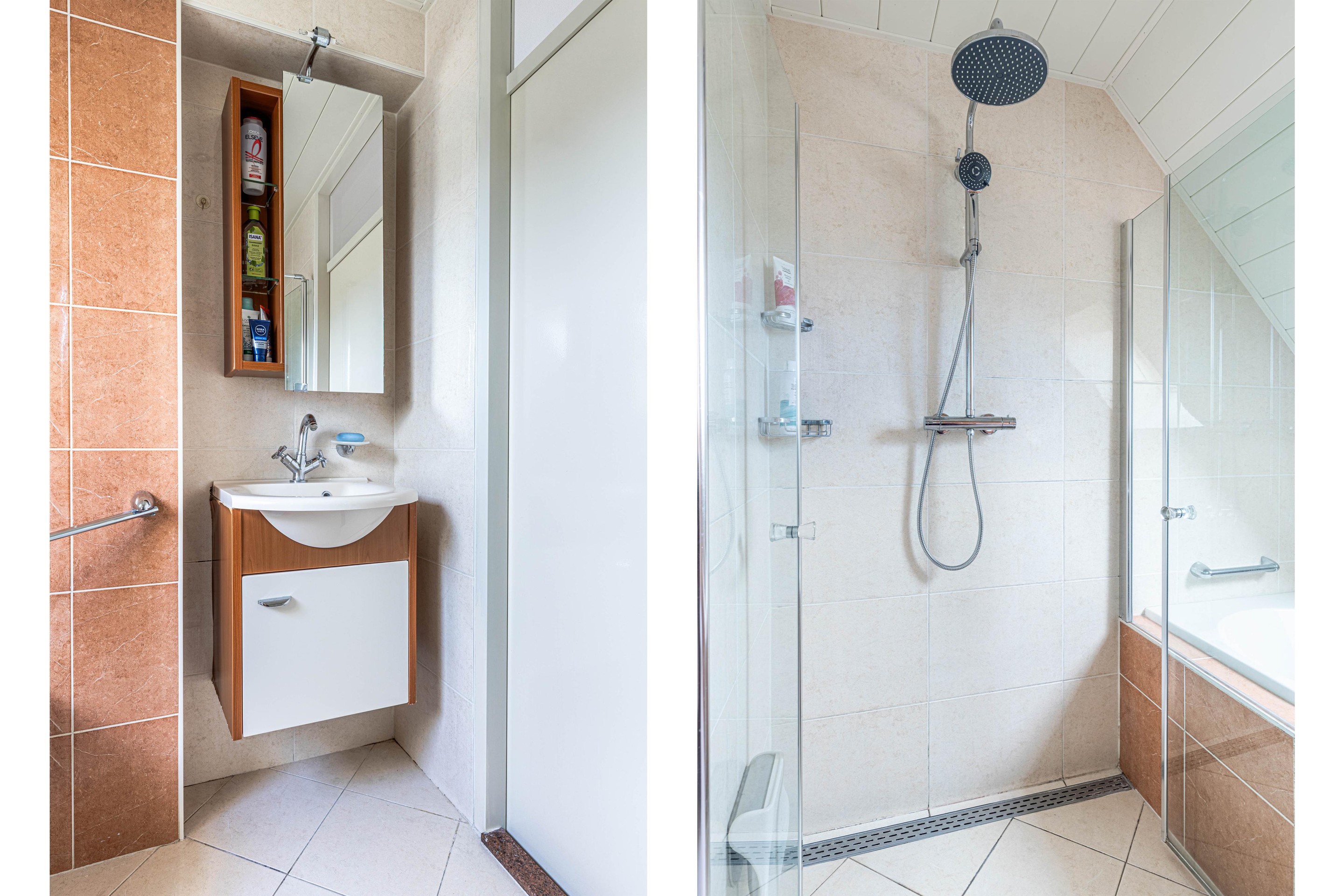 Eerste verdieping Overloop, badkamer v.v. hangend toilet, douche, ligbad (whirlpool) en badmeubel, ouderslaapkamer achterzijde met dakkapel, 2e slaapkamers aan de voorzijde, waarvan 1 met dakkapel.