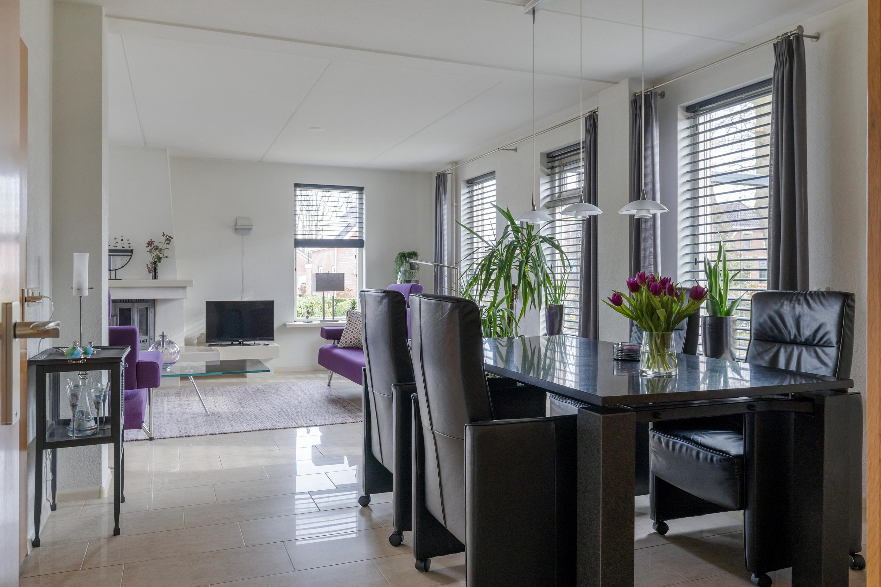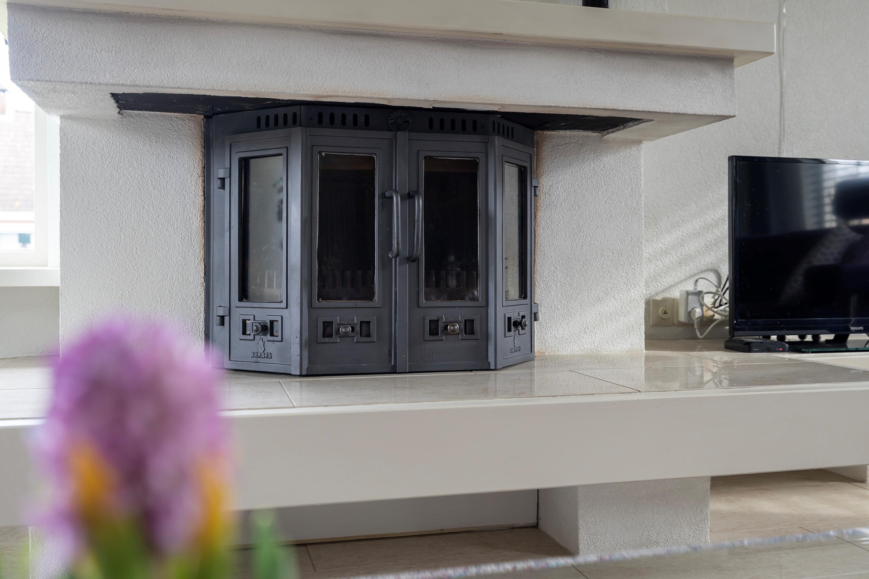 - Sfeer: Woonkamer met houtkachel en vloerverwarming.