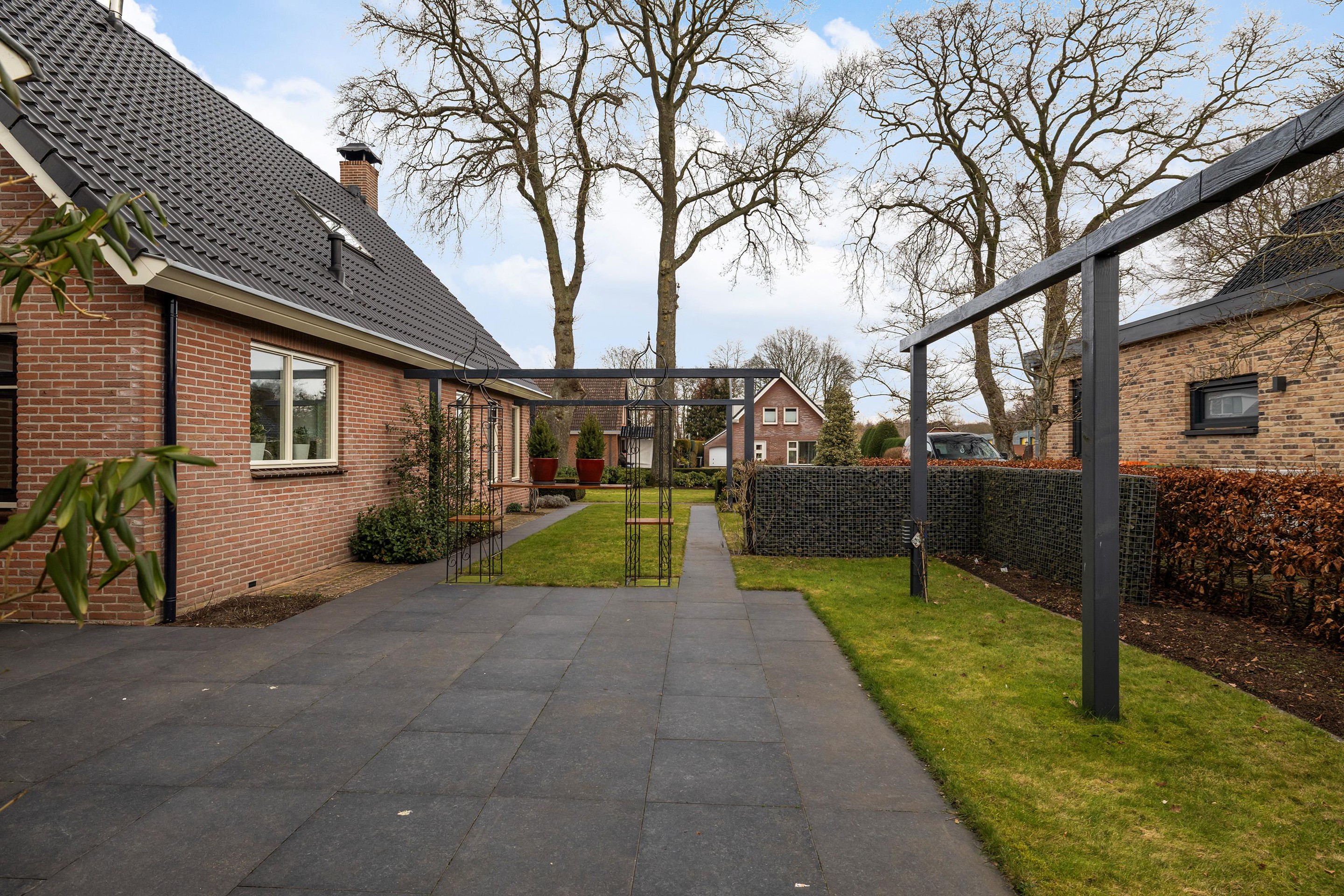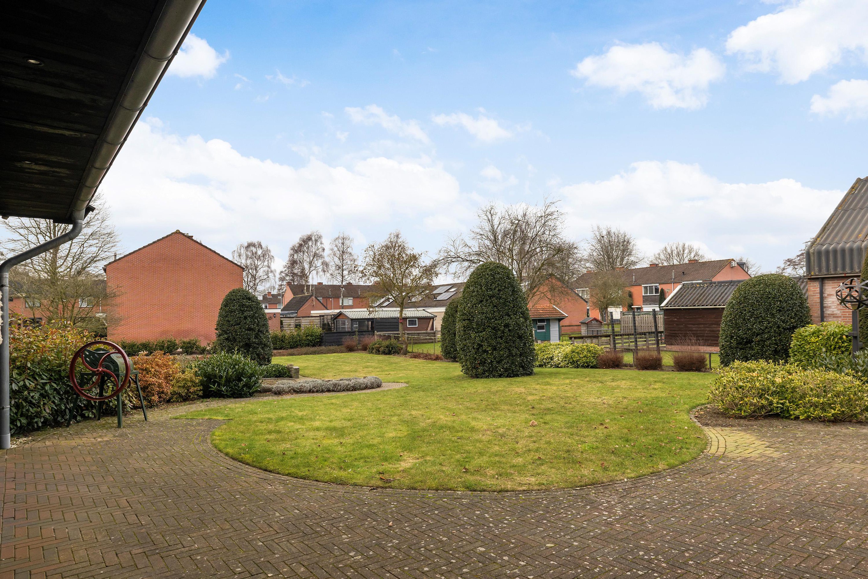 De achtertuin is een waar paradijs voor buitenliefhebbers. Gelegen op het zuidwesten, geniet u hier de hele dag door van de zon. Of u nu kiest voor een plekje onder de vrijstaande houten overkapping of midden op het gazon; privacy en rust zijn hier gegarandeerd.