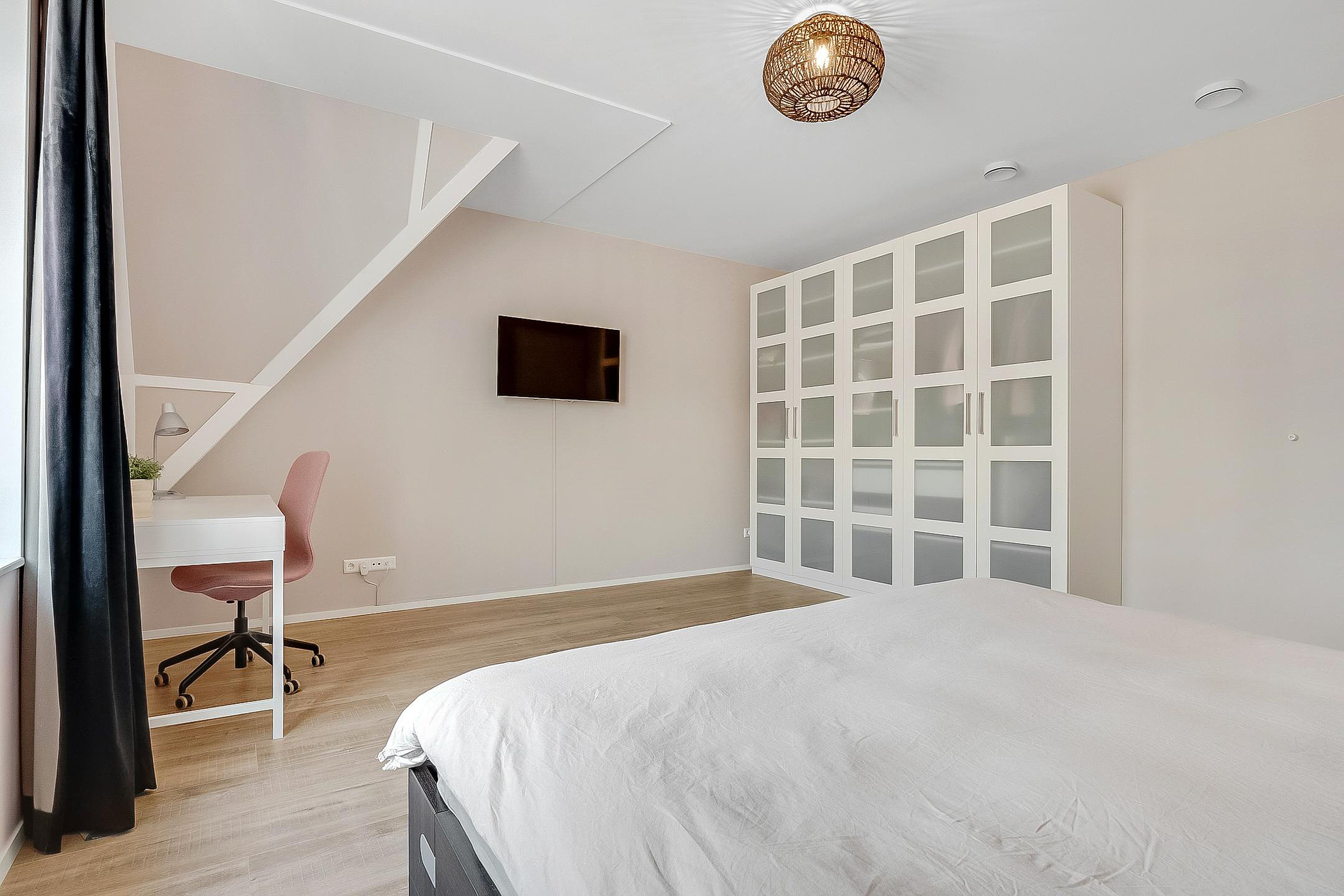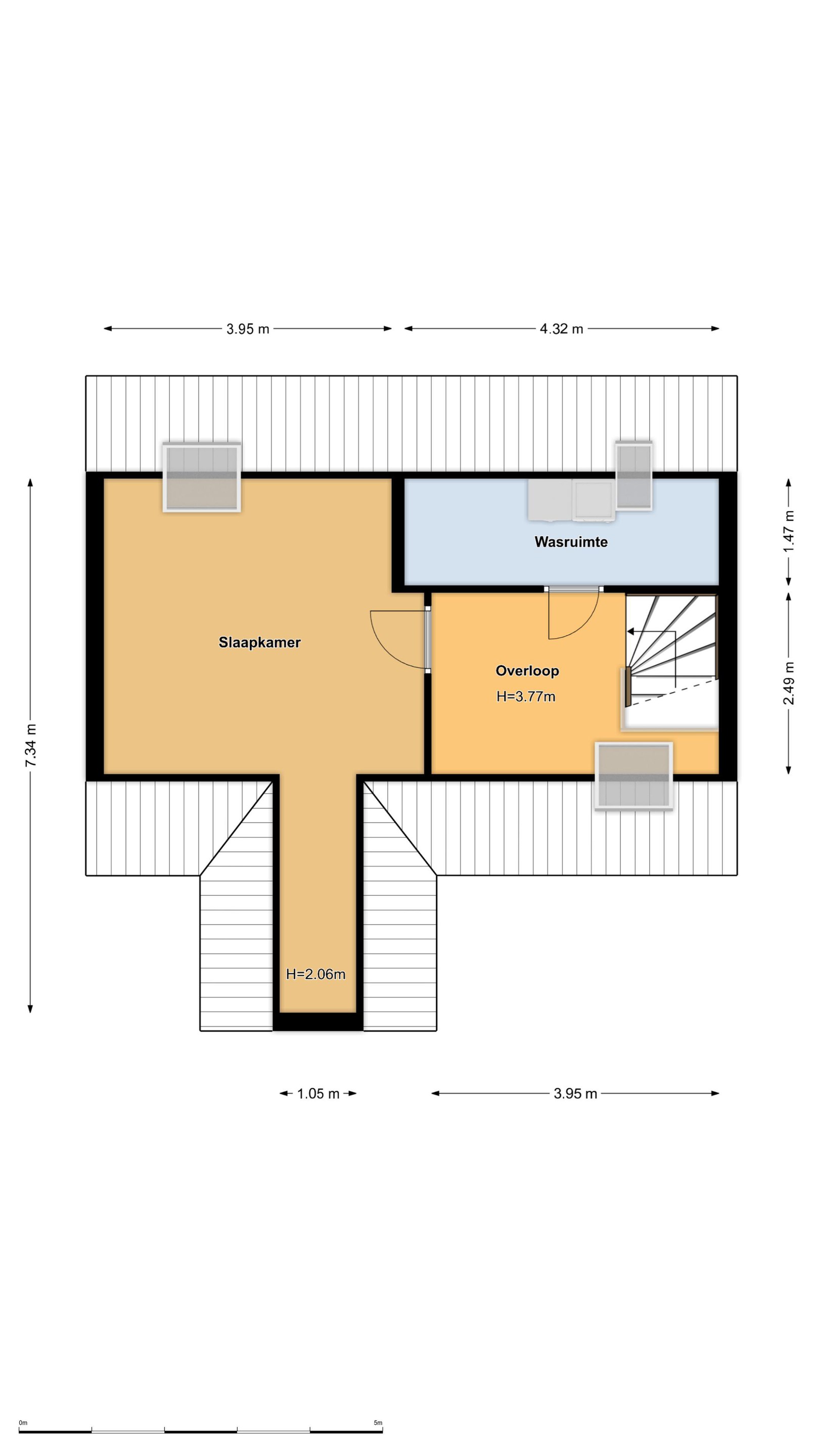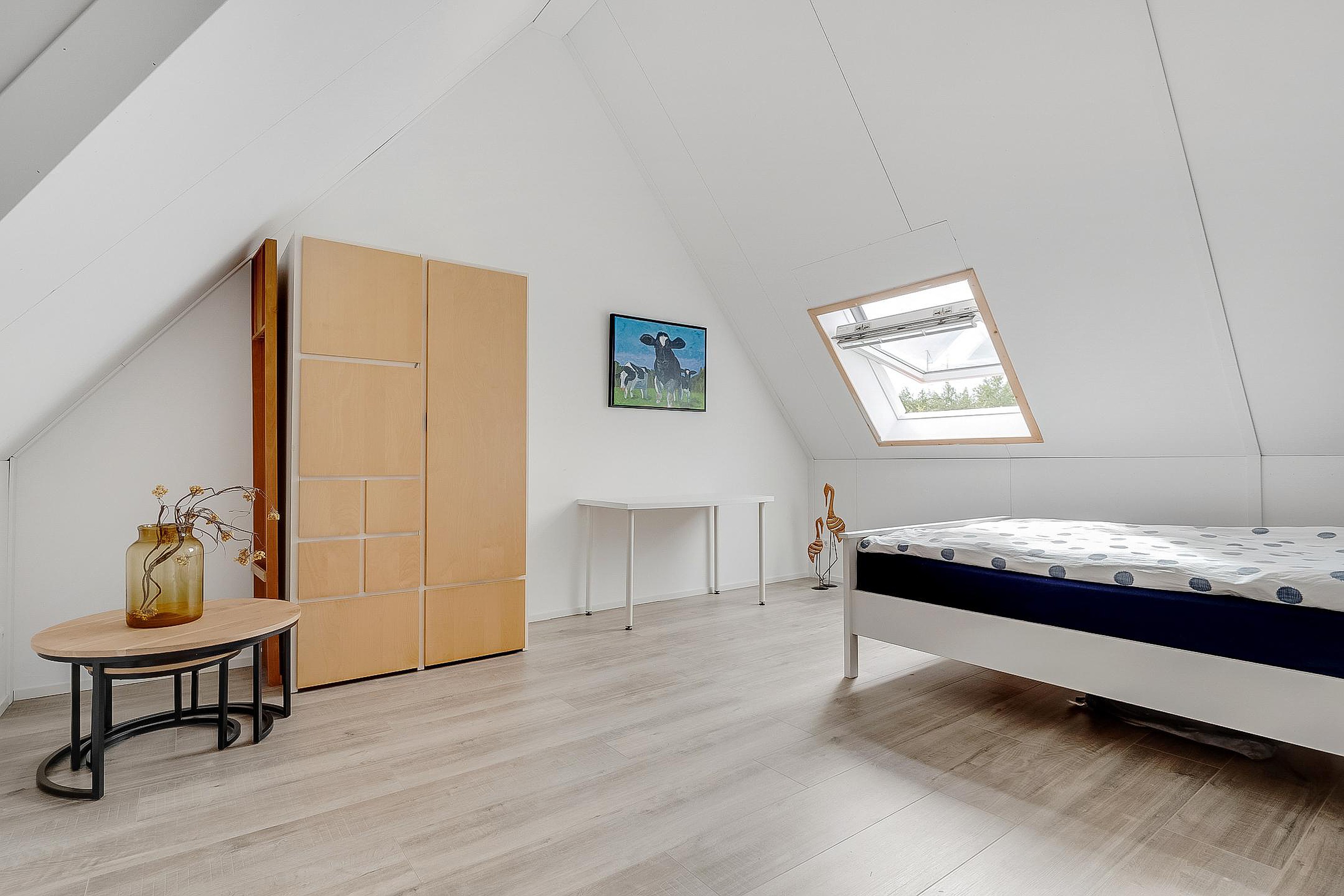 Tweede verdieping Overloop, stookruimte/ wasruimte en een grote zolderslaapkamer.