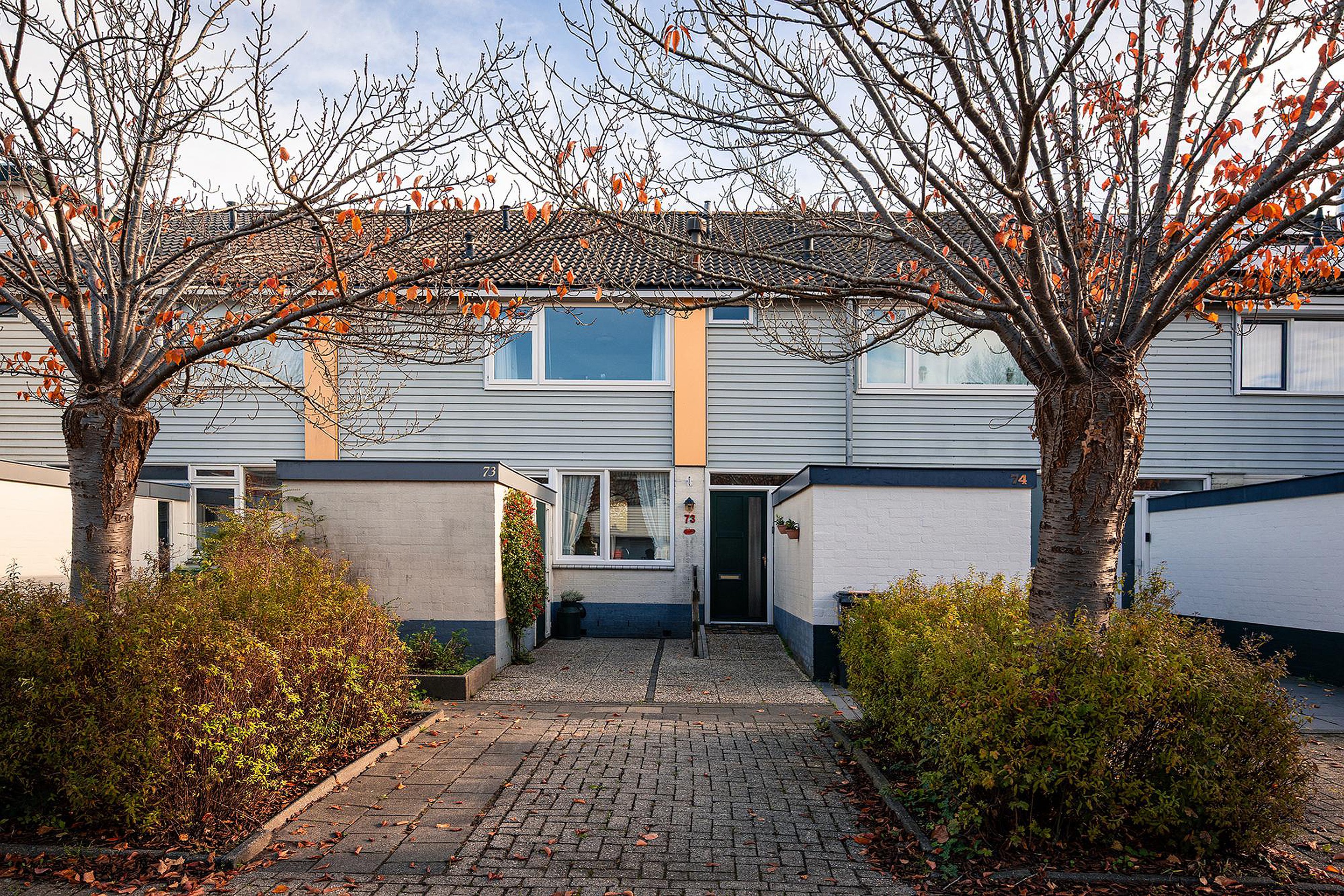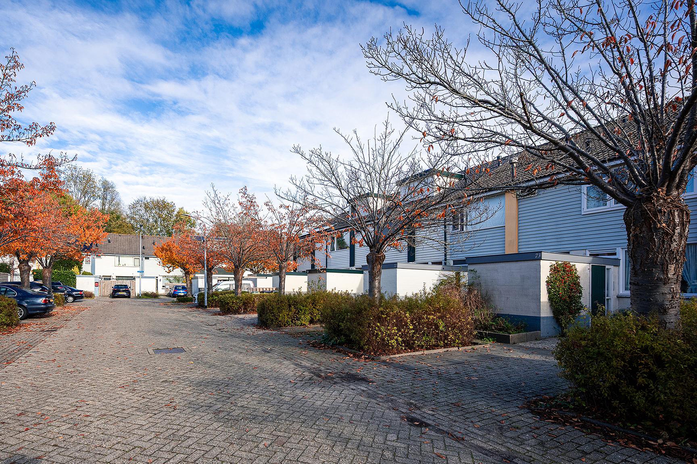Aan de voorzijde een stenen berging en een eigen parkeerplaats. Deze laatste is uit te breiden naar twee (naast of achter elkaar).