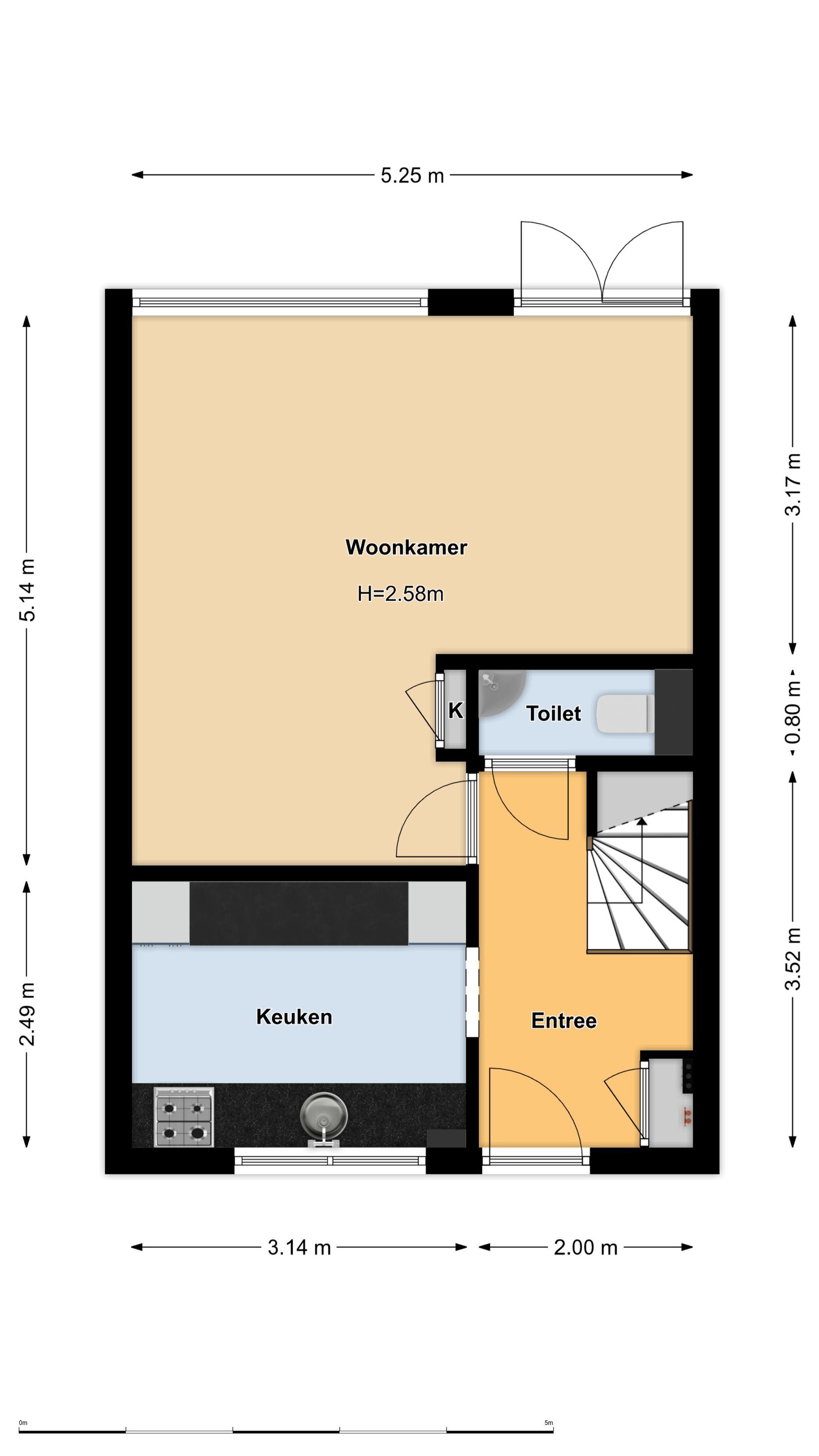 Begane grond Entree, hal, garderobe, meterkast, keuken, toilet en deur naar de woonkamer.