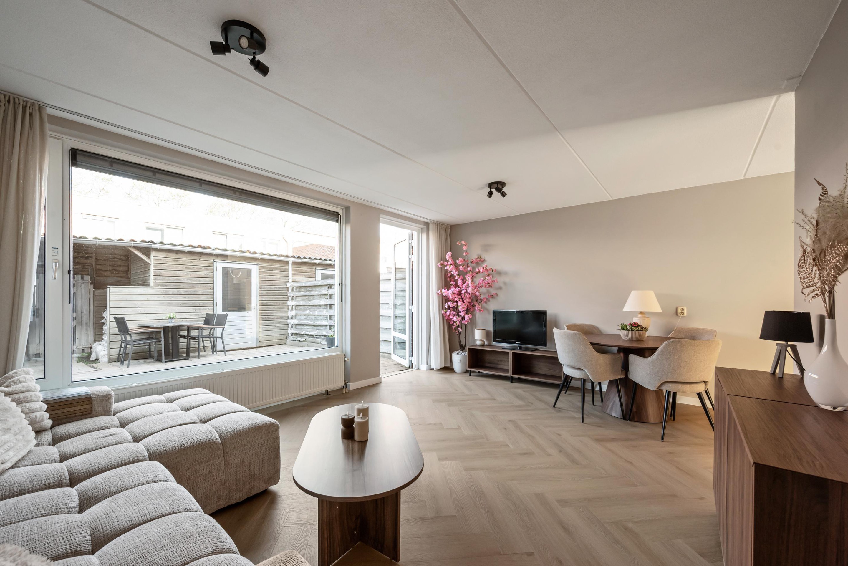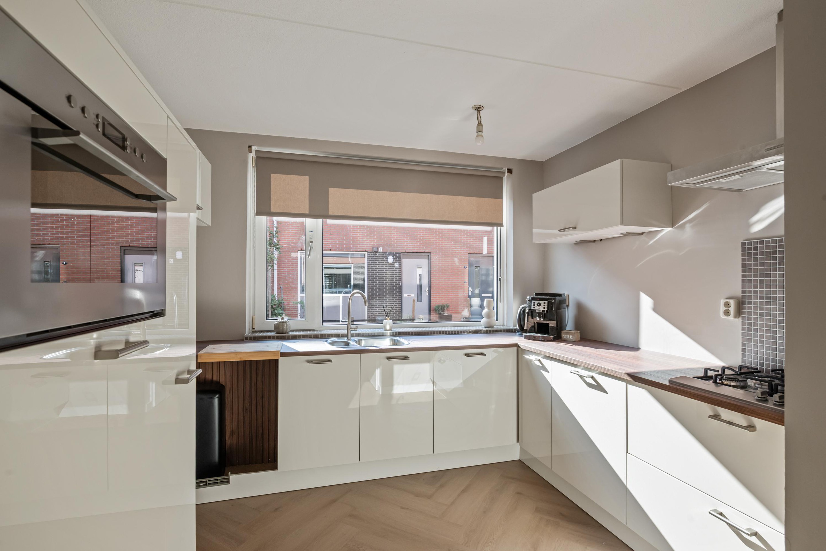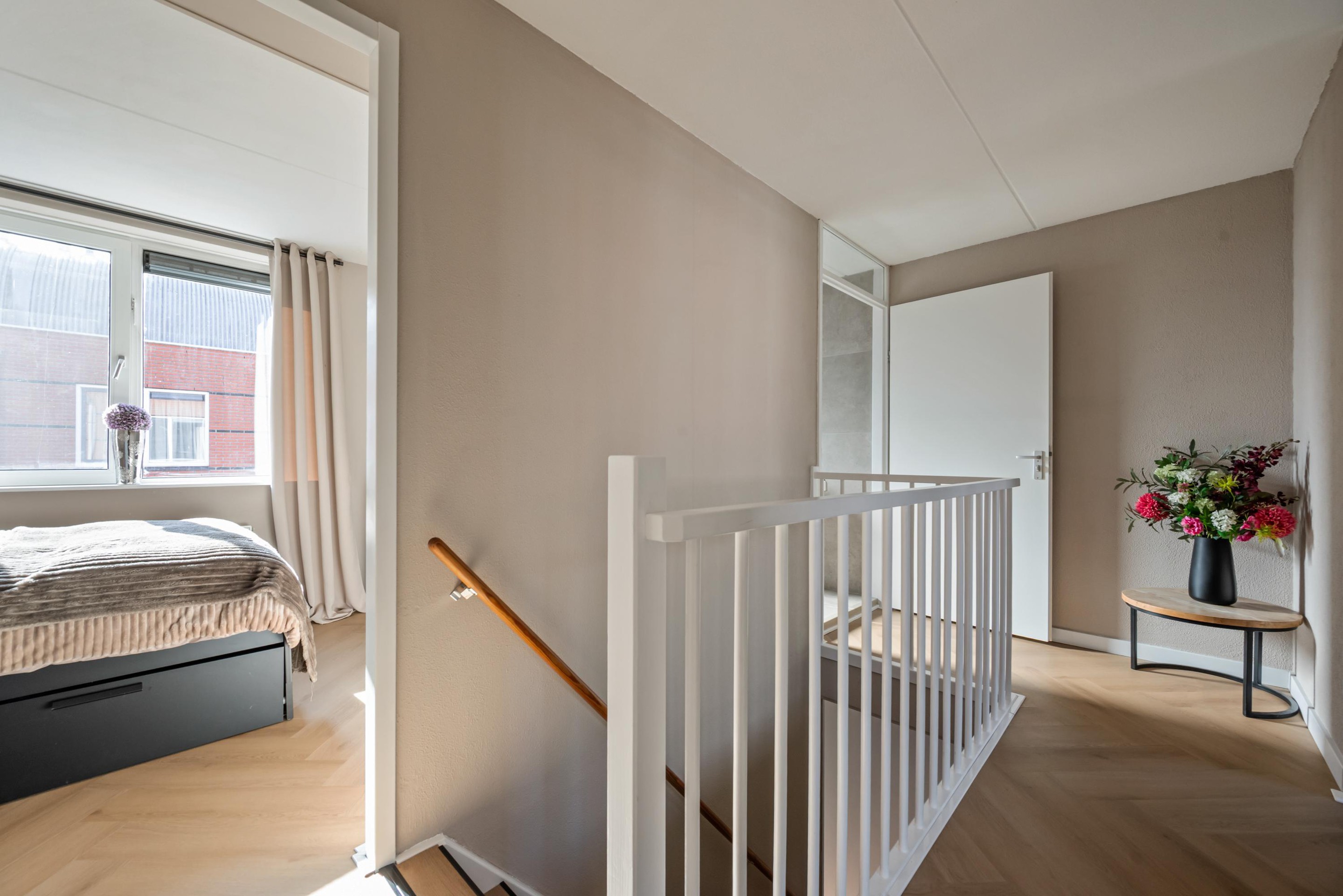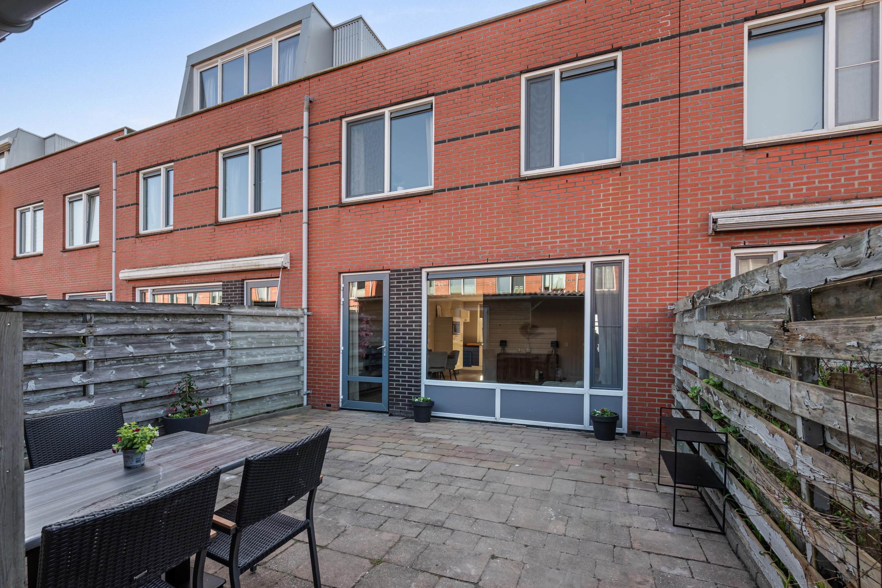- Buitenleven: De achtertuin ligt ideaal op het noordwesten. Dit betekent dat je na een dag werken nog heerlijk van de middag- en avondzon kunt genieten. De tuin beschikt over een praktische houten schuur voor de fietsen en een handige poort achterom.