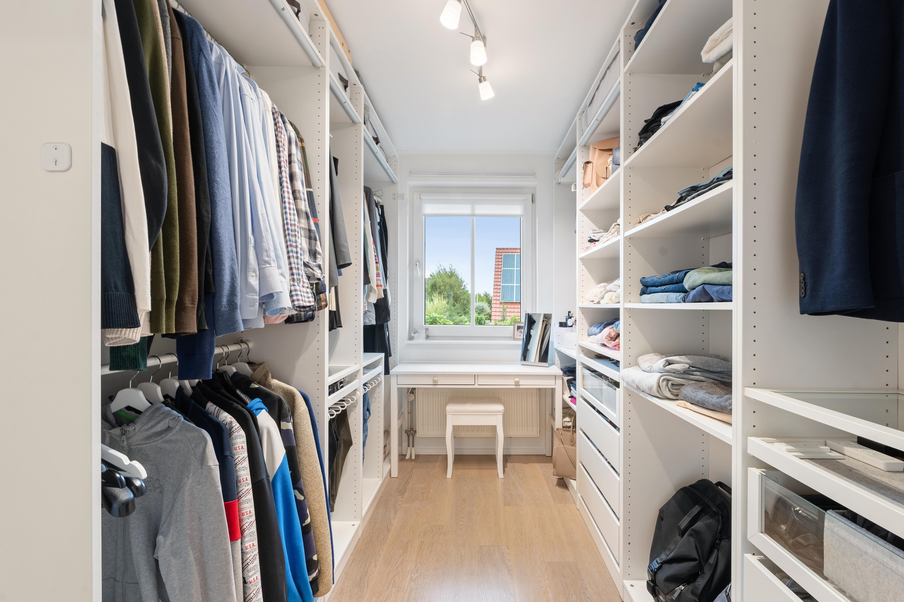 A spacious attic room with a dormer window at the front, storage space behind the knee walls, and a separate utility room. Equipped with a brand-new central heating system (Intergas, 2024), mechanical ventilation (2024), and connections for washing machine and dryer. There is as well a lot of inbuilt closet space.