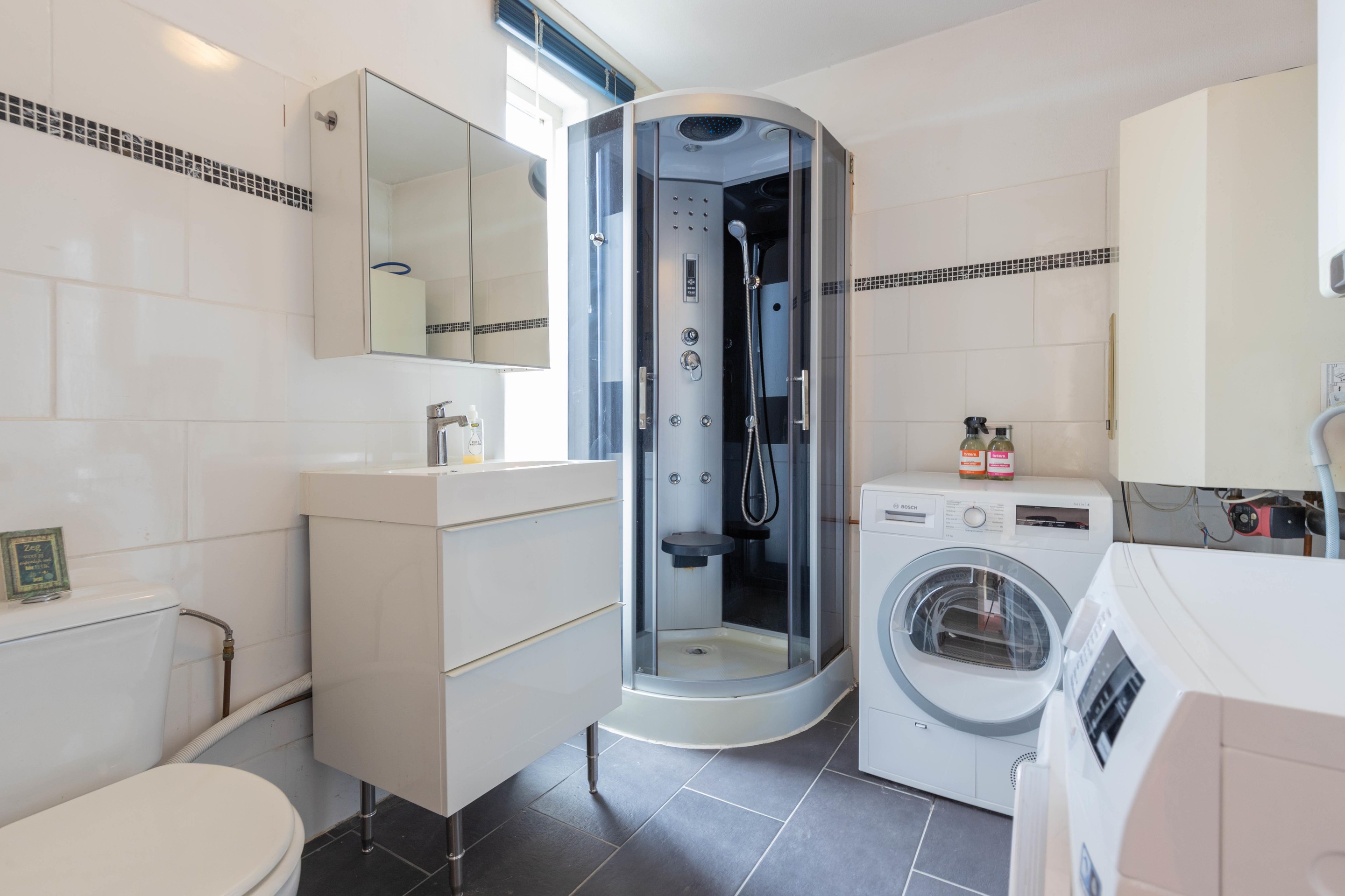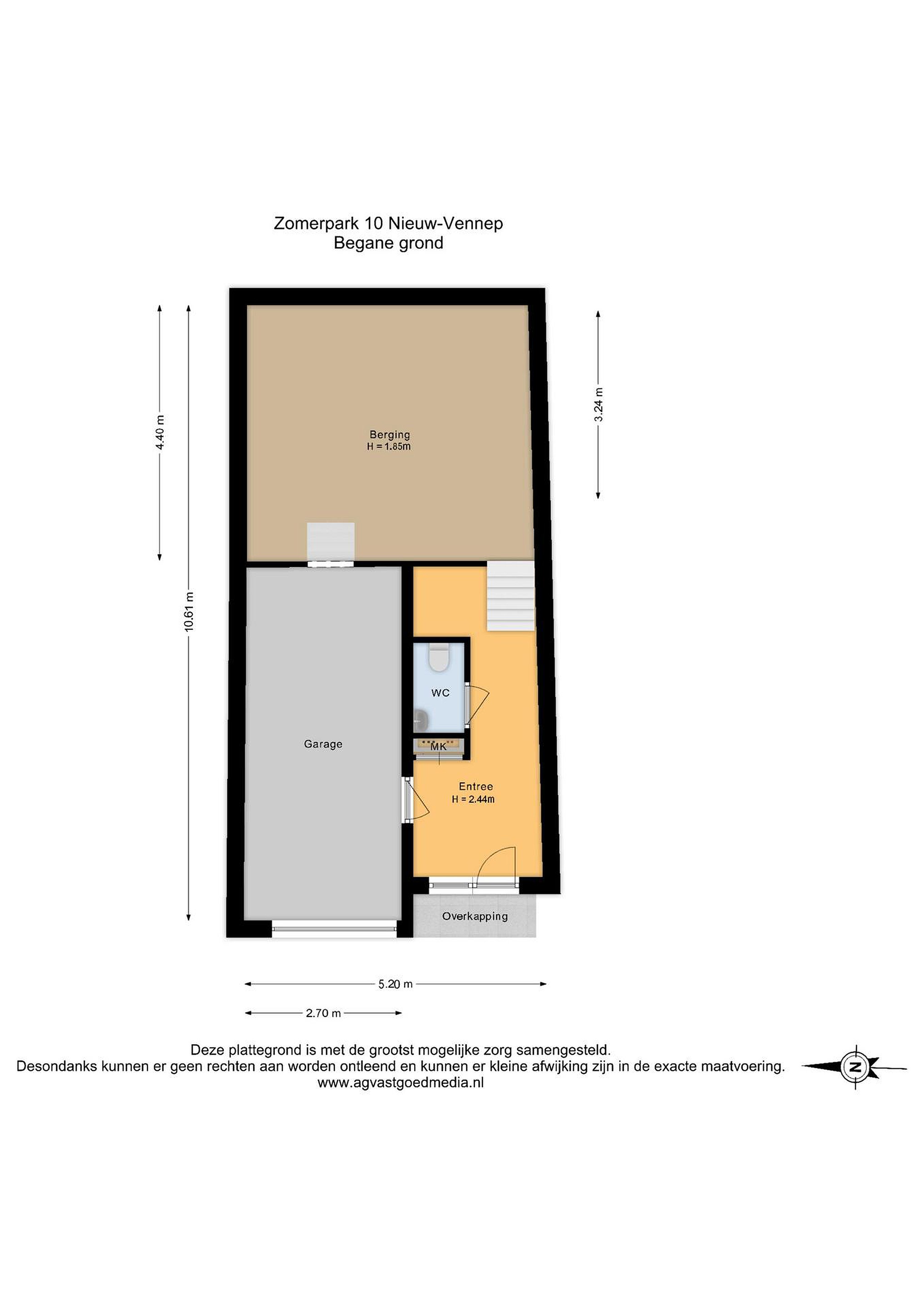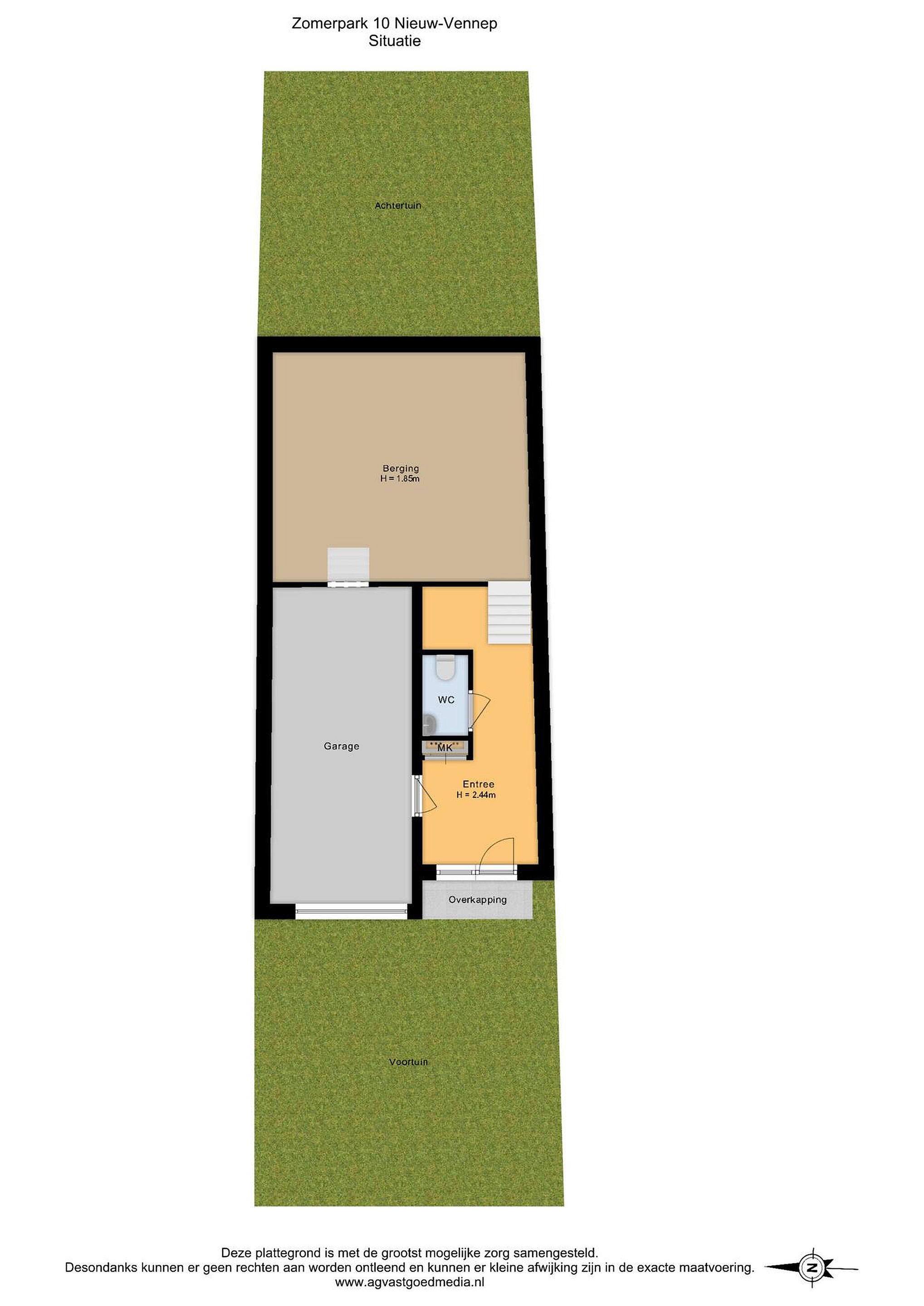 Begane grond Voor de deur kunt u op eigen terrein twee auto's parkeren en is er toegang tot de garage (elektrisch kanteldeur). Aan de achterzijde van de garage is de kelder.