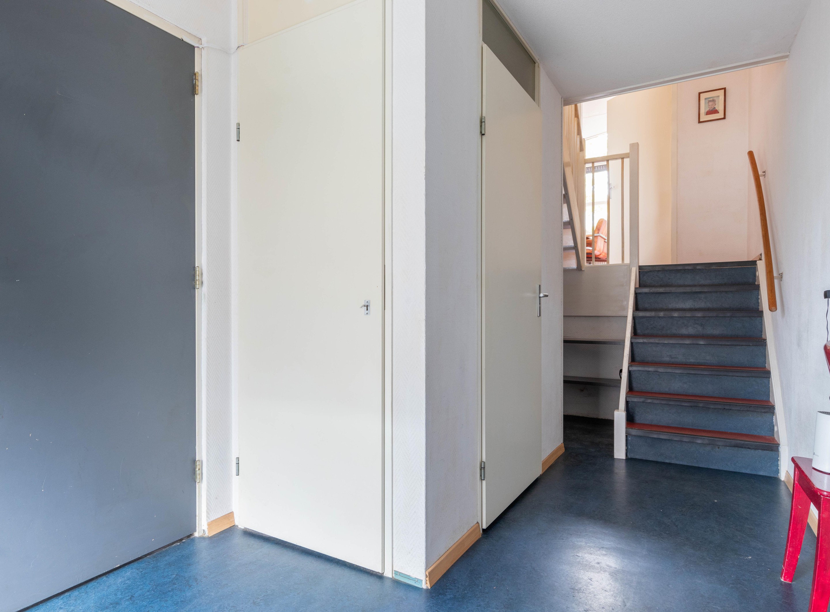 Via de entree komt u binnen in een ruime hal. De hal geeft toegang tot de inpandige garage, toiletruimte en trapopgang naar het volgende level, de keuken.