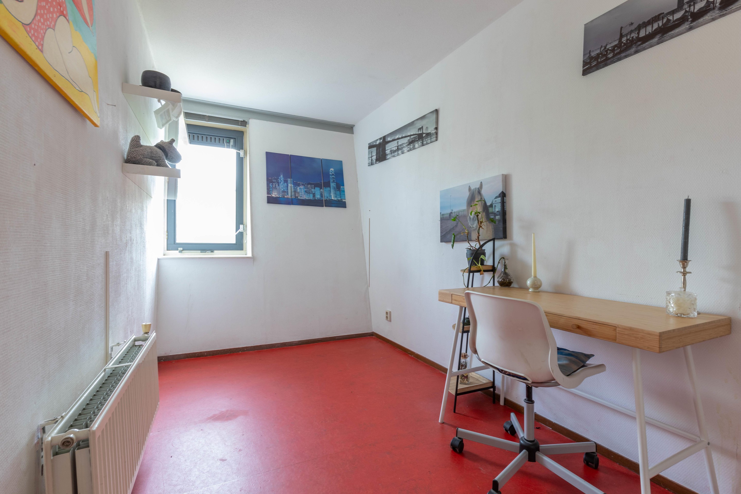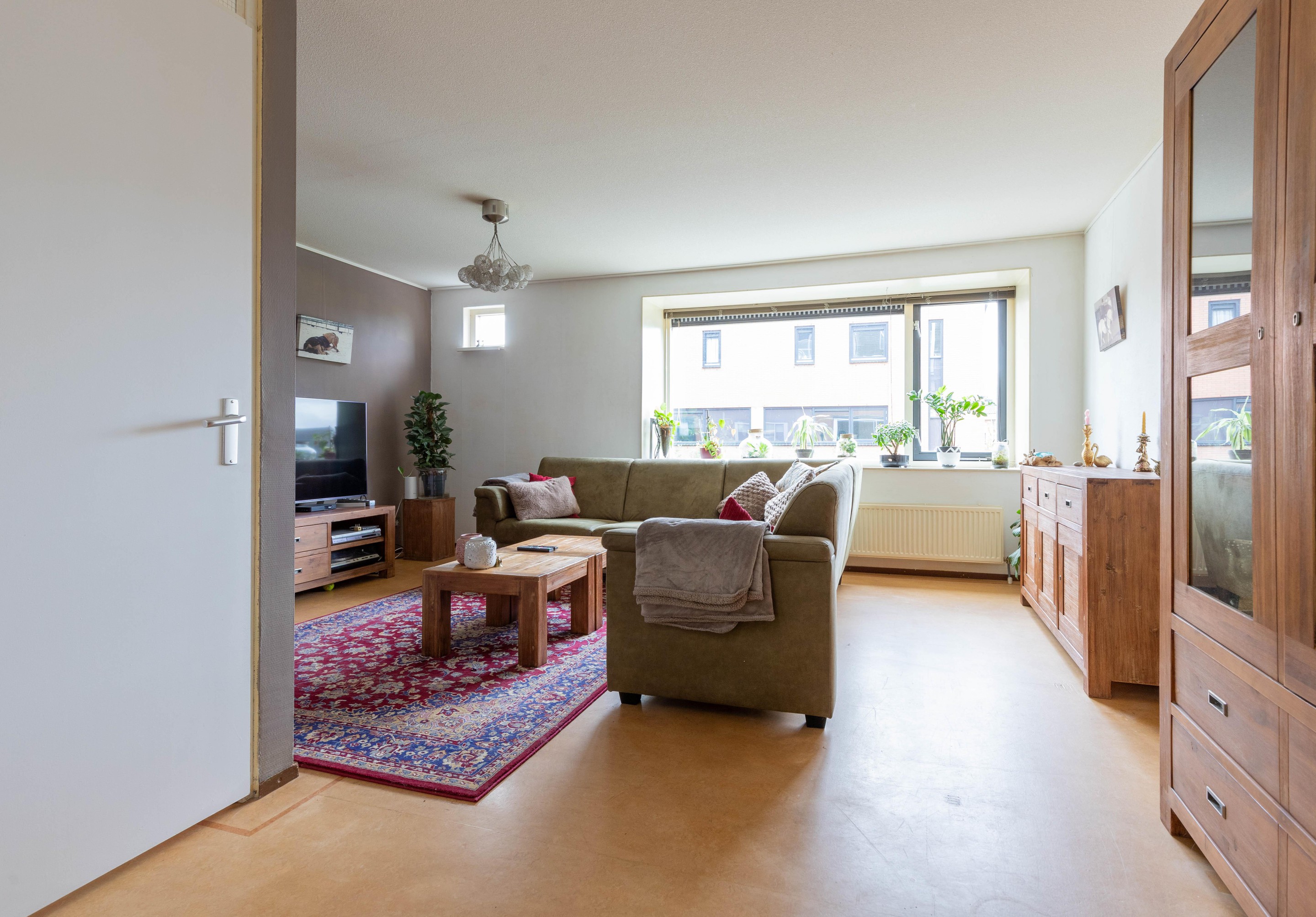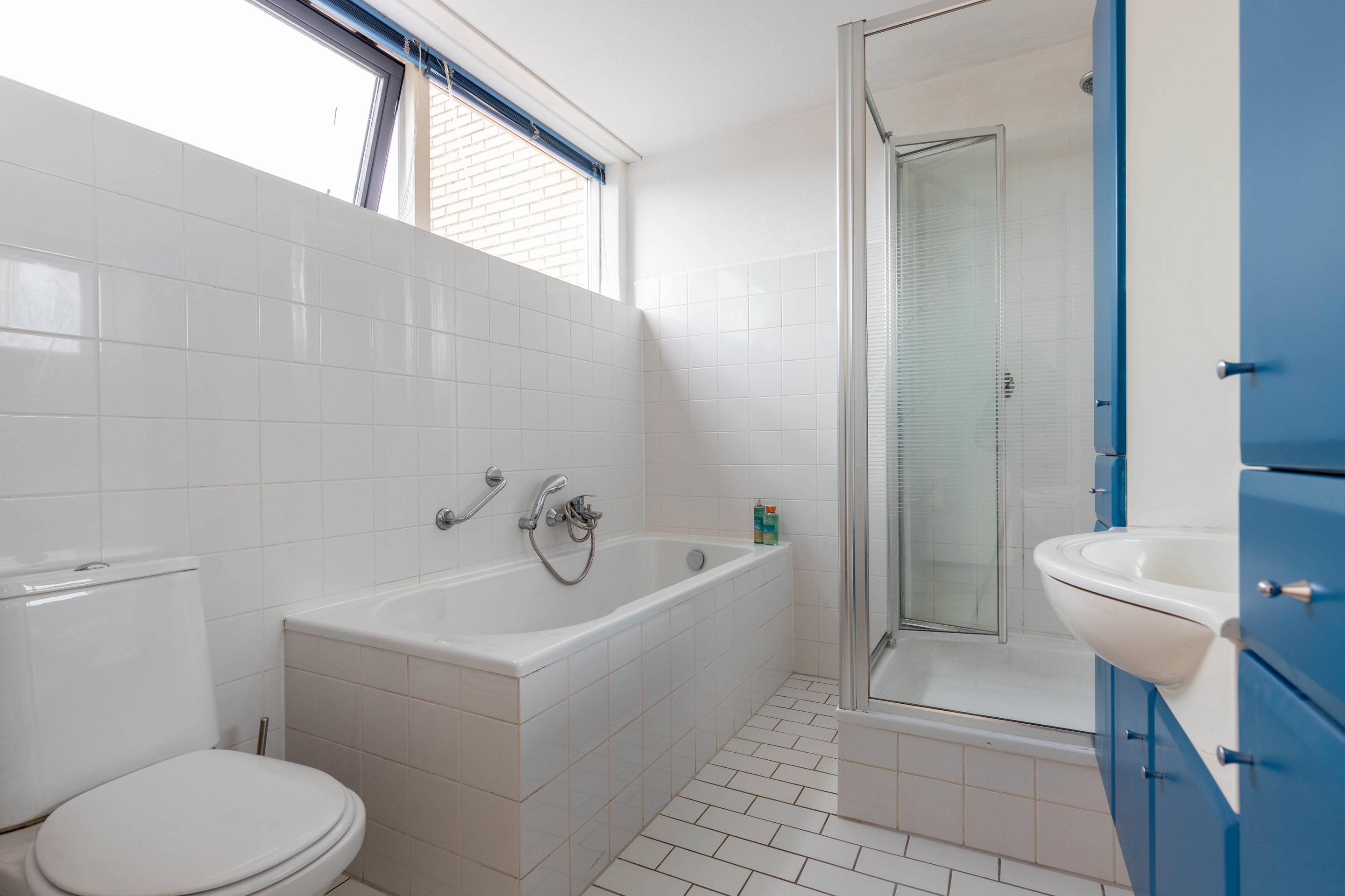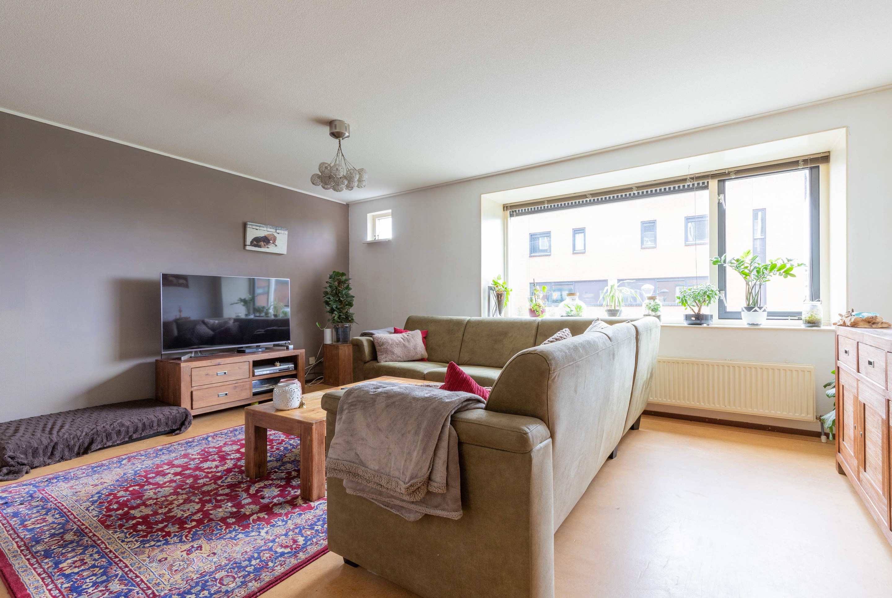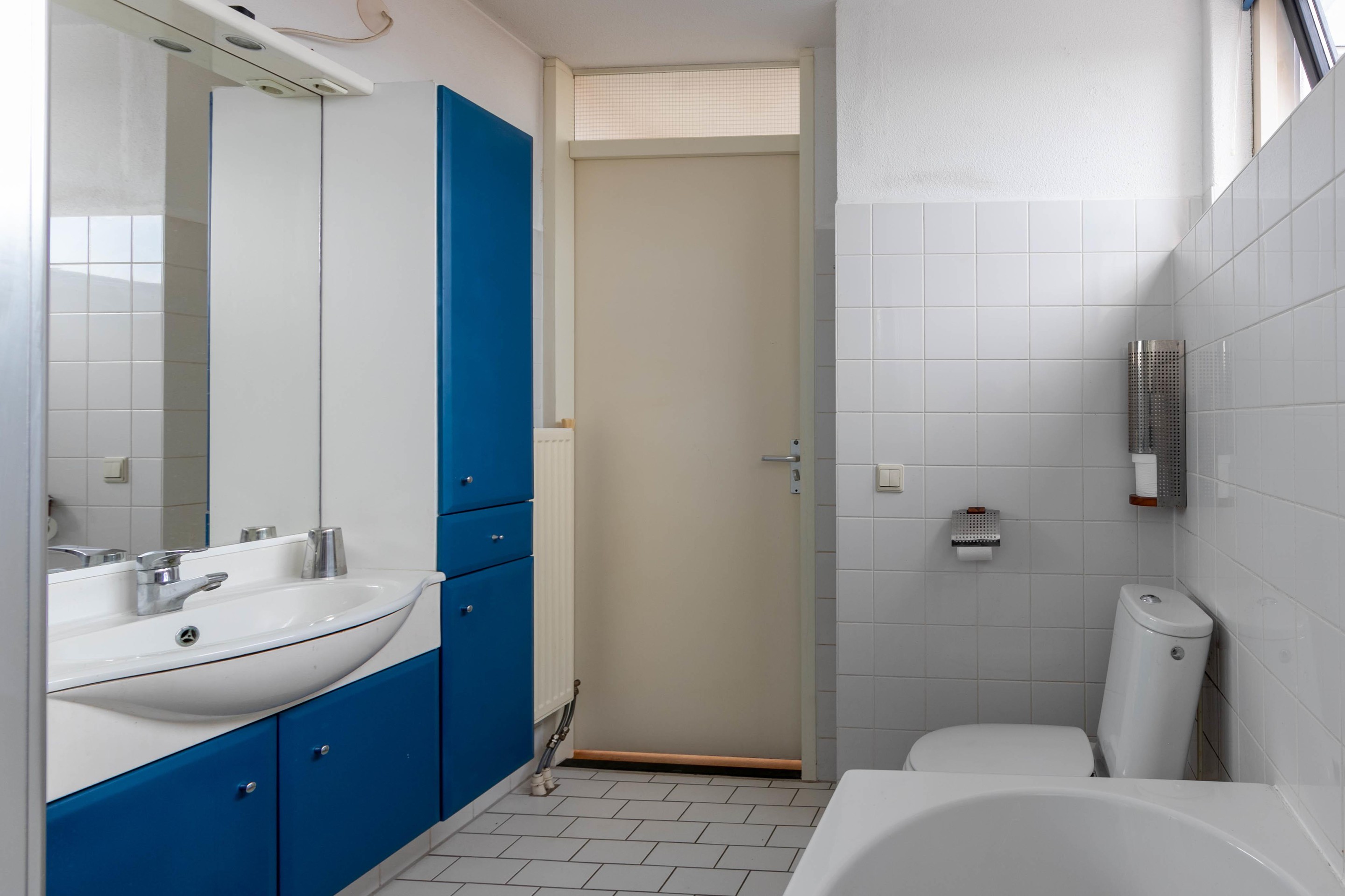 Eerste verdieping De eerste verdieping is opgesplitst in twee levels, de keuken en de woonkamer. De keuken is met recht een woonkeuken, beschik over 5 pits gastoestel, vaatwasser en een koel-/vriescombinatie. Er is toegang tot het rustig gelegen terras aan de achterzijde. Vanuit de keuken is een doorkijkje omhoog naar de woonkamer. De L-vormige woonkamer is ruim en licht en geeft op zijn beurt ook weer een doorkijk naar de hoger gelegen werkkamer.