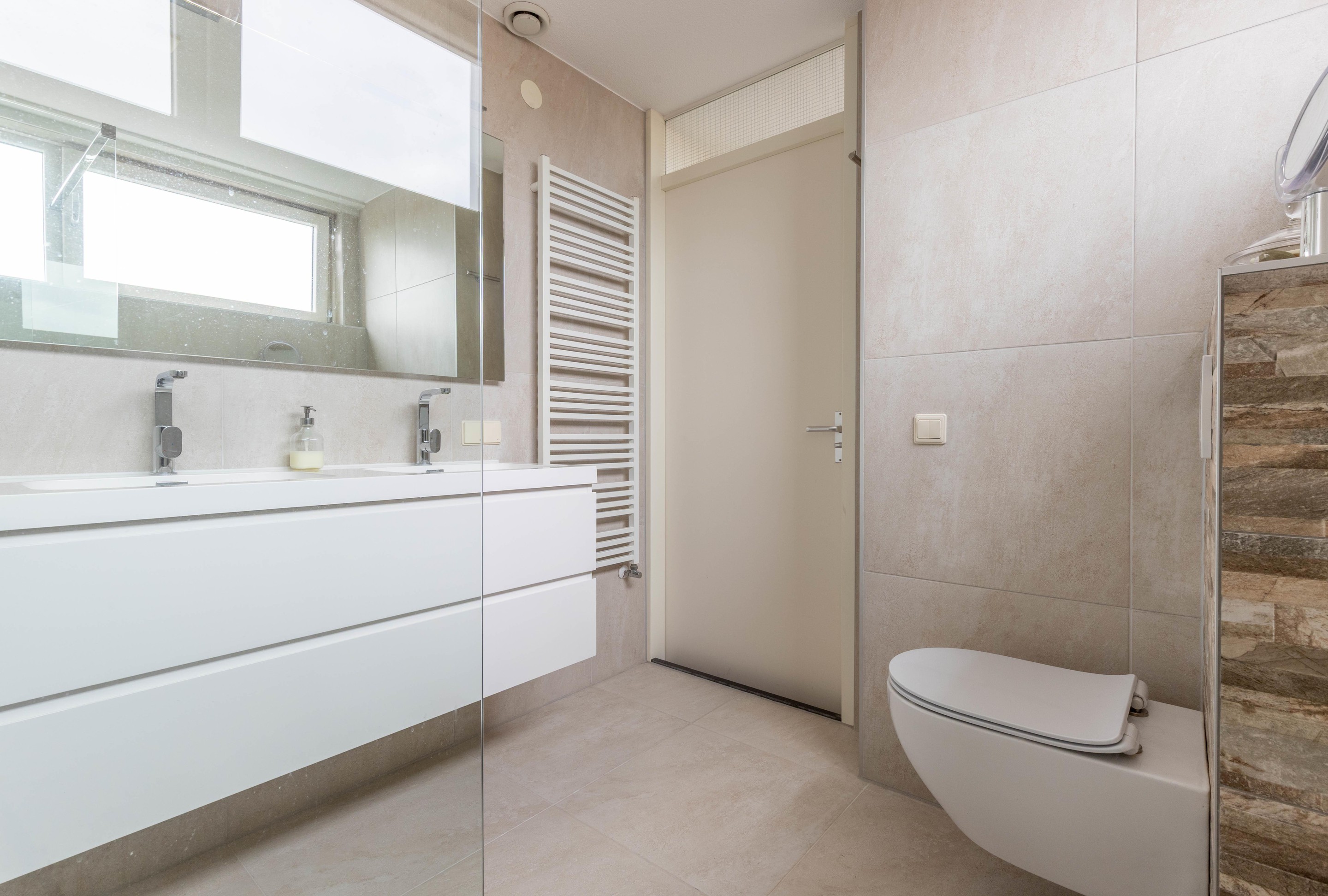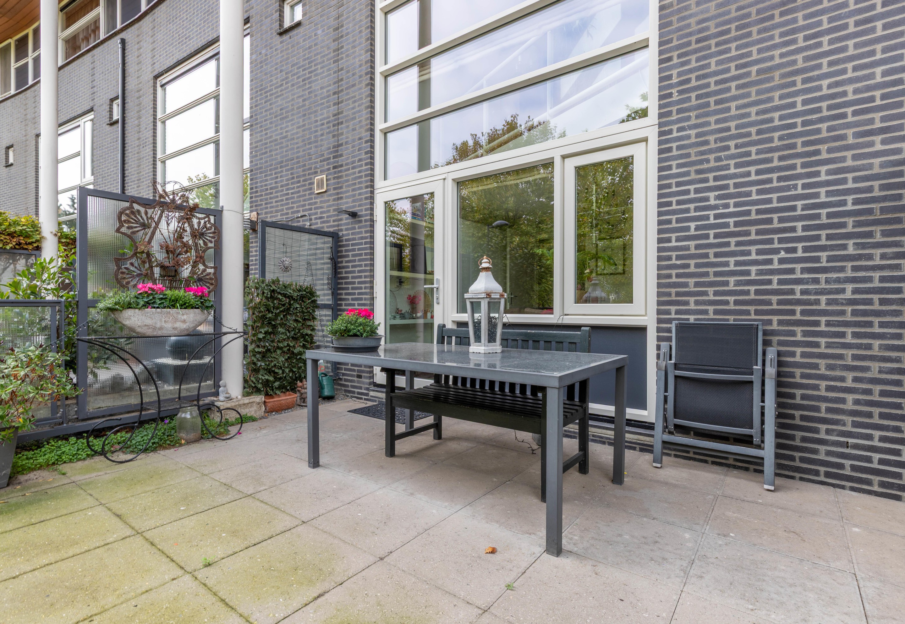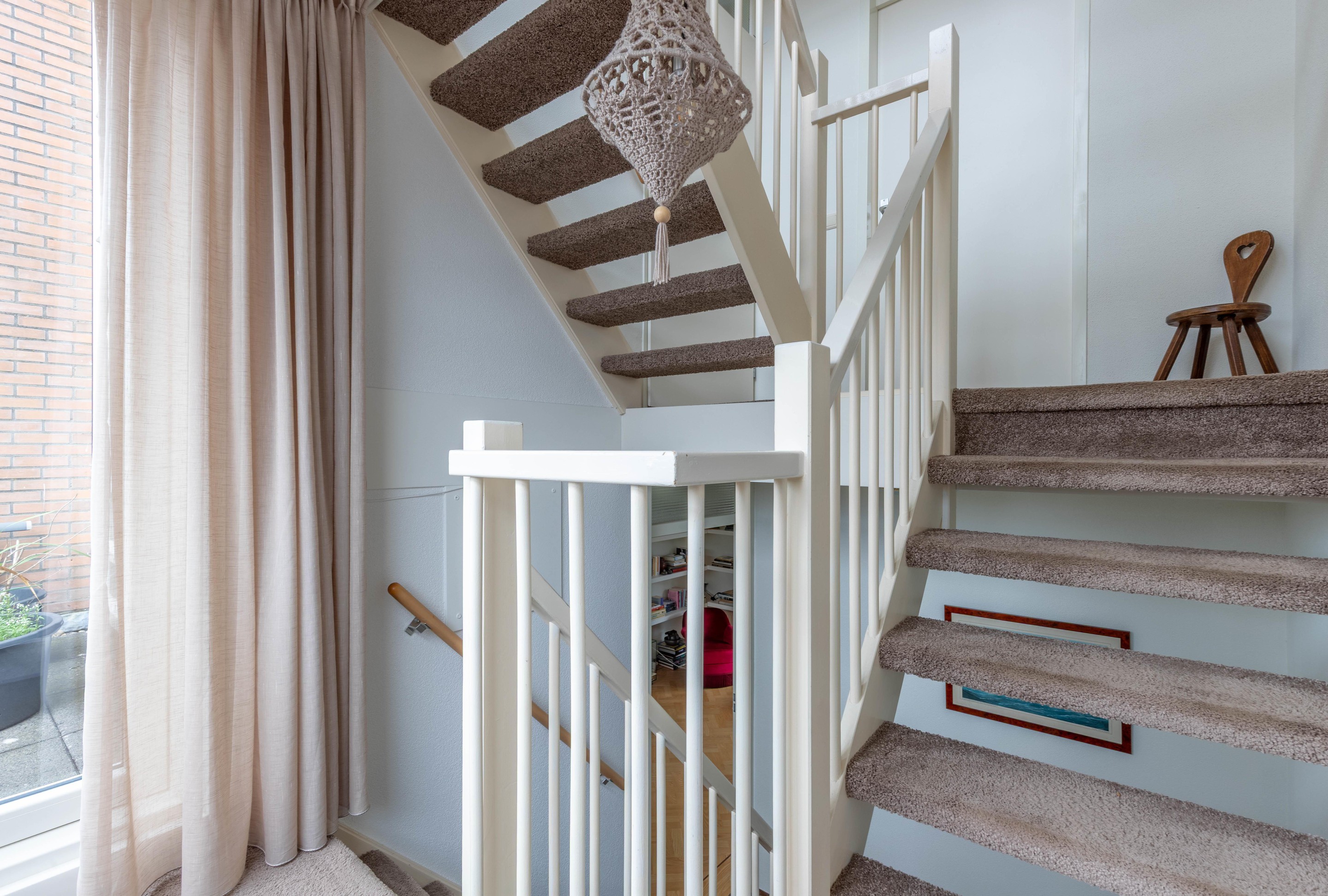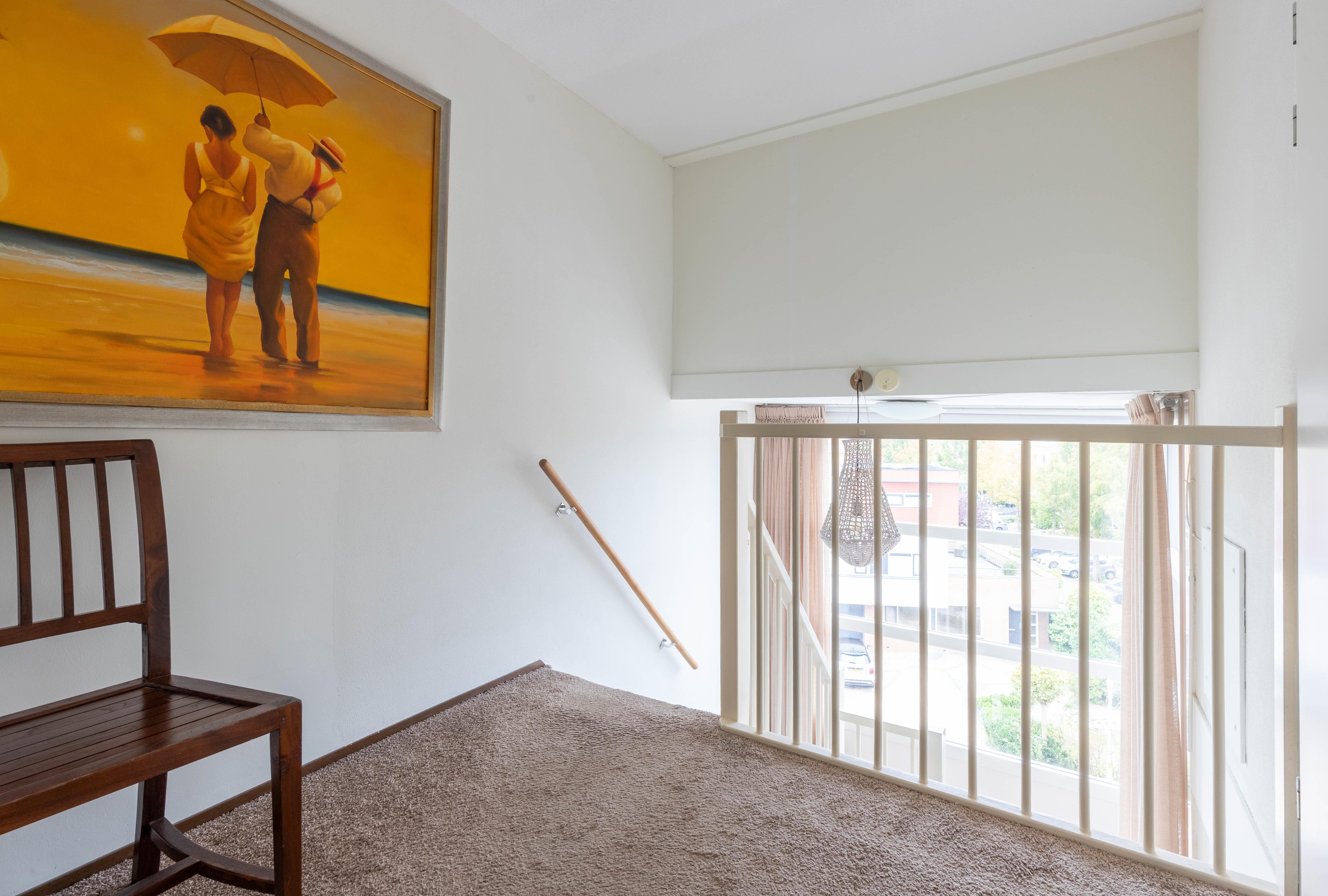 Via het trappenhuis komt u op de volgende laag, het dakterras aan de voorzijde van de woning. Deze ligt op het westen en dus heerlijk op de zon.