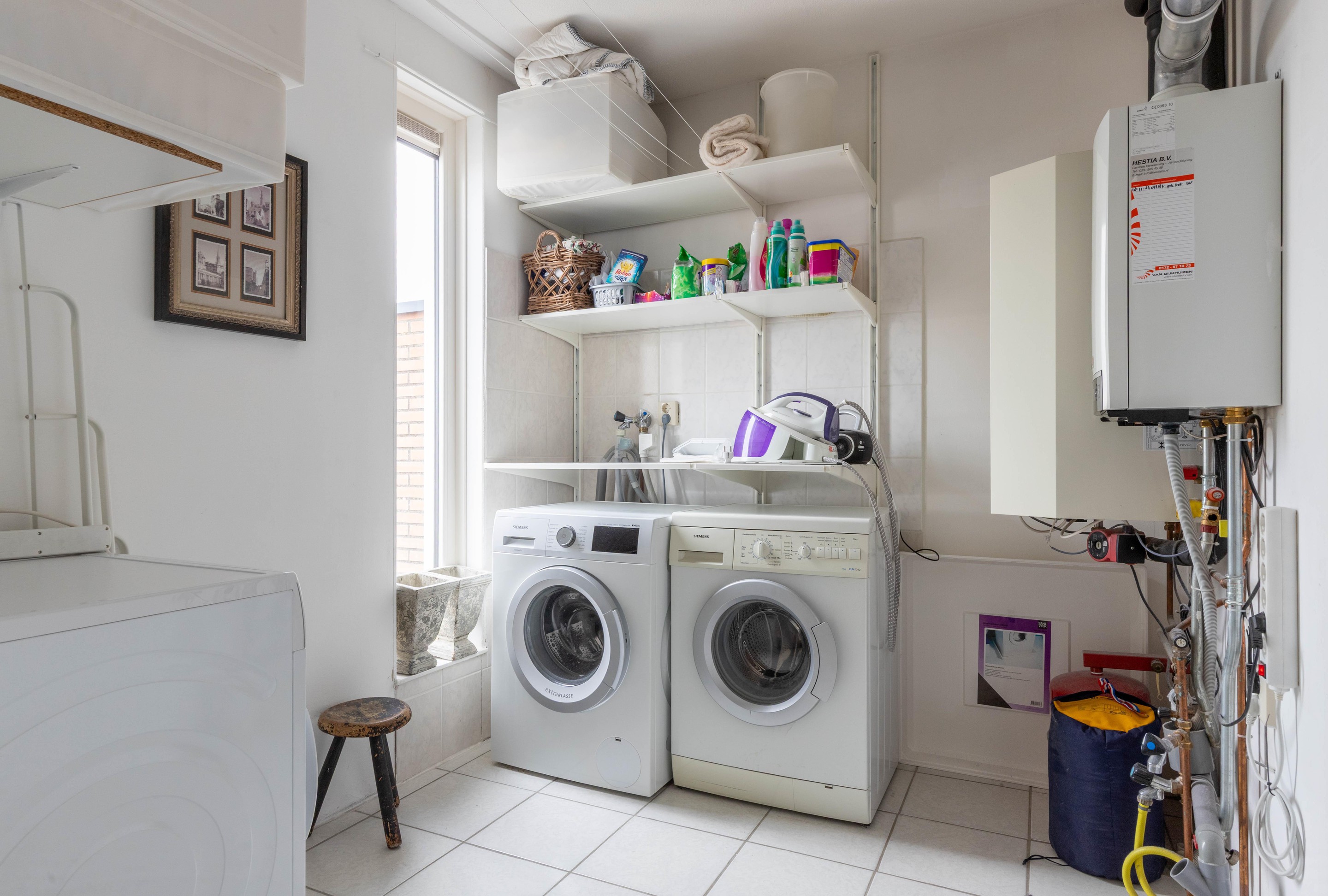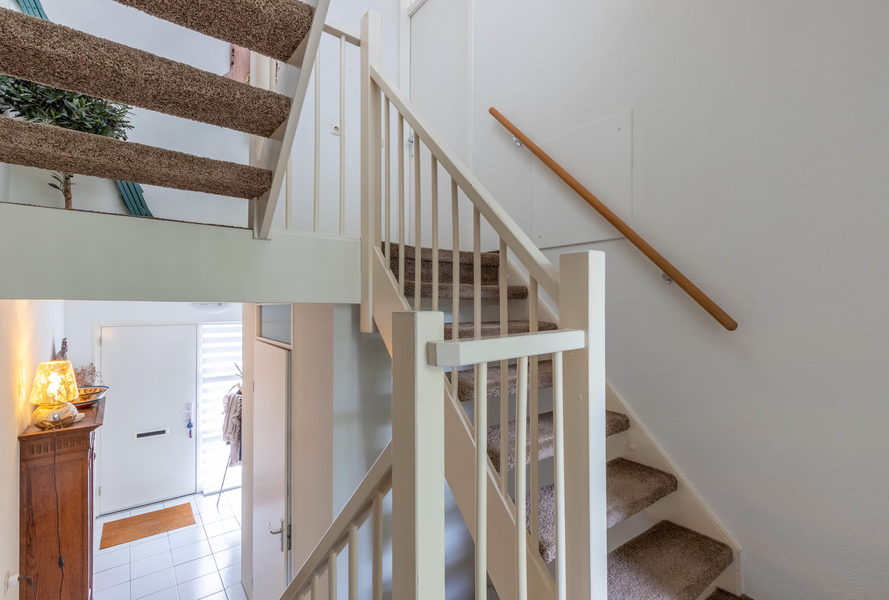 Begane grond Voor de woning is er op eigen terrein ruimte voor om twee auto's parkeren. Via de entree komt u binnen in de ruime hal. De hal geeft toegang tot de inpandige berging met achterliggende kelderruimte, meterkast, toiletruimte en trapopgang naar het volgende level, de woonkeuken.