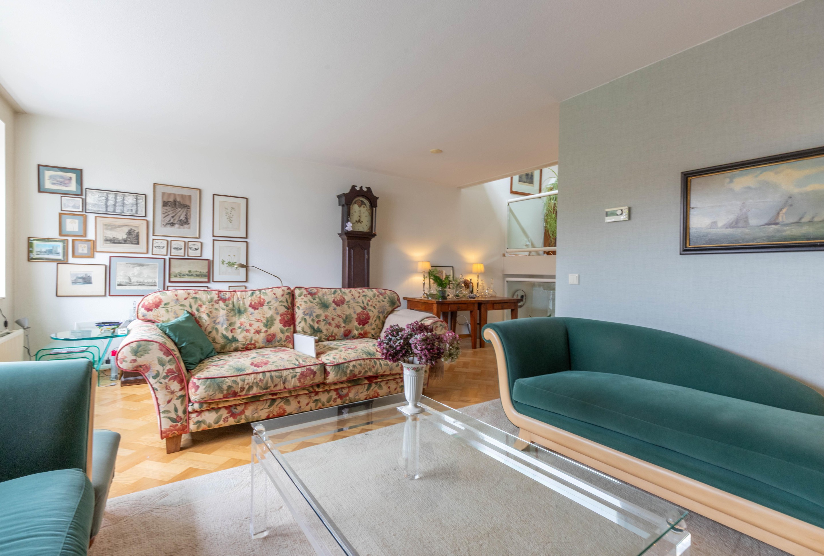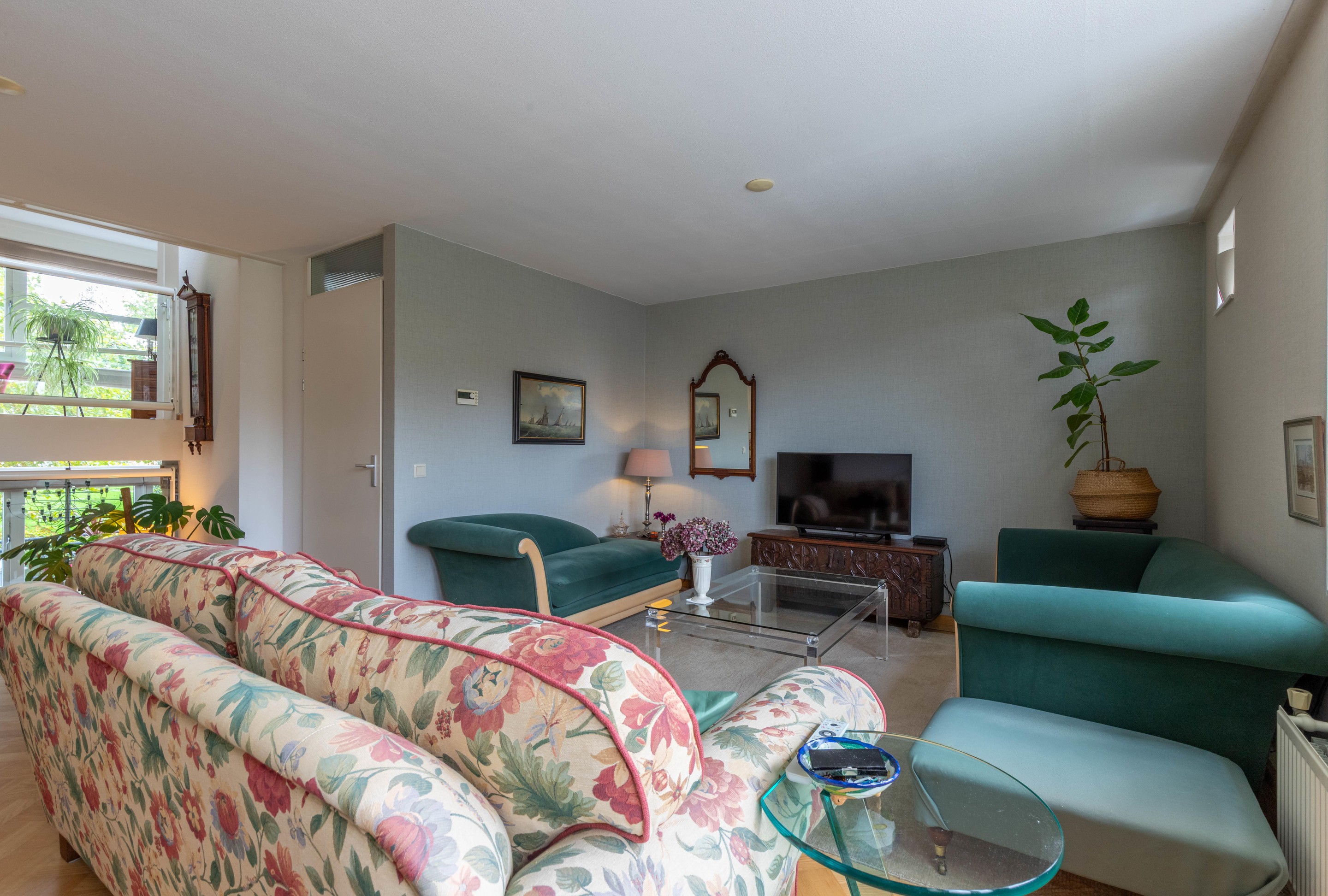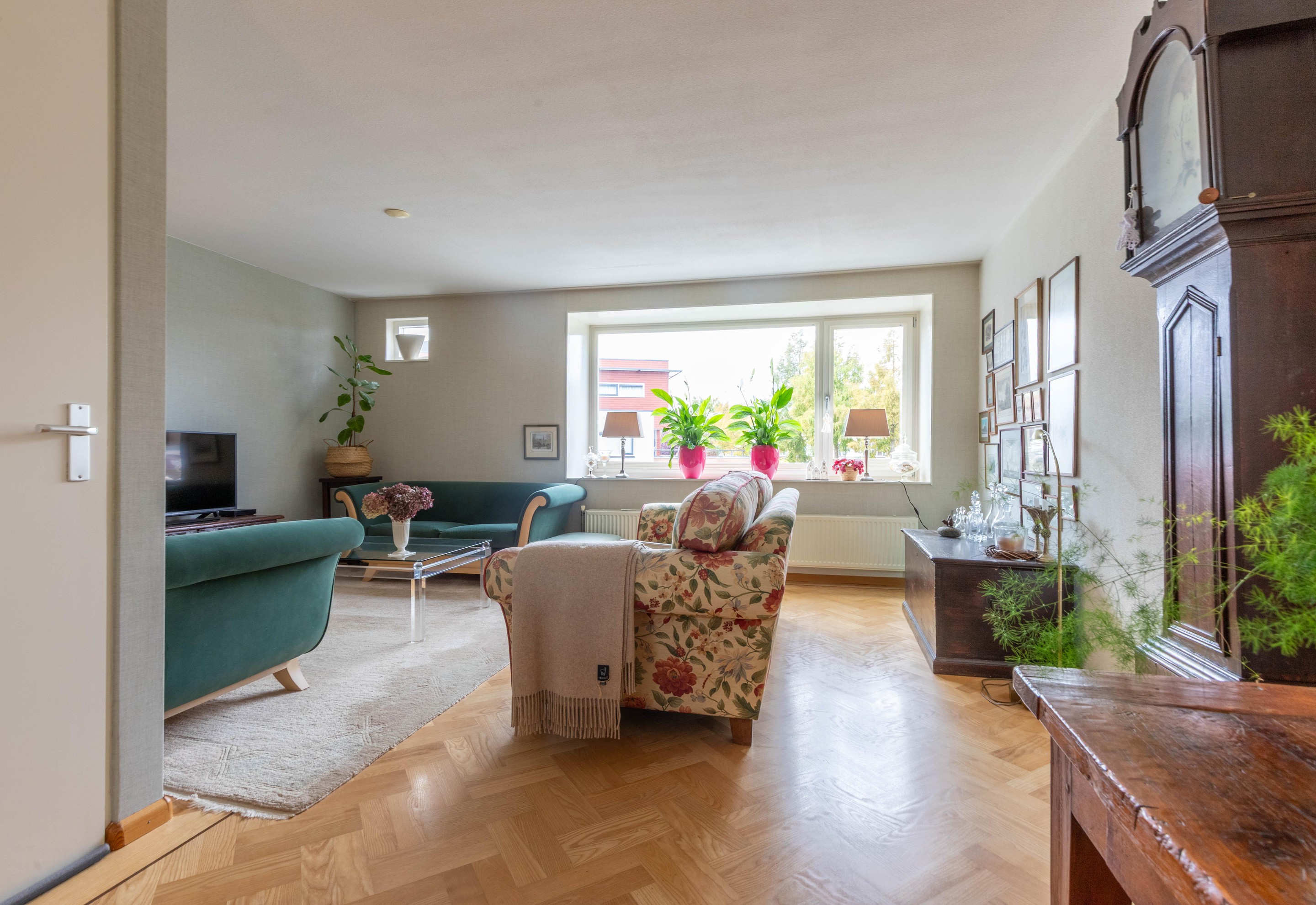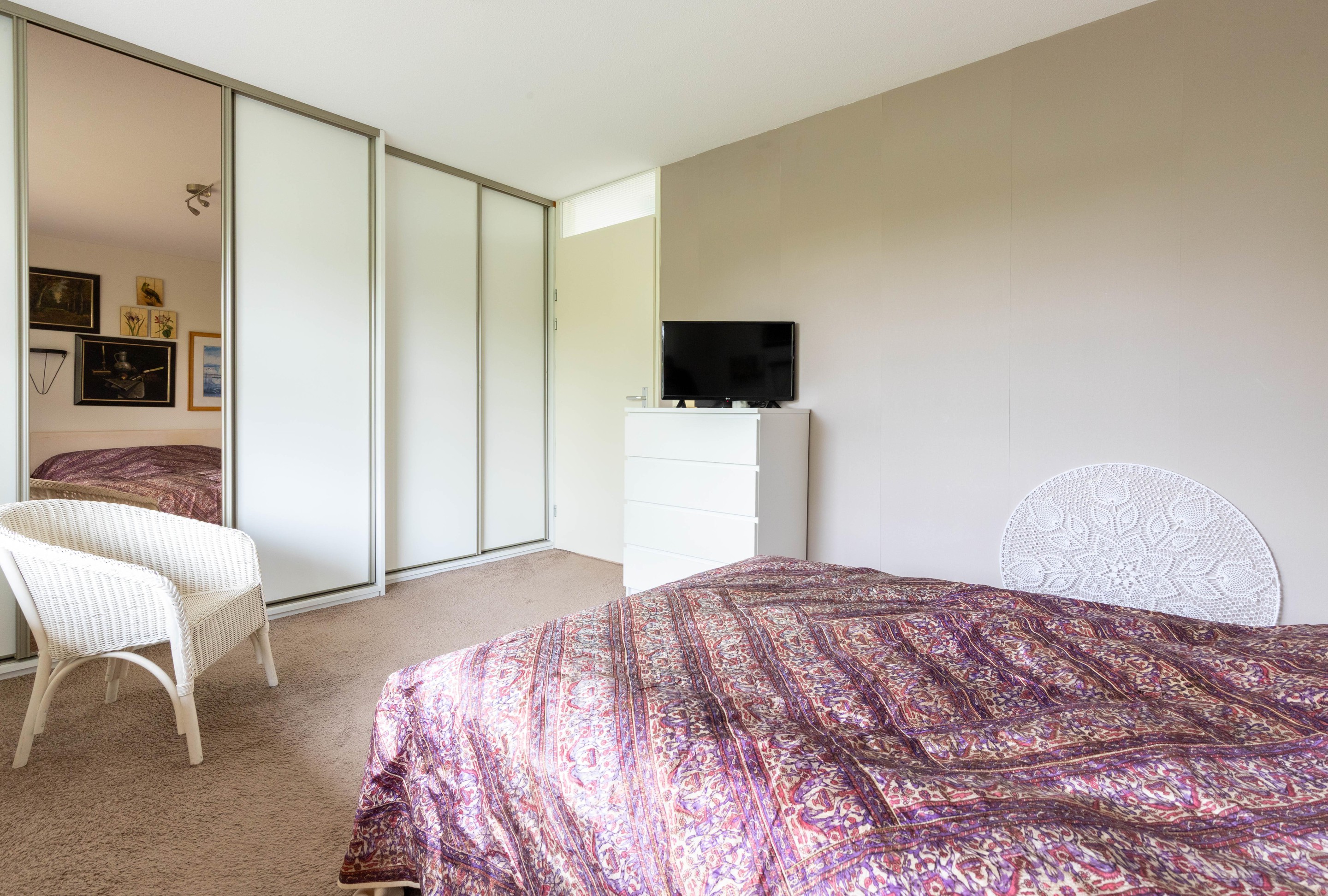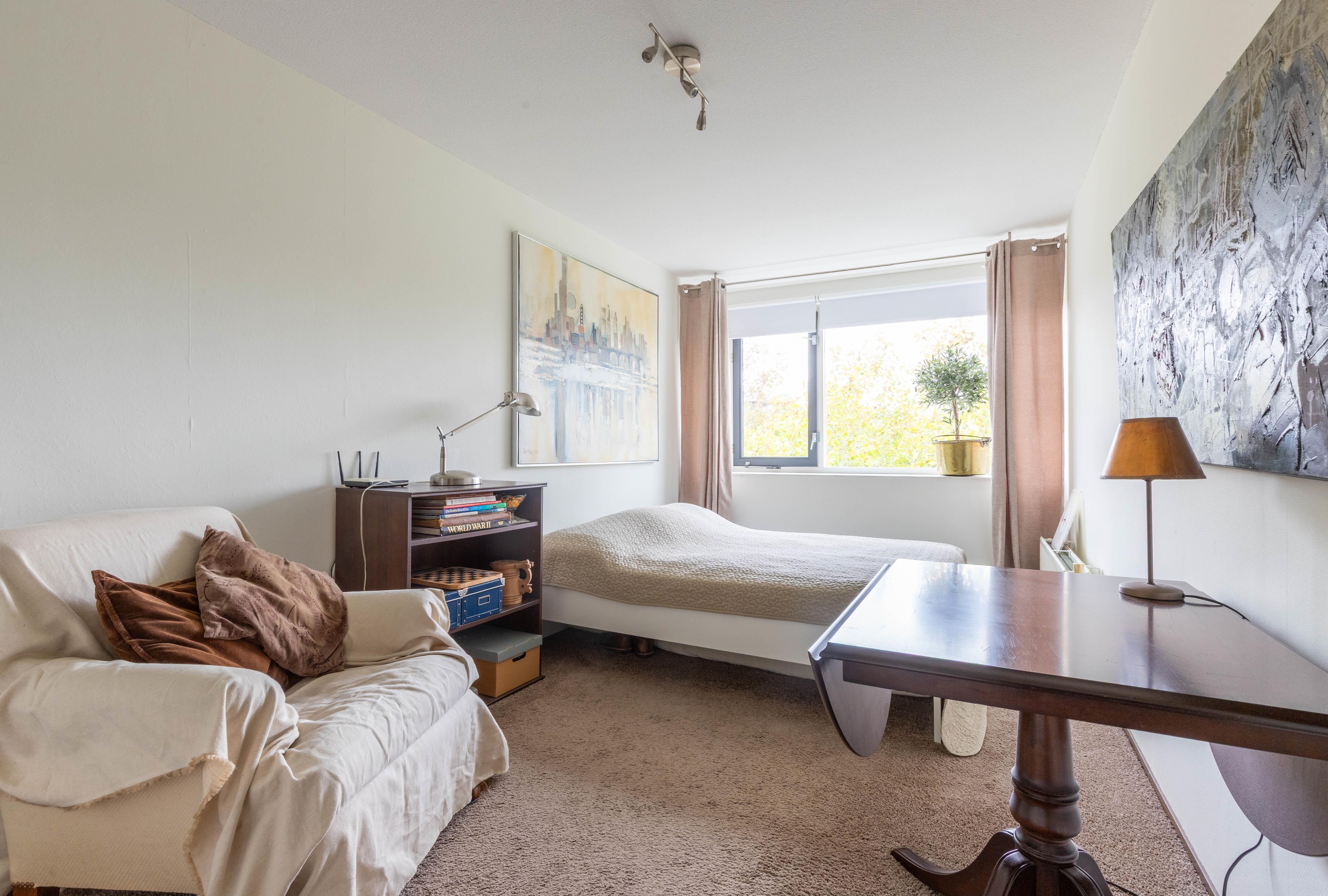 Tweede verdieping De videkamer schuin boven de woonkamer is een praktische ruimte. Inzetbaar als televisiekamer, werkkamer of eventueel te verbouwen naar slaapkamer. De kamer heeft aan de achterzijde connectie met de ondergelegen keuken. Vanuit deze kamer heeft u mooi uitzicht over park achter de woning. Ook deze kamer heeft een houten vloer in visgraat motief. De op de foto's aanwezige piano is overigens ter overname.