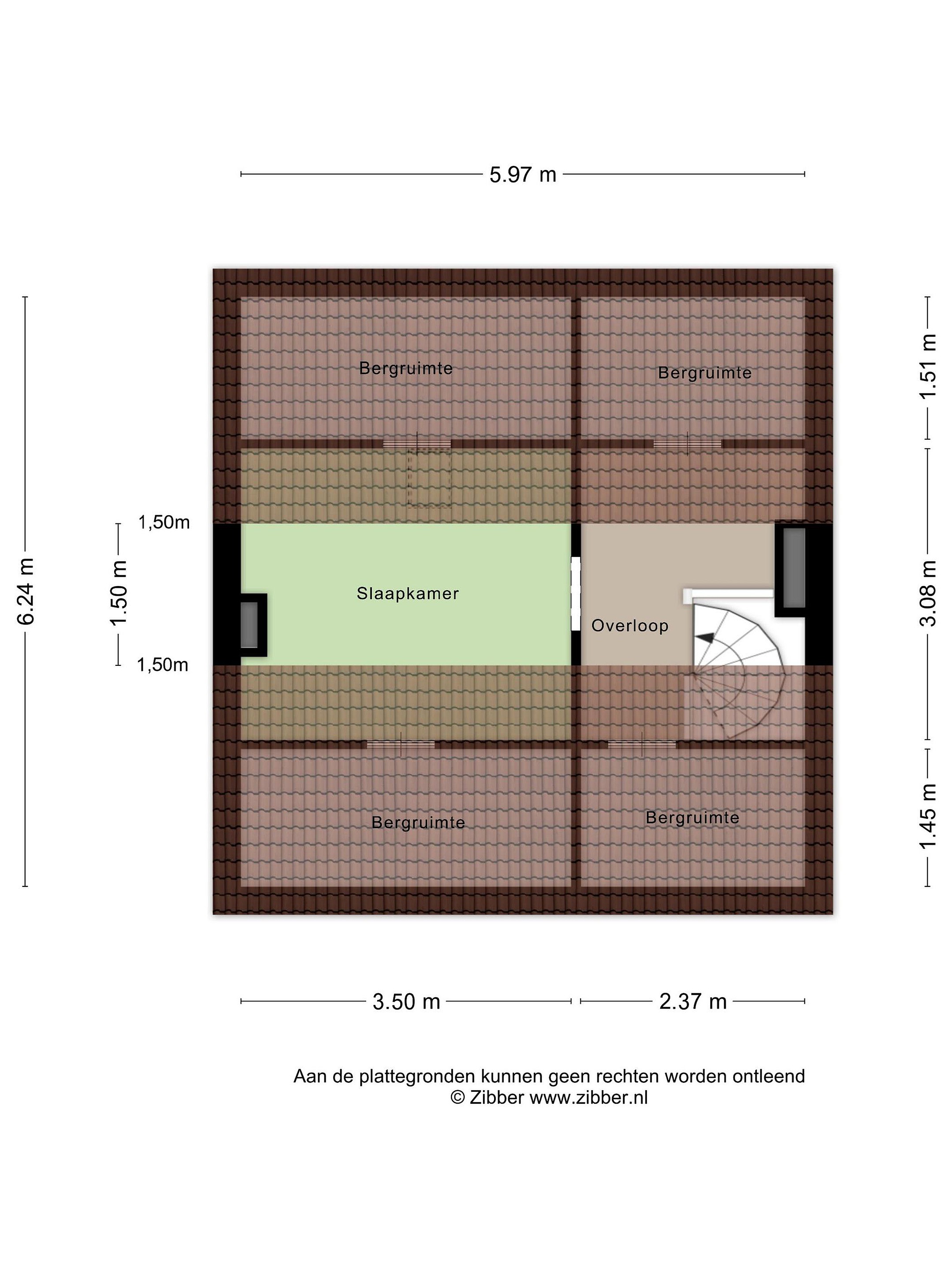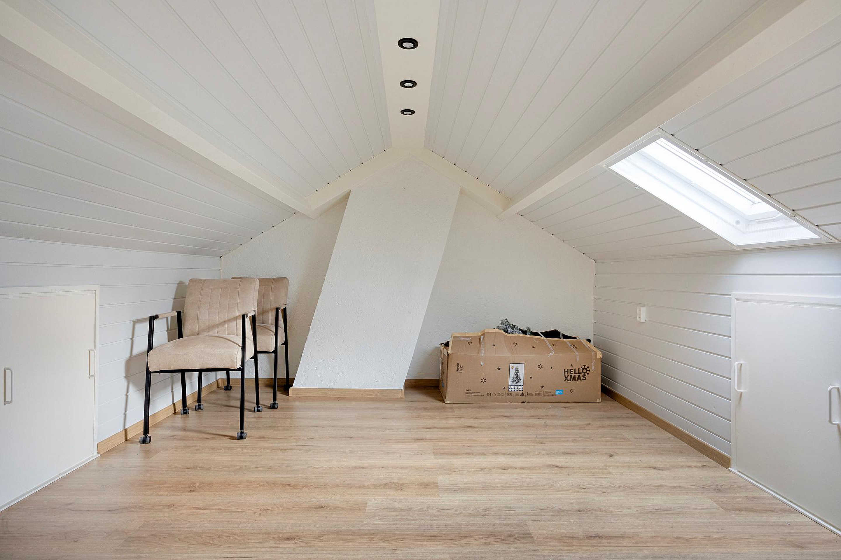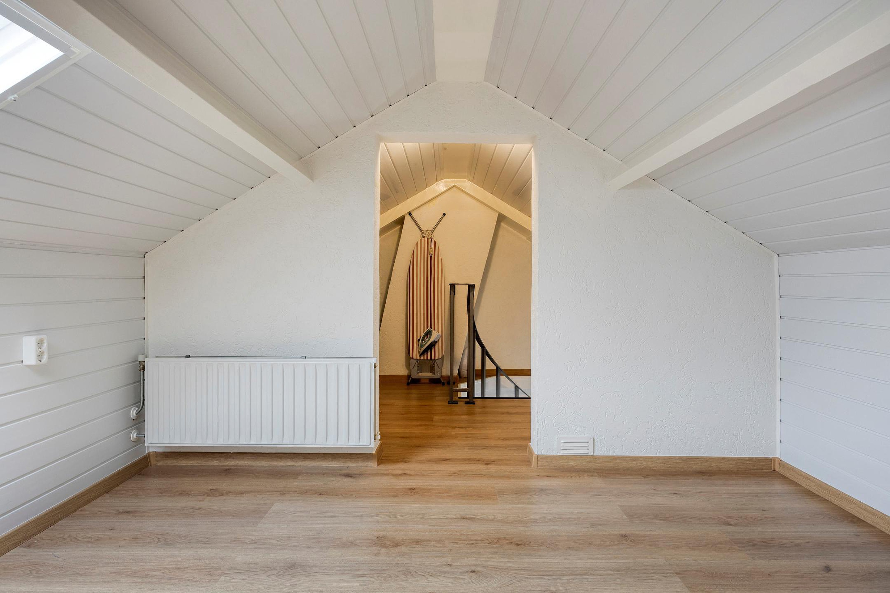 Via vaste trap te bereiken. Overloop met bergruimte en een vierde slaapkamer met extra bergruimte d.m.v. knieschotten en een dakraam.