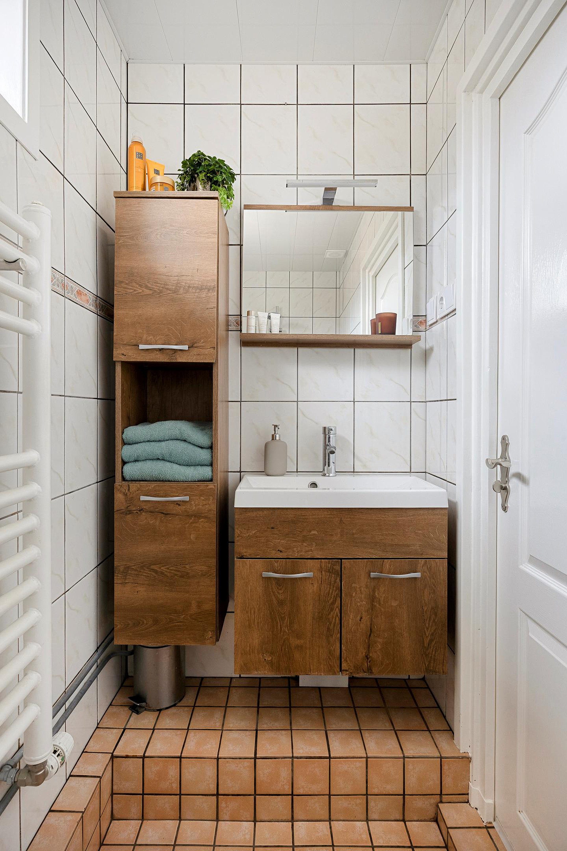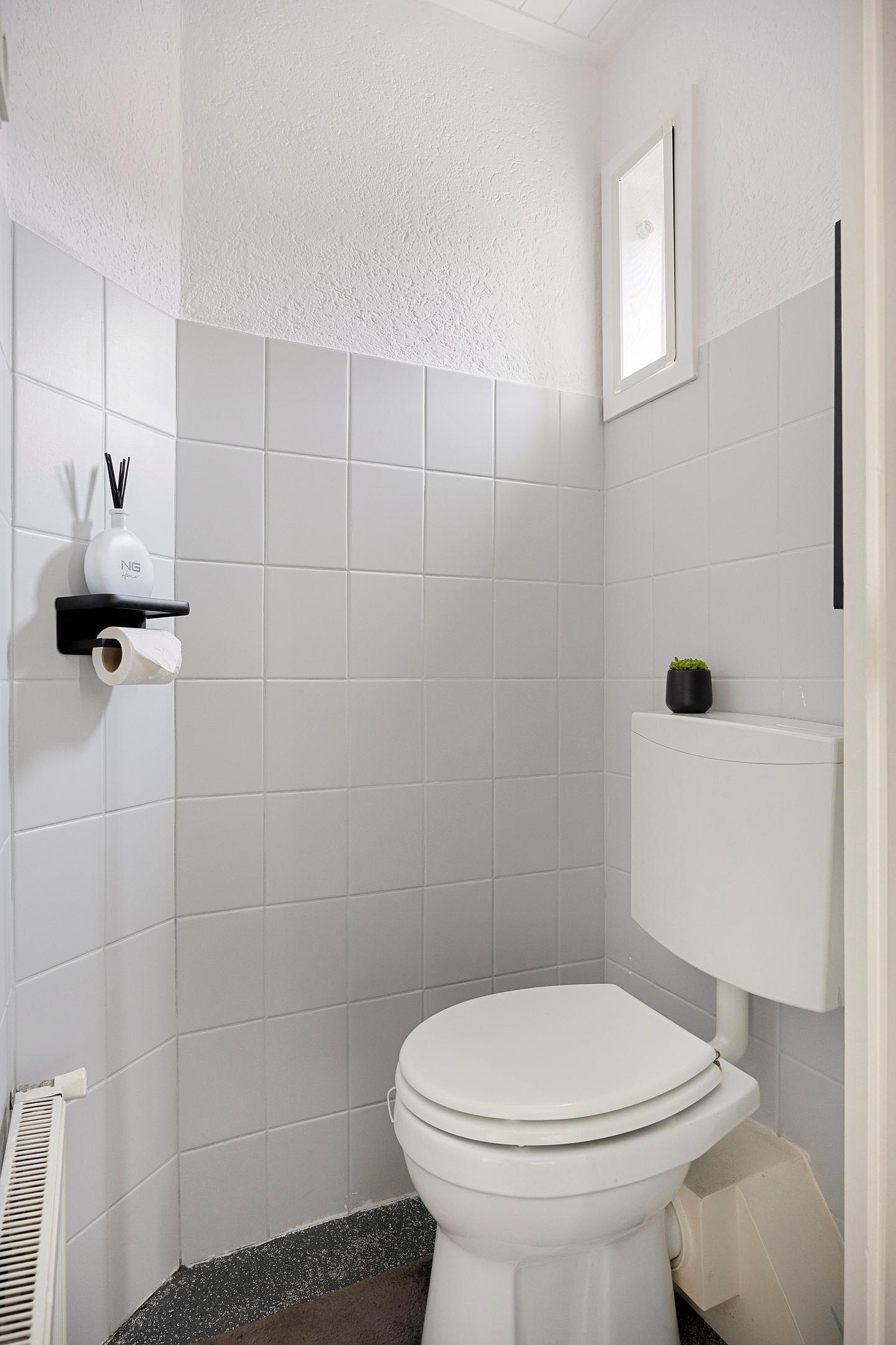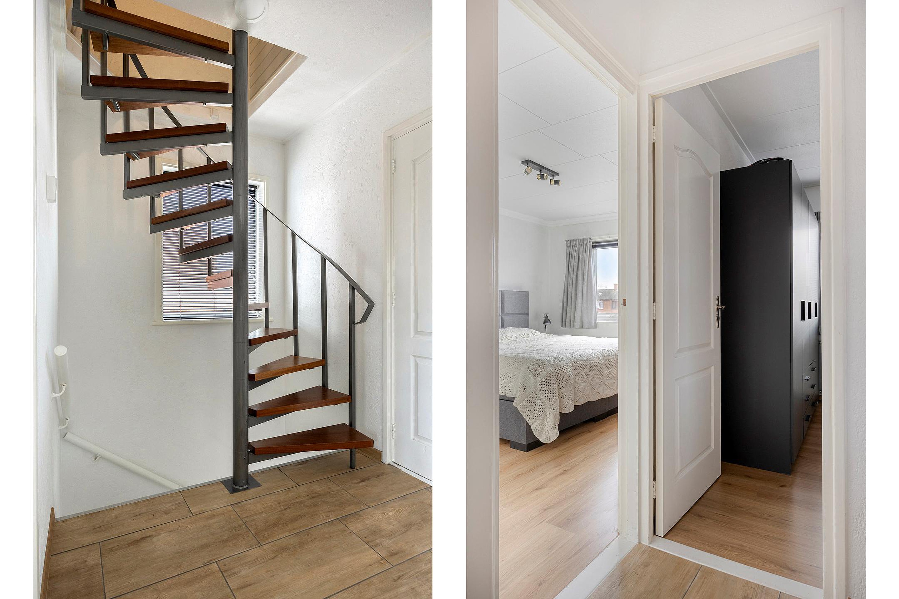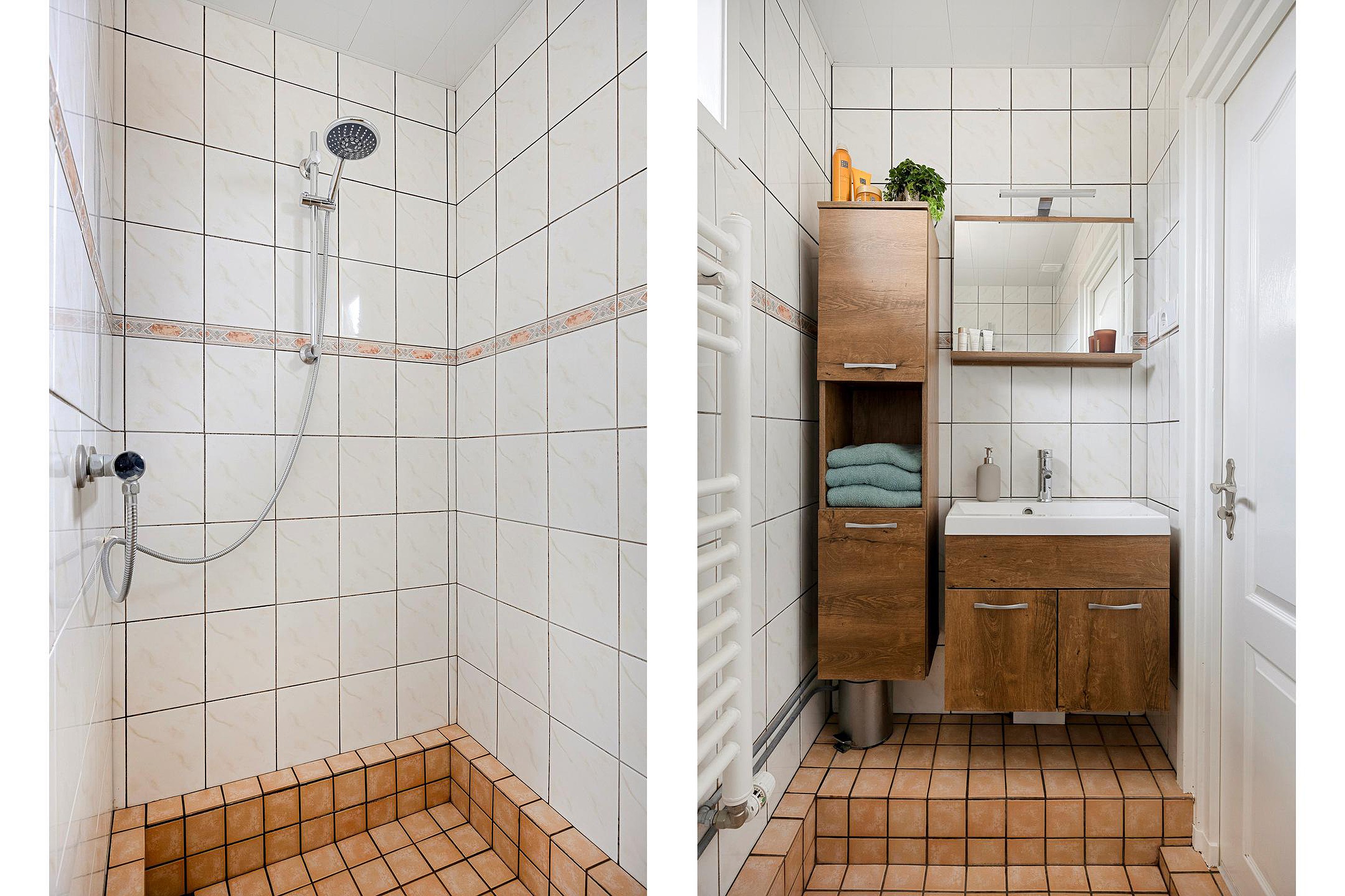 Overloop met vaste trap naar de tweede verdieping. Op deze verdieping bevinden zich drie slaapkamers. De badkamer is praktisch ingericht en voorzien van een douche, wastafel met meubel en een designradiator. Zowel de keuken als de badkamer zijn functioneel, maar dienen rekening te houden met modernisering naar hedendaagse woonwensen.