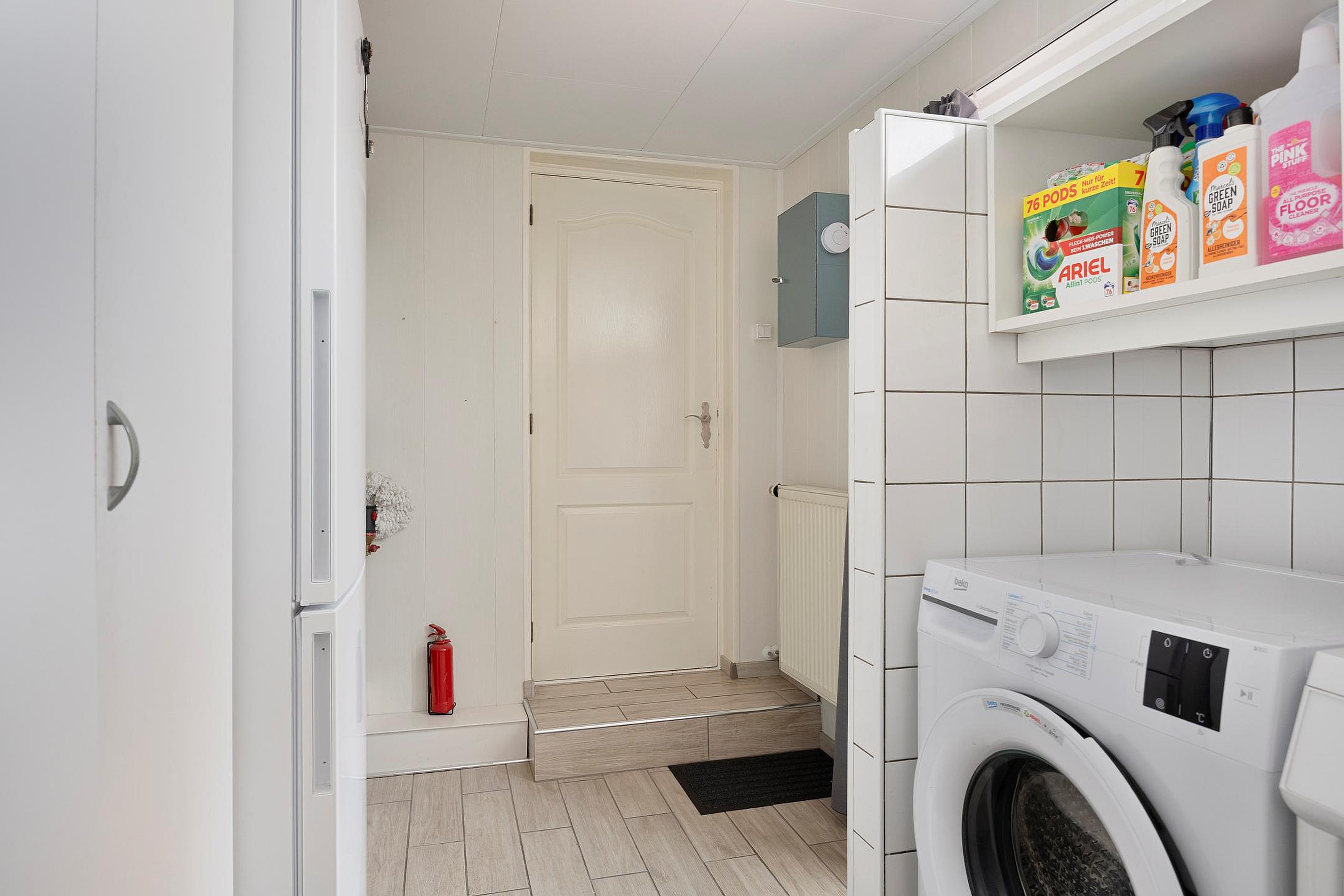 Entree/hal met meterkast, toiletruimte en trapopgang naar de eerste verdieping. De lichte woonkamer met eetgedeelte is voorzien van een laminaatvloer en een schuifpui naar het terras en de achtertuin. De (woon)keuken is functioneel ingericht en voorzien van diverse inbouwapparatuur, waaronder een 4-pits gasfornuis en afzuigkap. Vanuit de keuken is de ruime bijkeuken bereikbaar met witgoedaansluitingen en een deur naar de tuin.