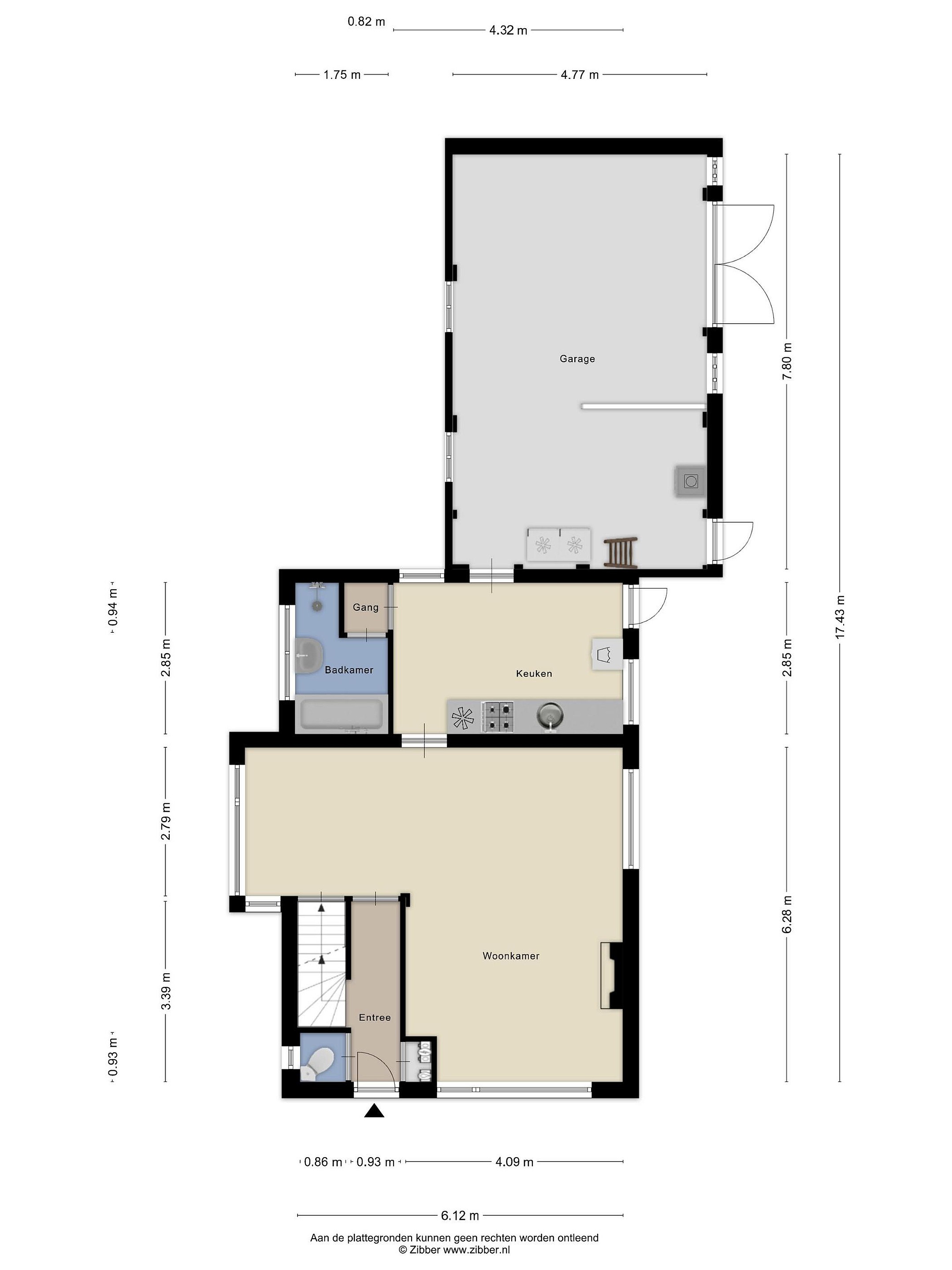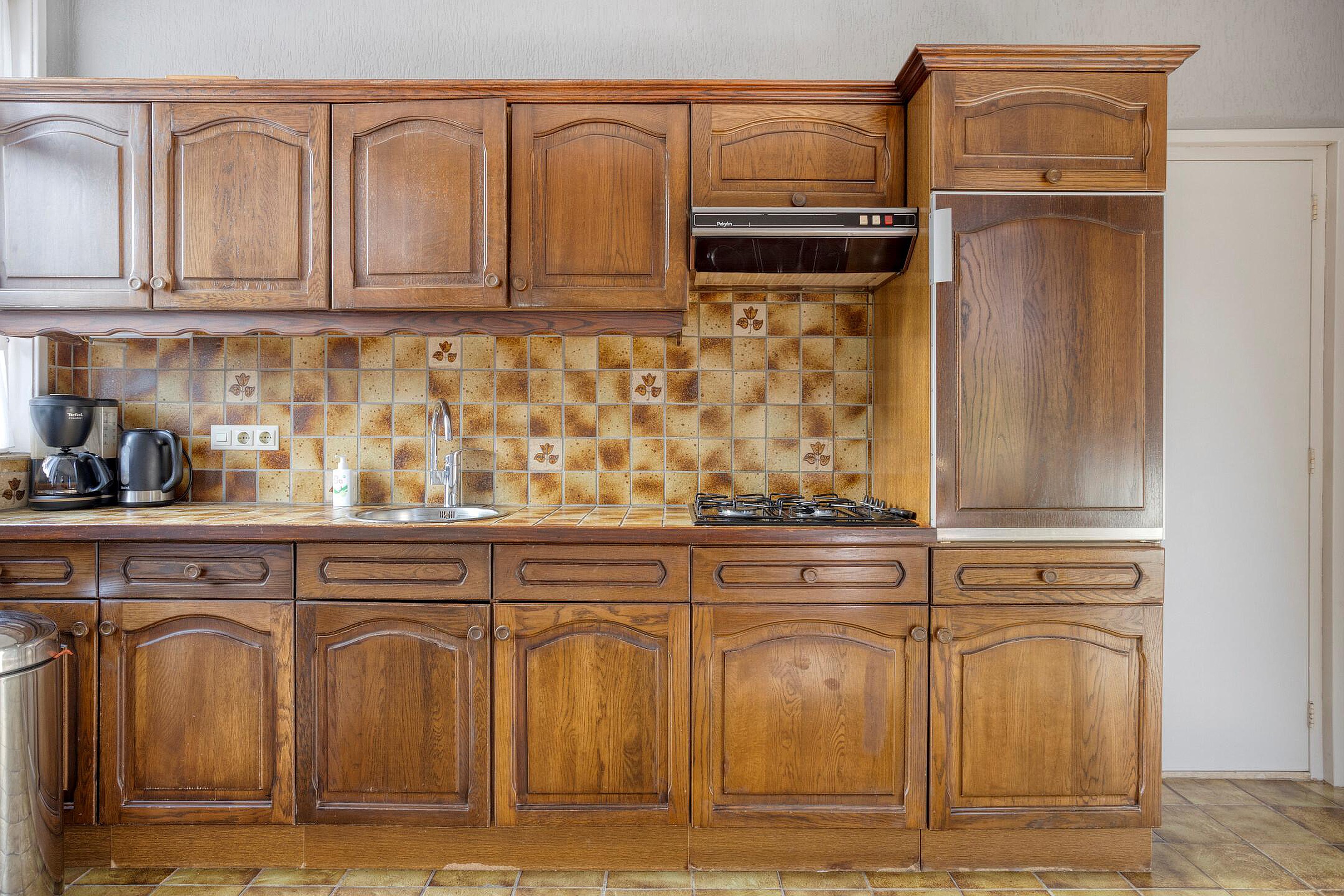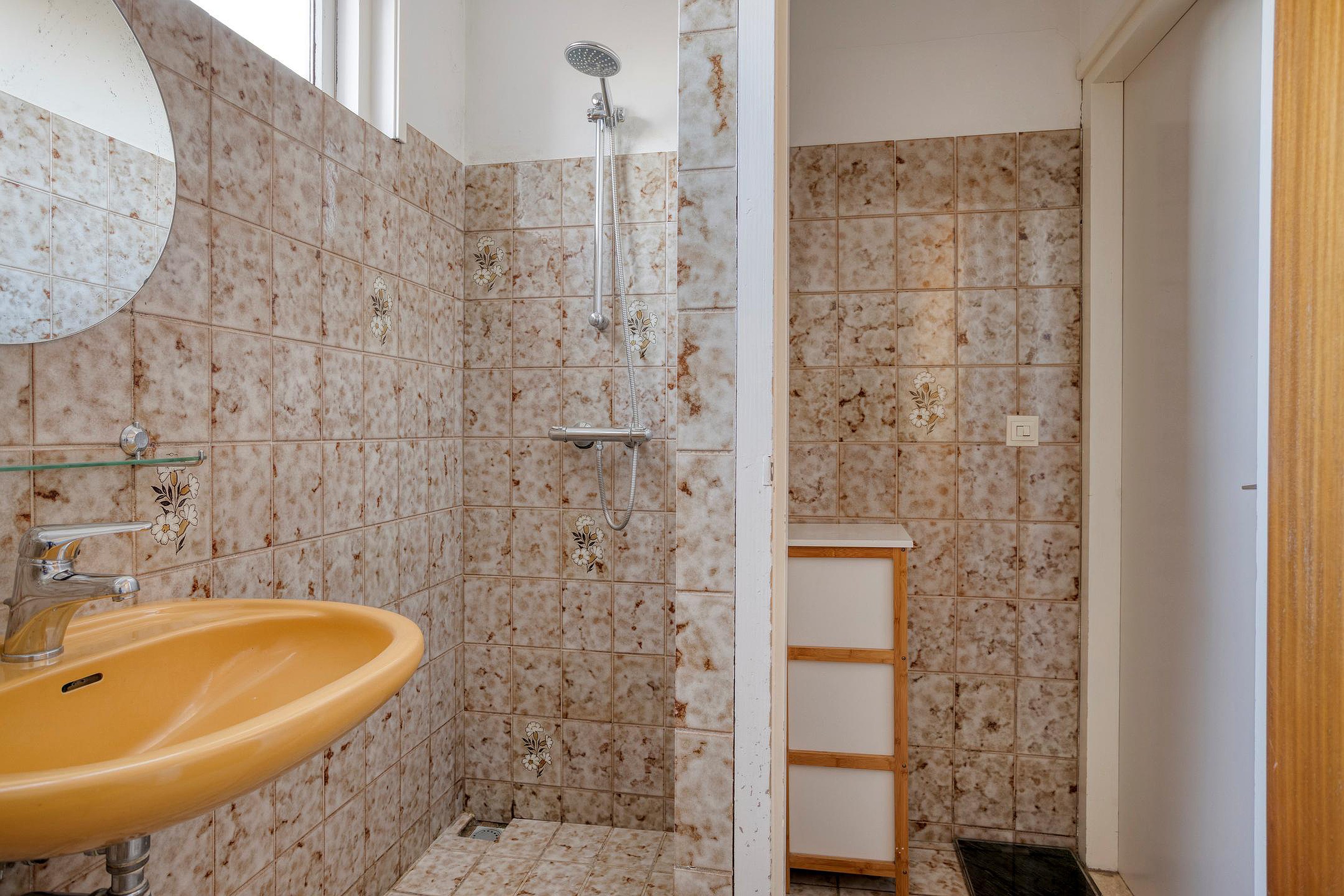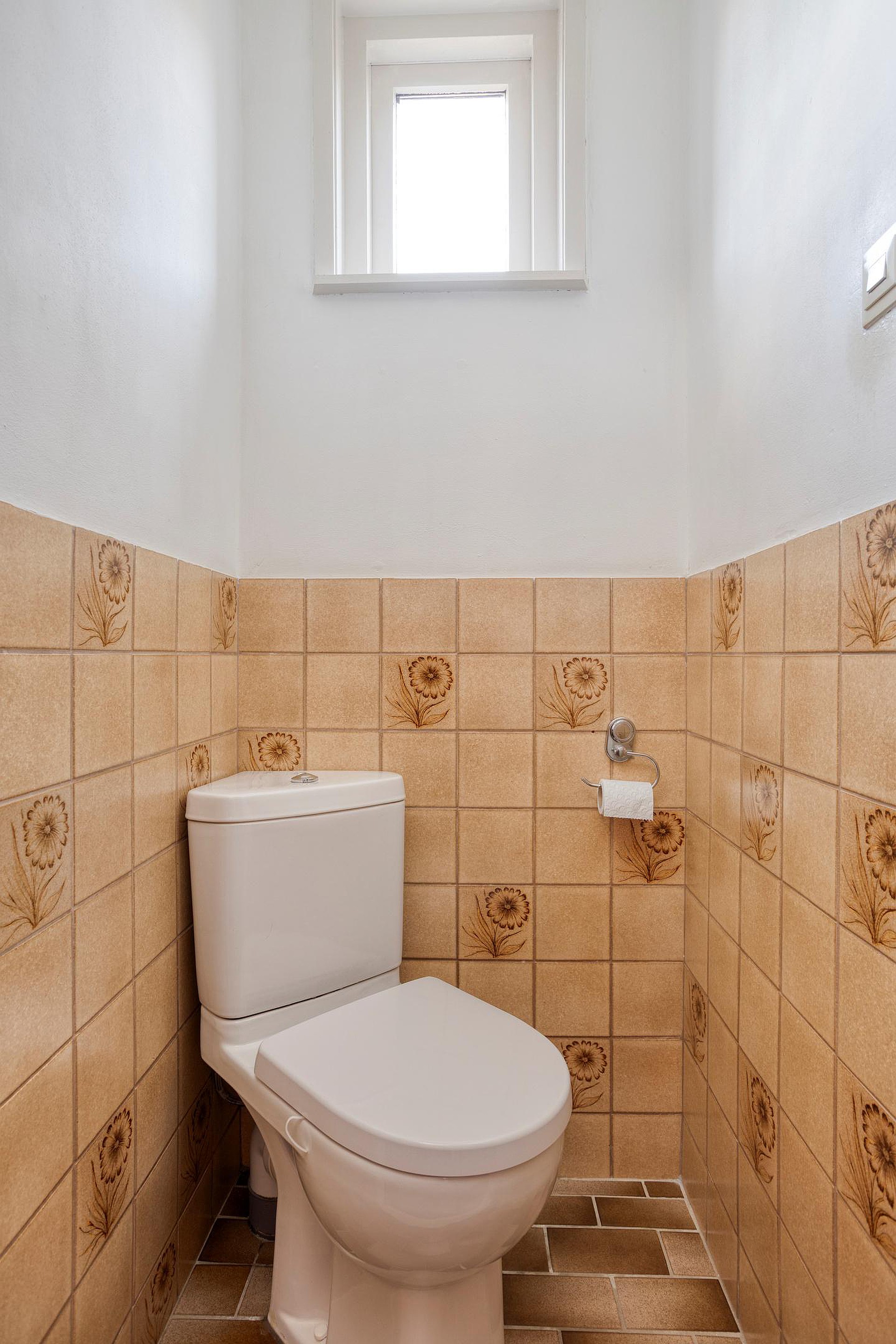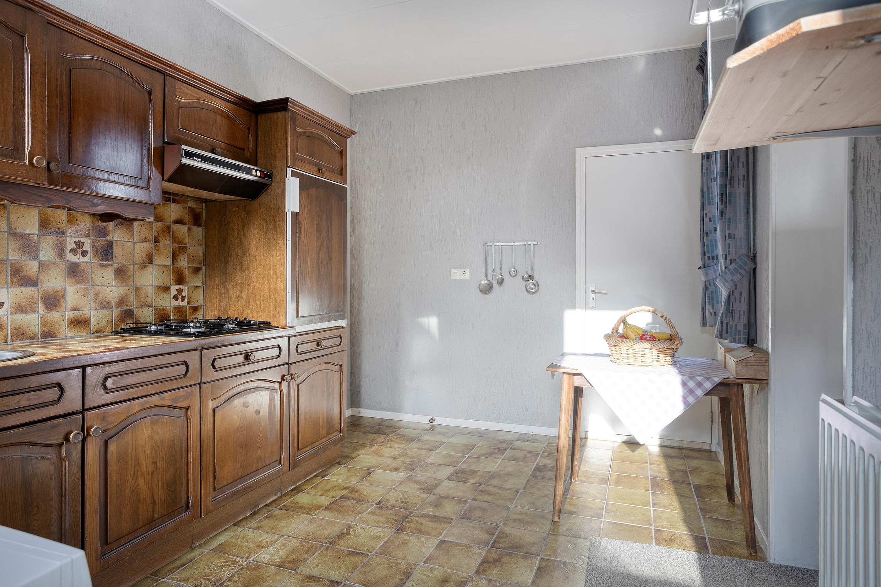 Aan de achterzijde bevindt zich de keuken met aansluitend een praktische bijruimte/gang en de badkamer, voorzien van ligbad en wastafel. Vanuit de keuken is er directe toegang tot de royale aangebouwde garage/schuur. Deze ruimte is multifunctioneel en geschikt voor opslag, werkplaats of het stallen van een voertuig.