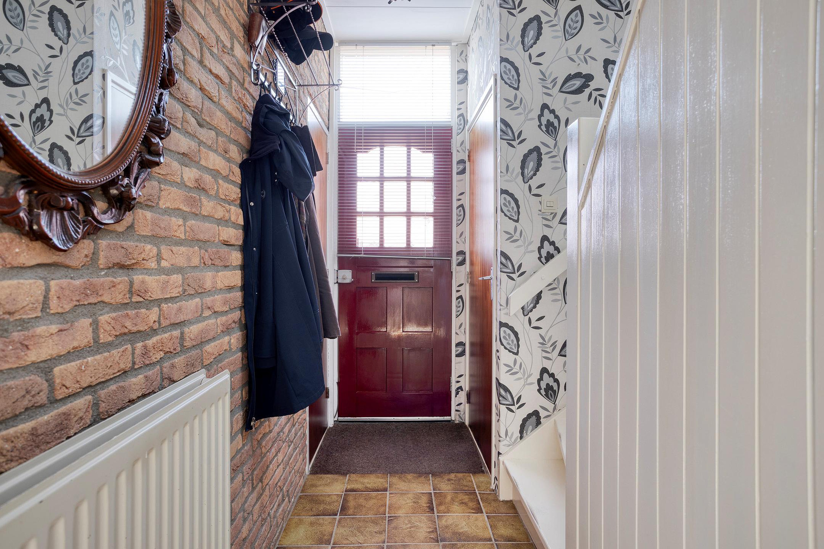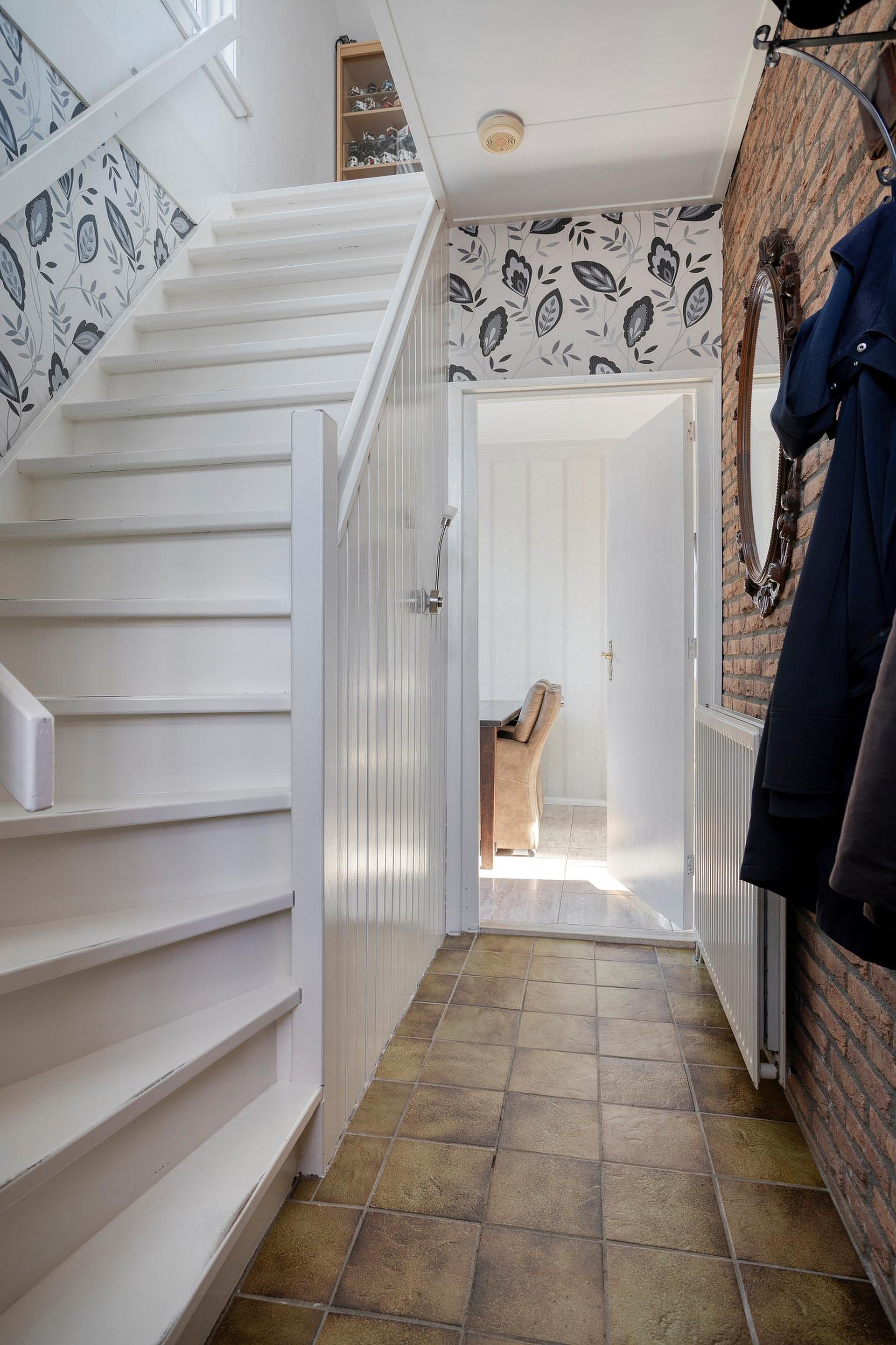 Begane grond Entree met hal, meterkast, toiletruimte en trapopgang naar de verdieping. Vanuit de hal toegang tot de ruime woonkamer aan de voorzijde, met prettig lichtinval en zicht op de straat.