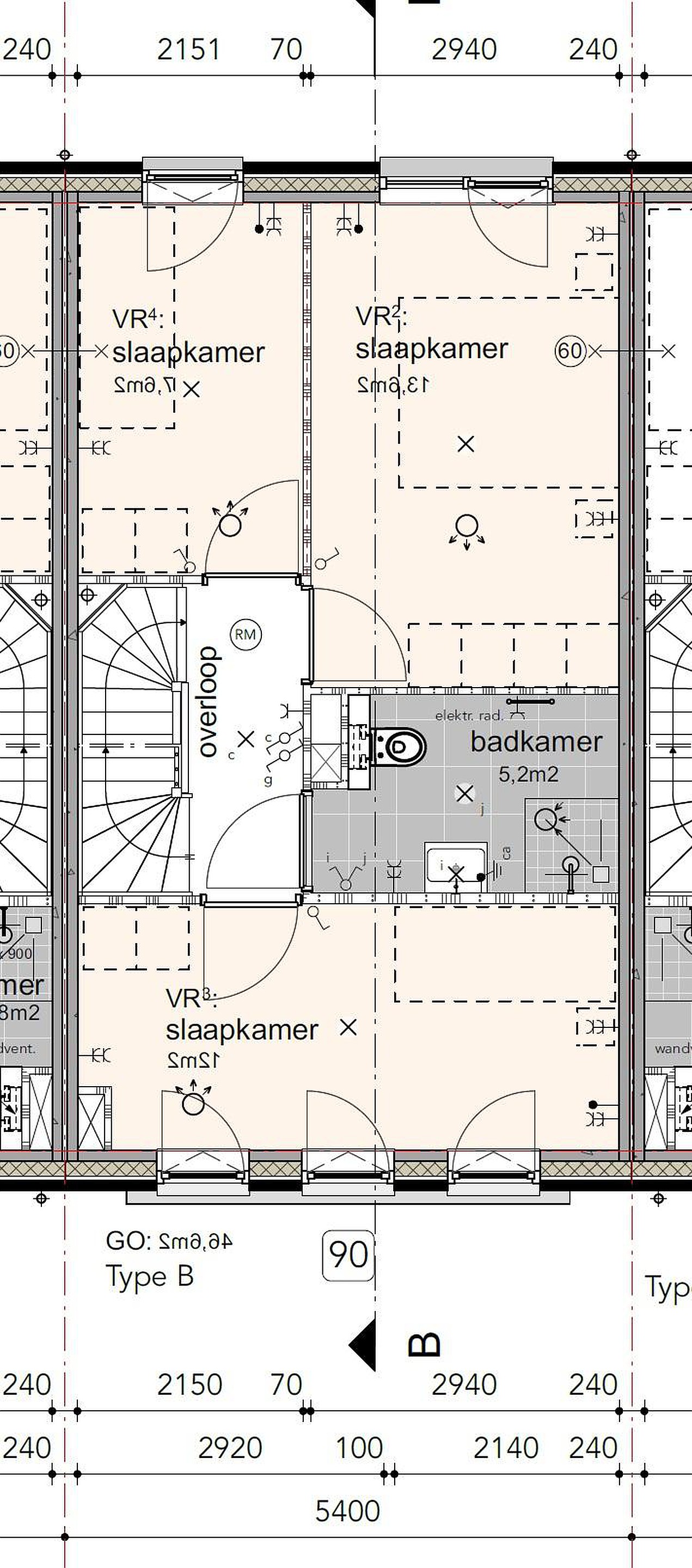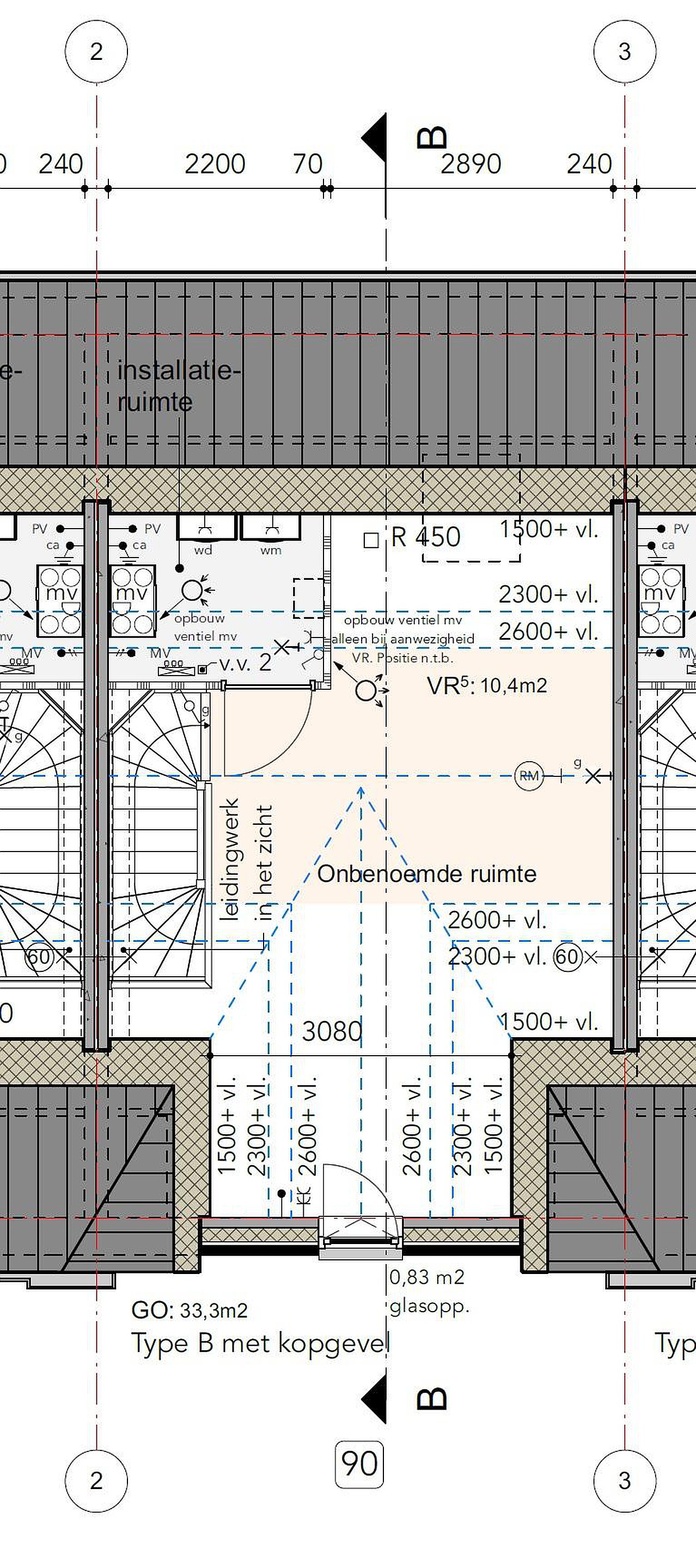 - Open zolderruimte: ca. 5,37 x 5,40 m
