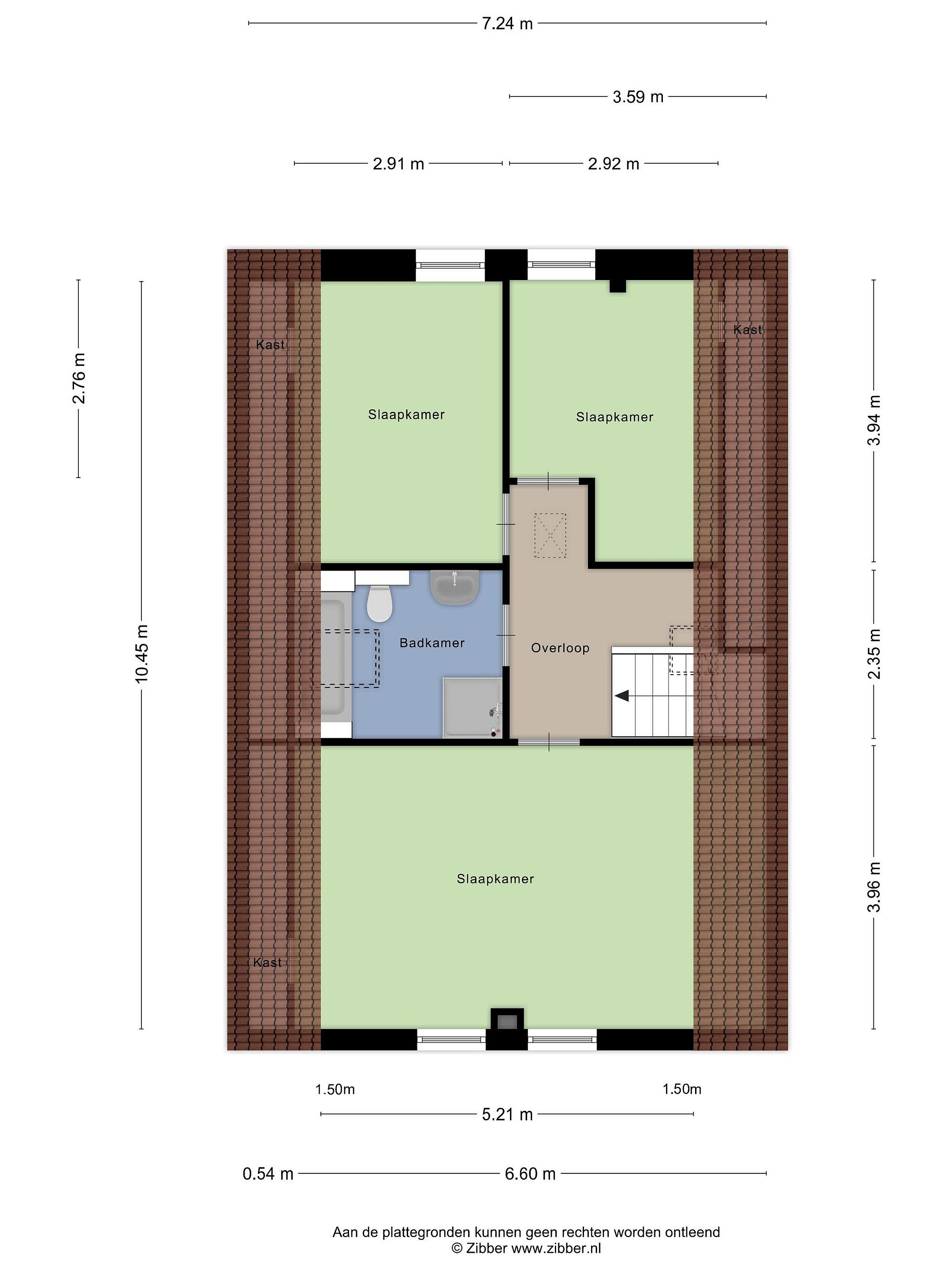 Eerste verdieping De overloop geeft toegang tot drie slaapkamers, allen van goed formaat en voorzien van vaste bergruimtes onder de schuine kap. De badkamer is netjes afgewerkt en compleet ingericht met een ligbad, douche, wastafel en tweede toilet. De vloer is hier verwarmd via een retourleiding van de cv.