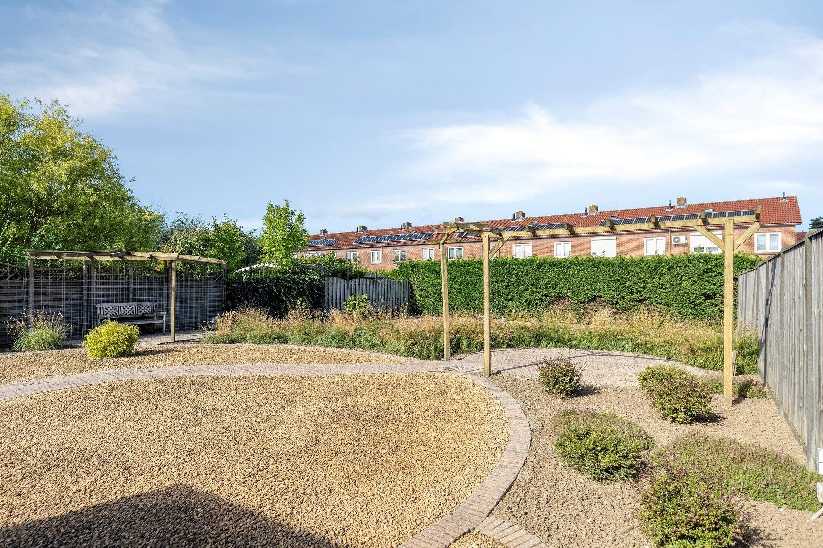 Tuin De woning staat op een ruim perceel (661 m2) met een nette voortuin, twee opritten en een brede achtertuin. De achtertuin is onderhoudsvriendelijk aangelegd en biedt meerdere zitplekken om van de zon te genieten. Dankzij de vrije ligging is er veel privacy en ruimte. In de tuin zijn zowel een buitenkraan als elektra-aansluitingen aanwezig.