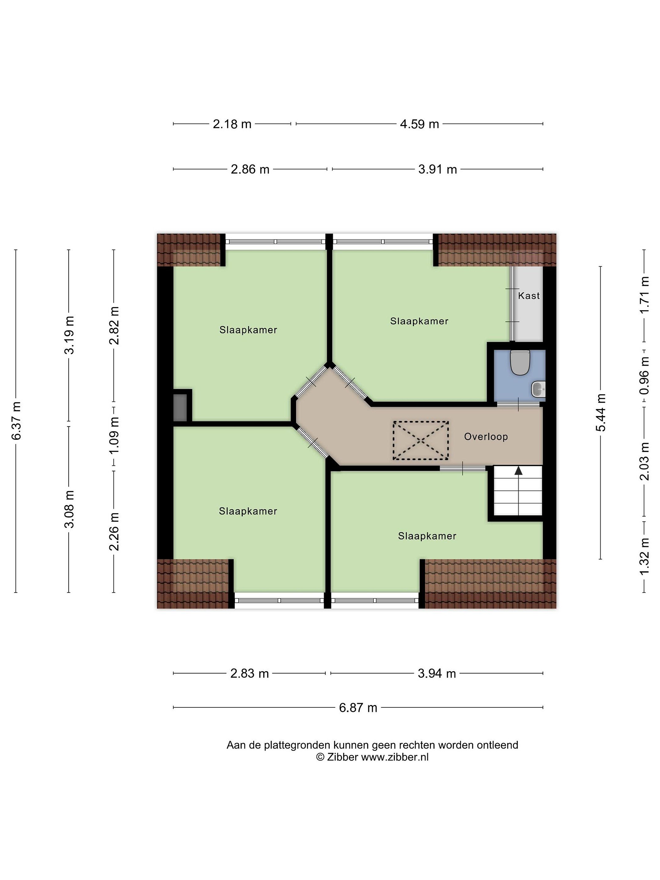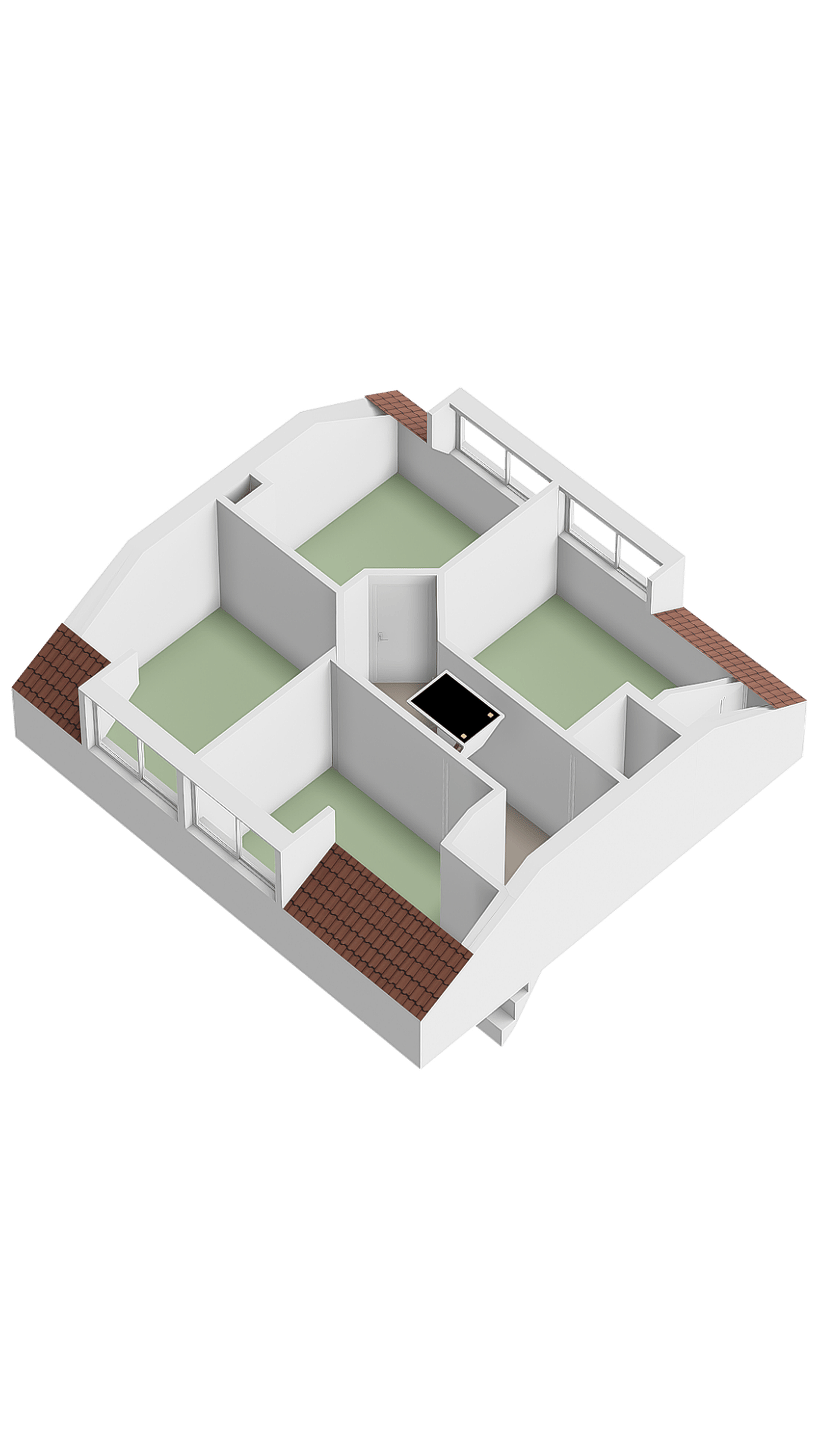 Overloop met toegang tot vier slaapkamers, en een tweede toilet.