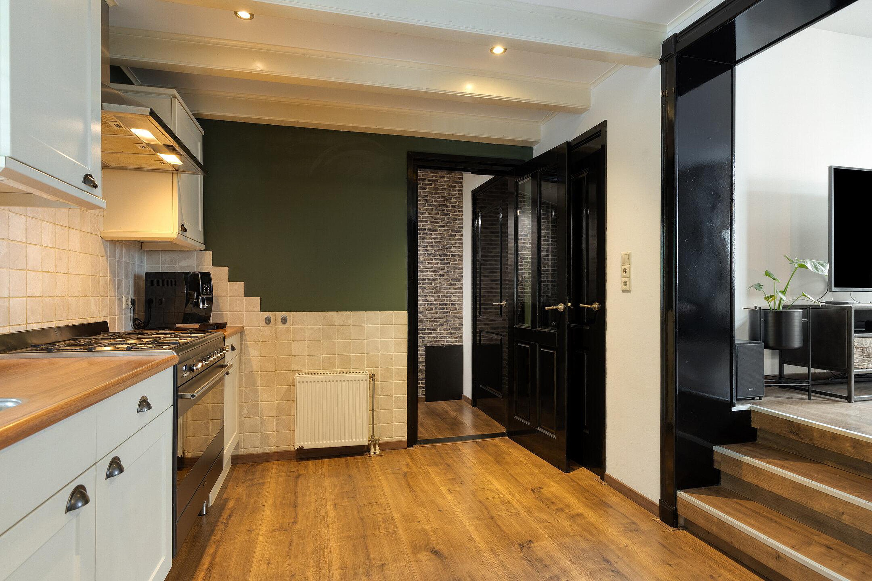 Entree, hal, toegang tot de lichte woonkamer en eetkamer. De keuken ligt centraal en sluit aan op de bijkeuken/berging. Op de begane grond bevindt zich tevens de badkamer (2022 vernieuwd) met modern sanitair en het toilet (2022 vernieuwd)