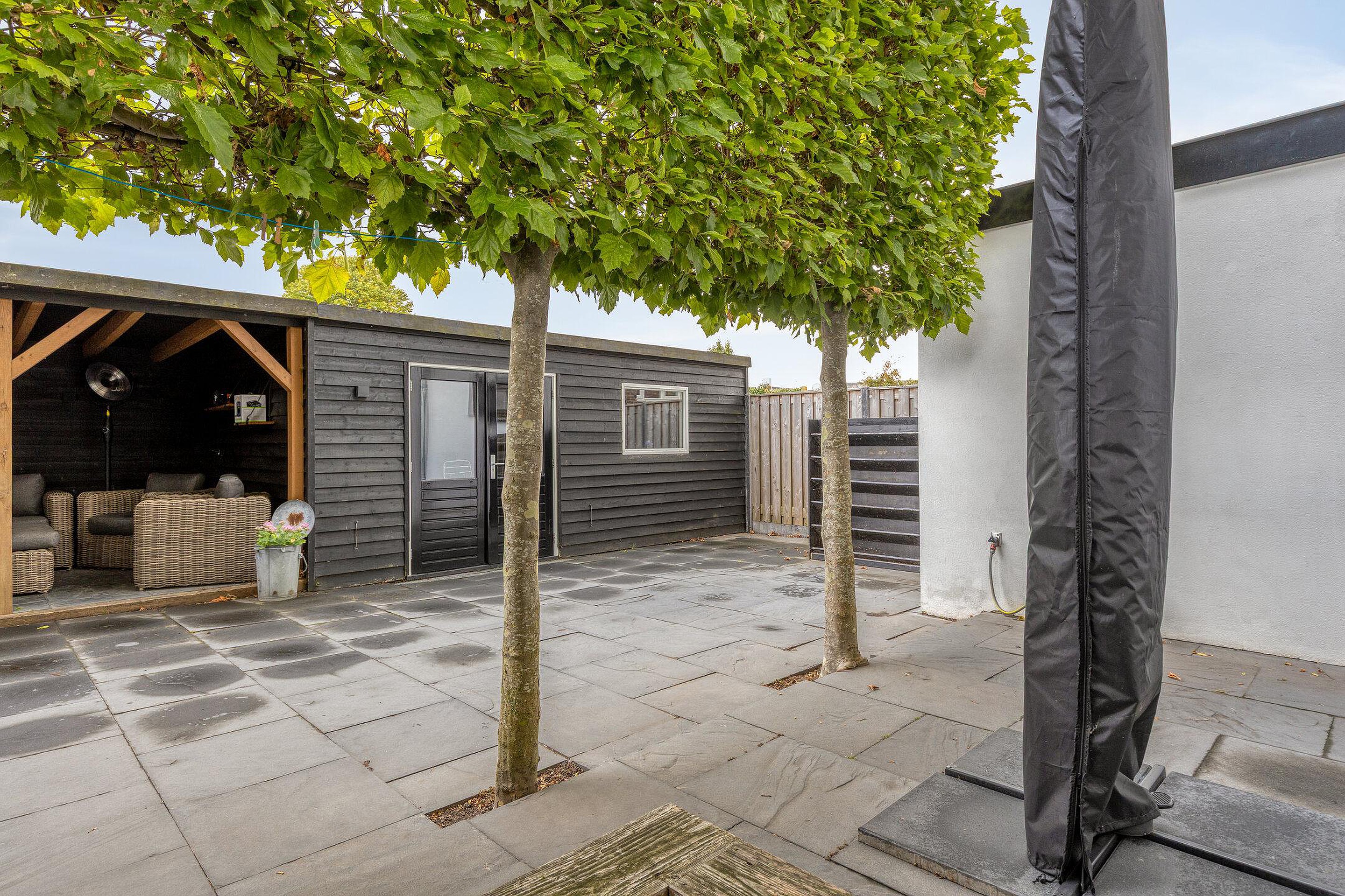 De woning beschikt over een verrassend grote tuin, die in gebruik nog groter aanvoelt door het extra perceel. Hier is ruimte genoeg voor meerdere terrassen, speelruimte of moestuin. Verder is er een ruime externe berging en een overkapping aanwezig – perfect voor fietsen, opslag of hobby’s.