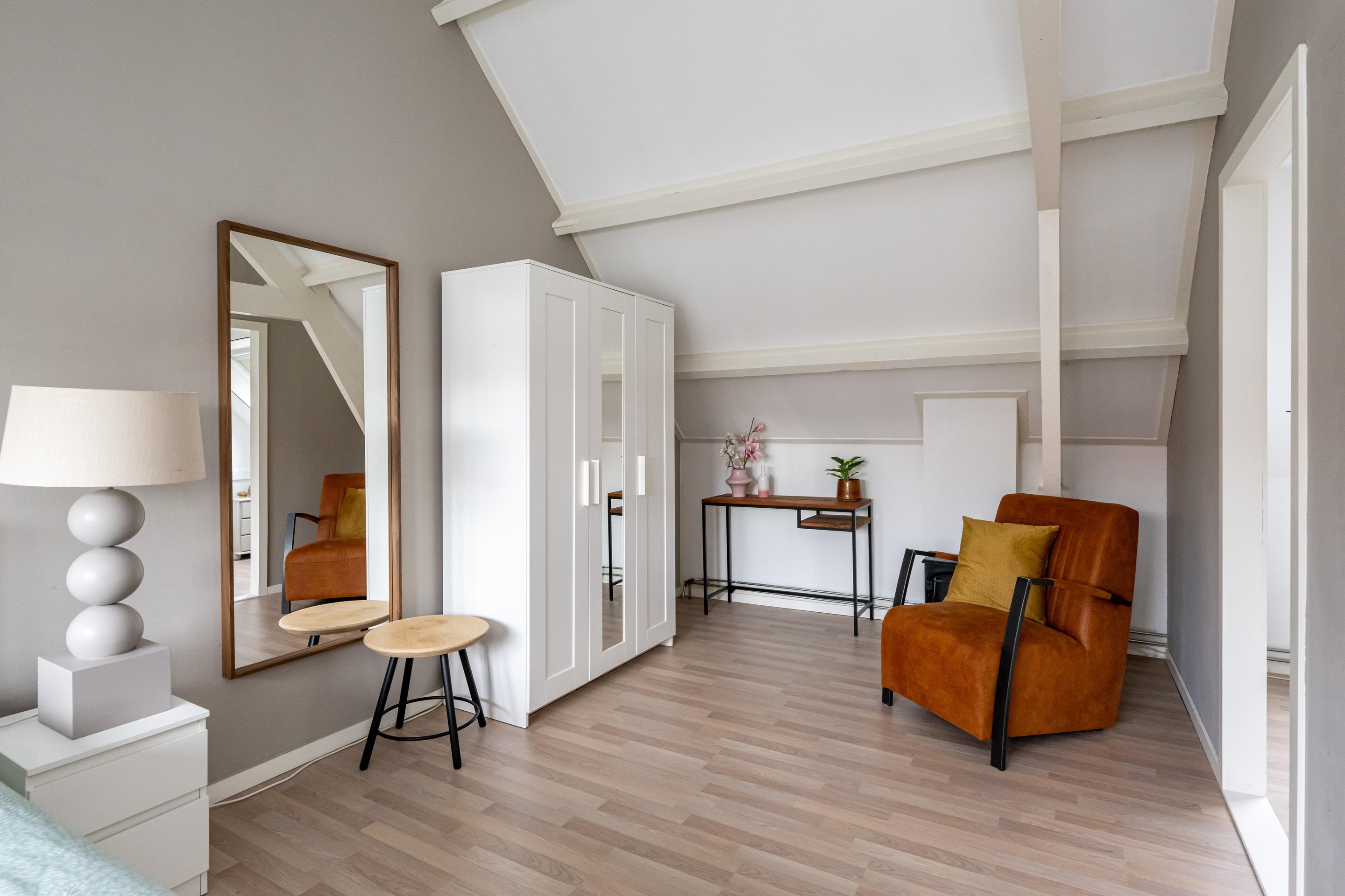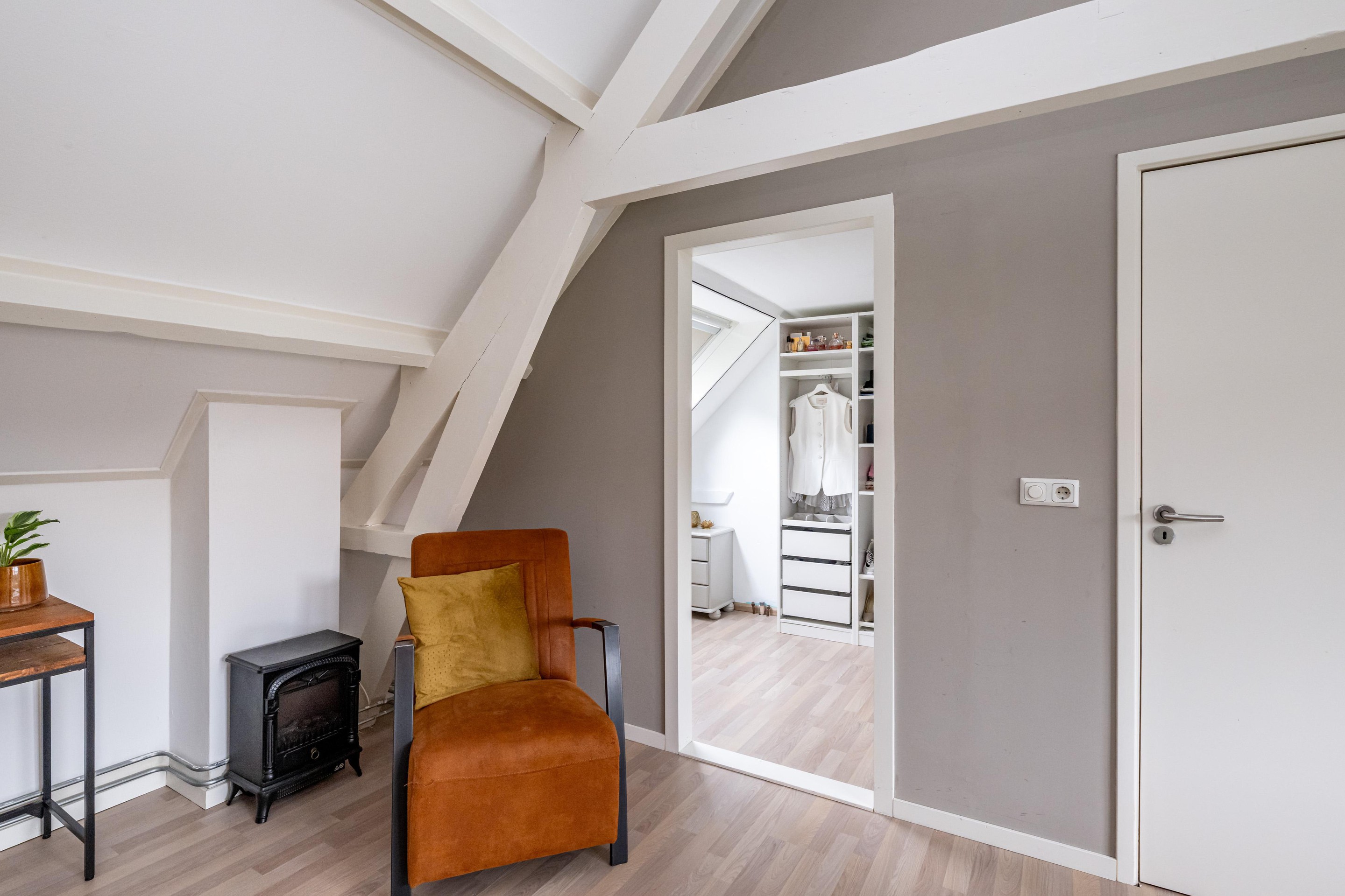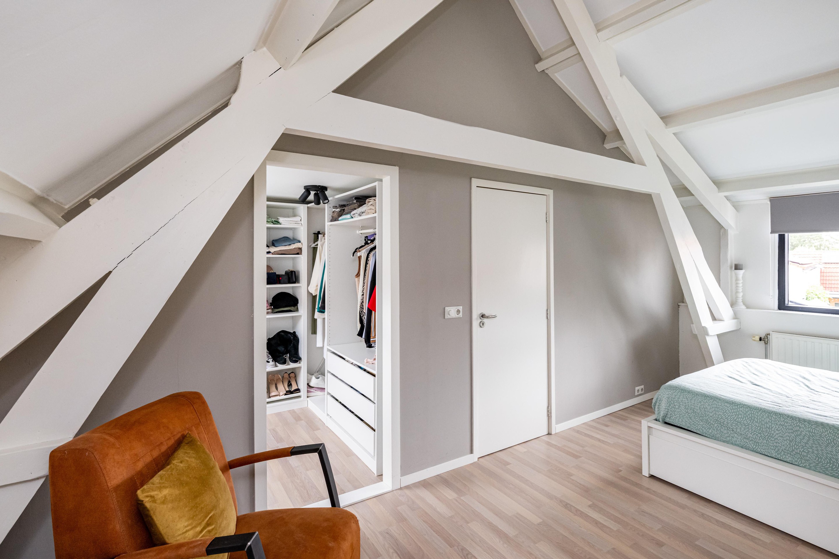 Op de verdieping vindt u twee slaapkamers. Een van deze kamers beschikt over een directe doorgang naar de walk-in closet. Deze slimme indeling biedt verrassend veel gebruiksmogelijkheden en maakt het huis extra veelzijdig voor verschillende gezinssituaties of woonwensen.