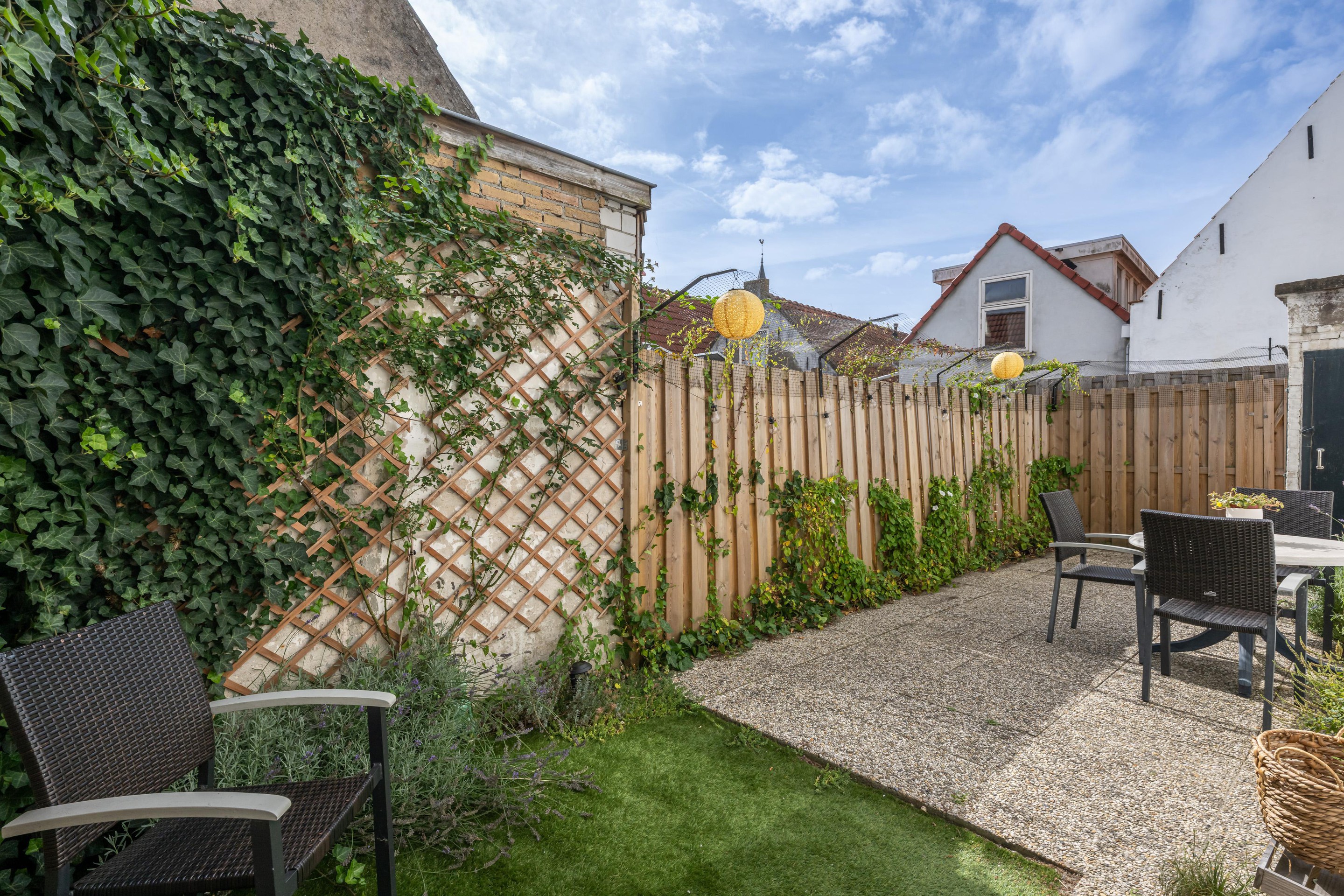 De achtertuin ligt op het zuidoosten, wat betekent dat u hier van de ochtend tot in de namiddag heerlijk van de zon kunt genieten. Een fijne plek om te ontspannen of gezellig buiten te eten. Ondanks het compacte perceel is de tuin goed bruikbaar en makkelijk te onderhouden.