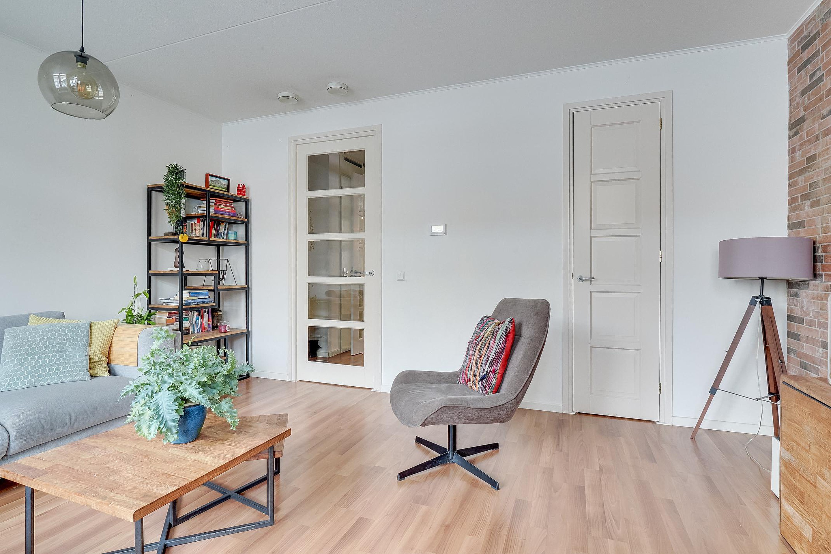 De woonkamer is licht en uitnodigend. Grote ramen laten het daglicht rijkelijk binnenstromen en zorgen voor een open, prettige sfeer. Dit is zo’n ruimte waar je vanzelf tot rust komt: een plek voor lange avonden op de bank, gezellige etentjes of gewoon even niks doen. Je hoort hier het zachte geluid van buiten, voelt de warmte van het huis en merkt: dit zit goed.