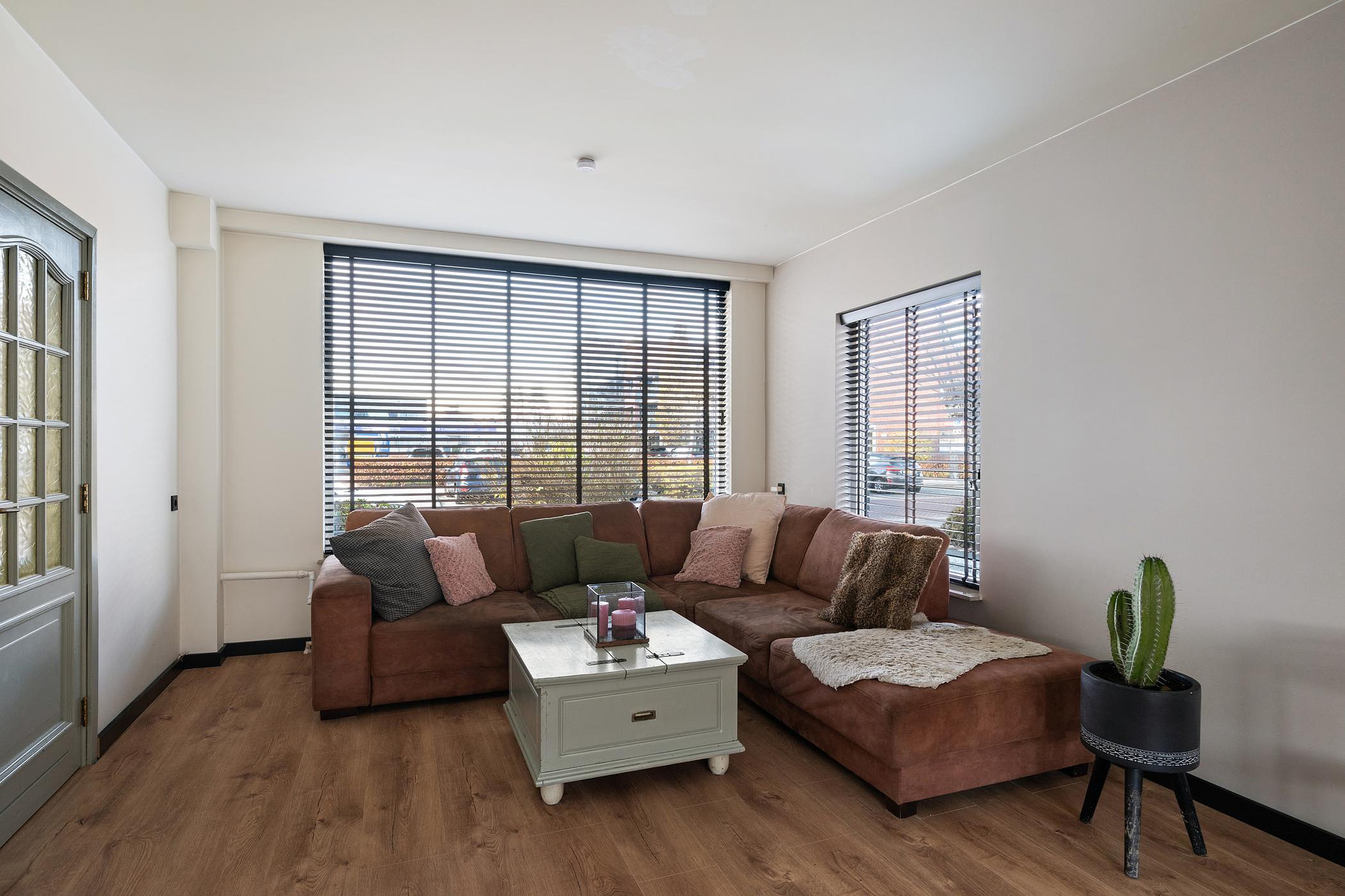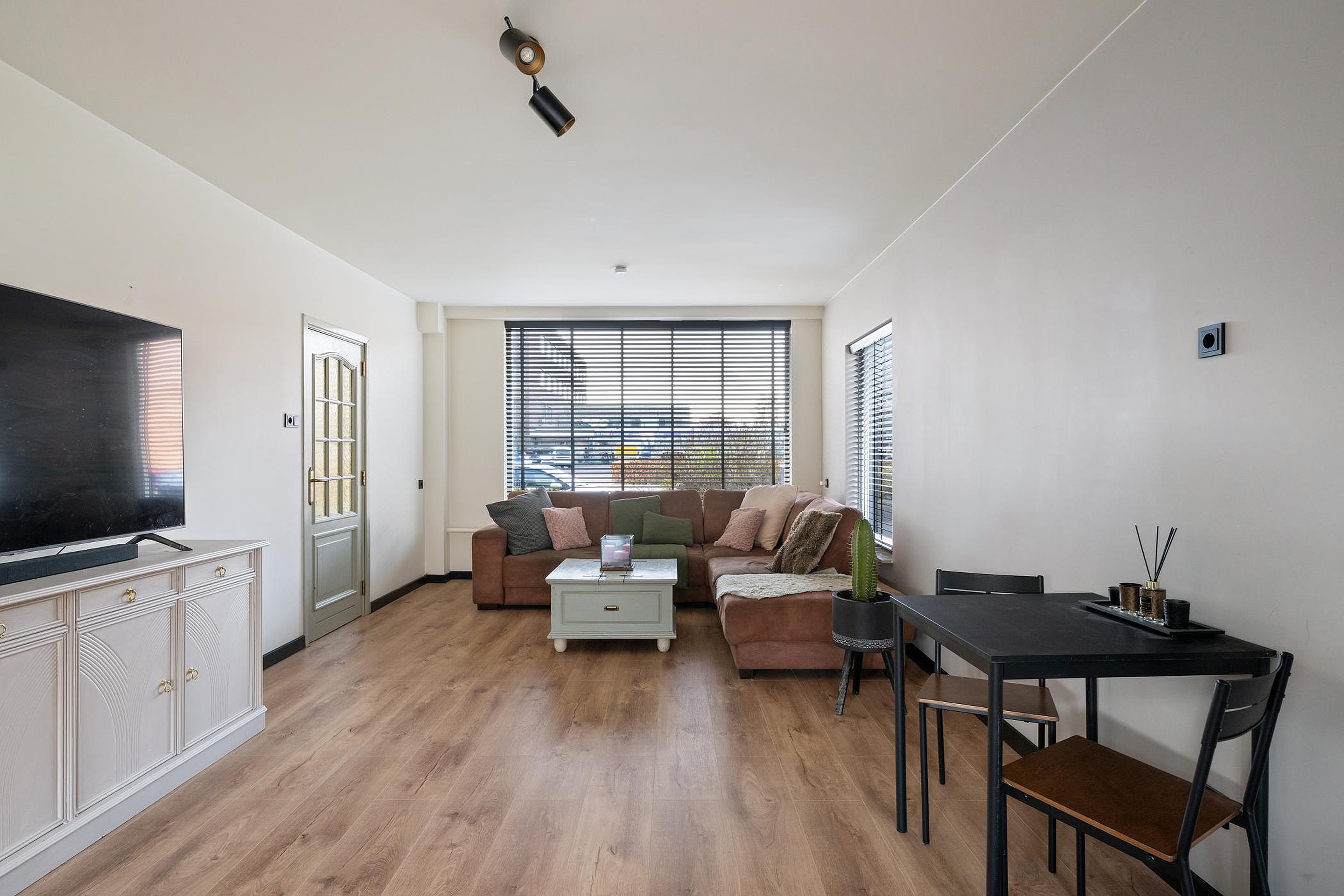 Op de begane grond ligt een moderne laminaatvloer.